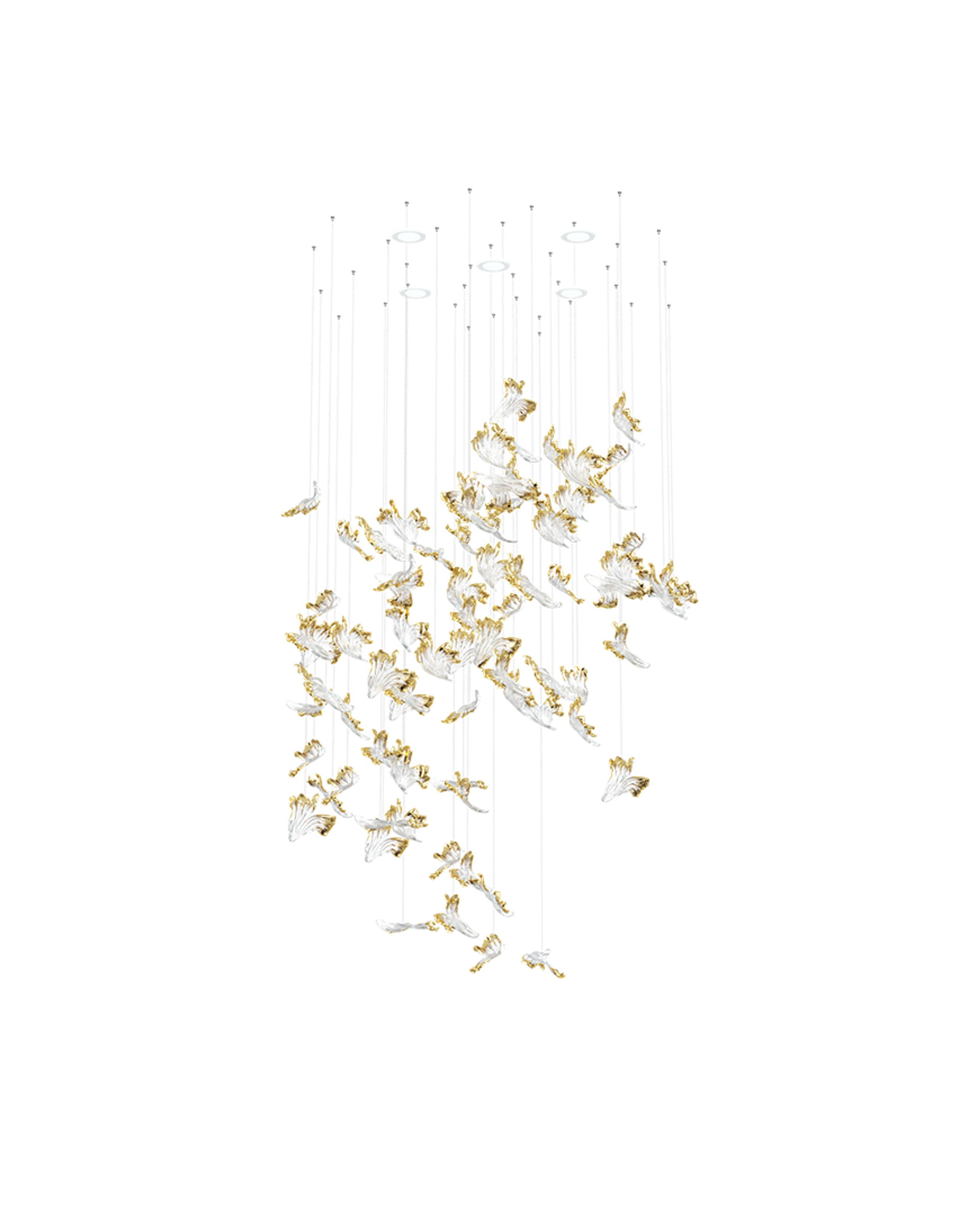 Drawing from the delicate beauty of petals falling like icy snowflakes, the Frozen collection captures the fragile elegance of flowers touched by the first frost. Each crystal petal embodies the intricate details of nature preserved in winter’s embrace. A subtle colour gradient and gilded edges enhance the frosty effect, creating a shimmering interplay of light.