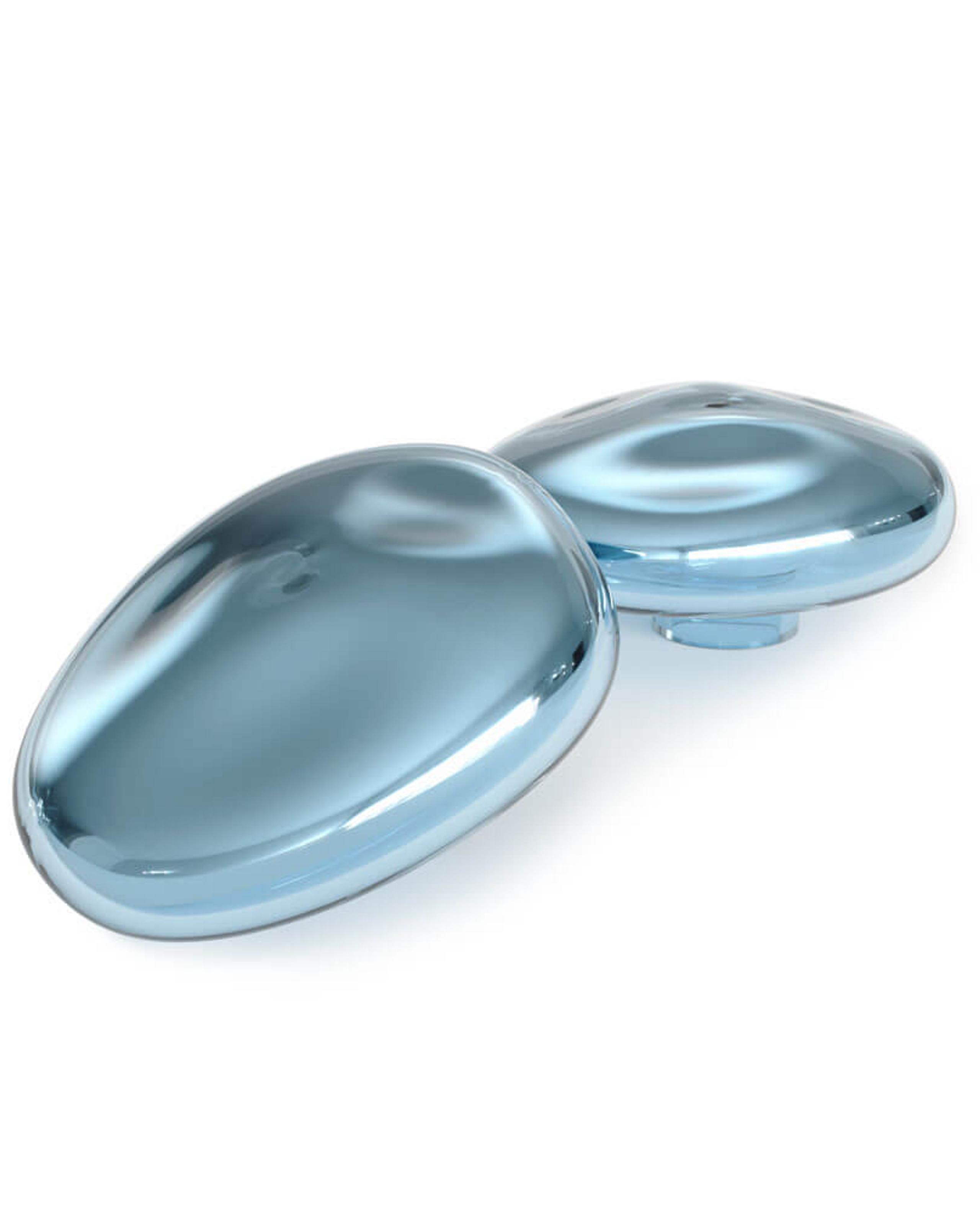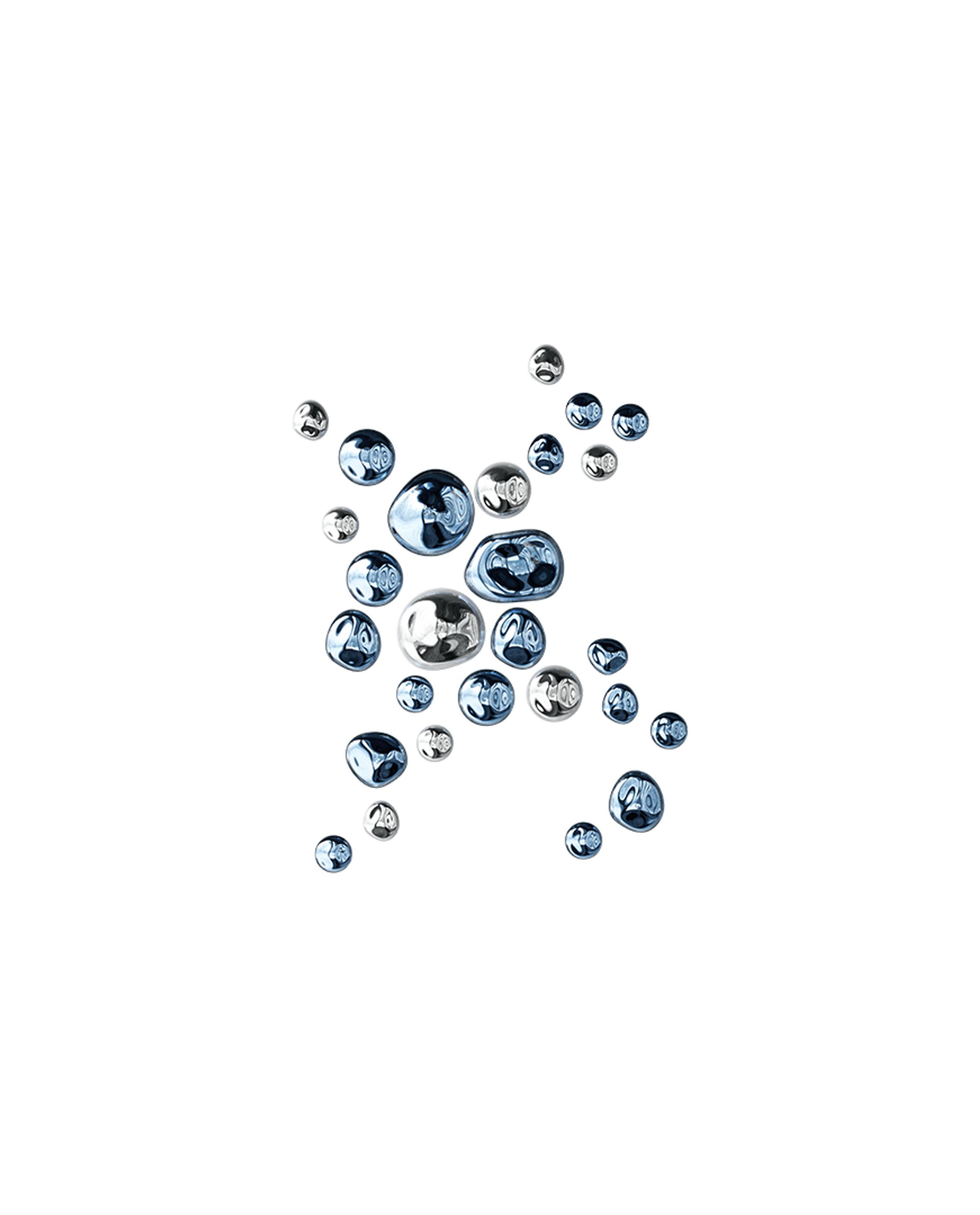 The Nuggets collection draws inspiration from raw, naturally formed lumps of gold and other precious metals found deep within the earth. Each crystal component is individually handblown and uniquely shaped, then finished with a reflective metal nanocoating. Every piece is one of a kind, allowing Nuggets to adorn any wall in captivating patterns.