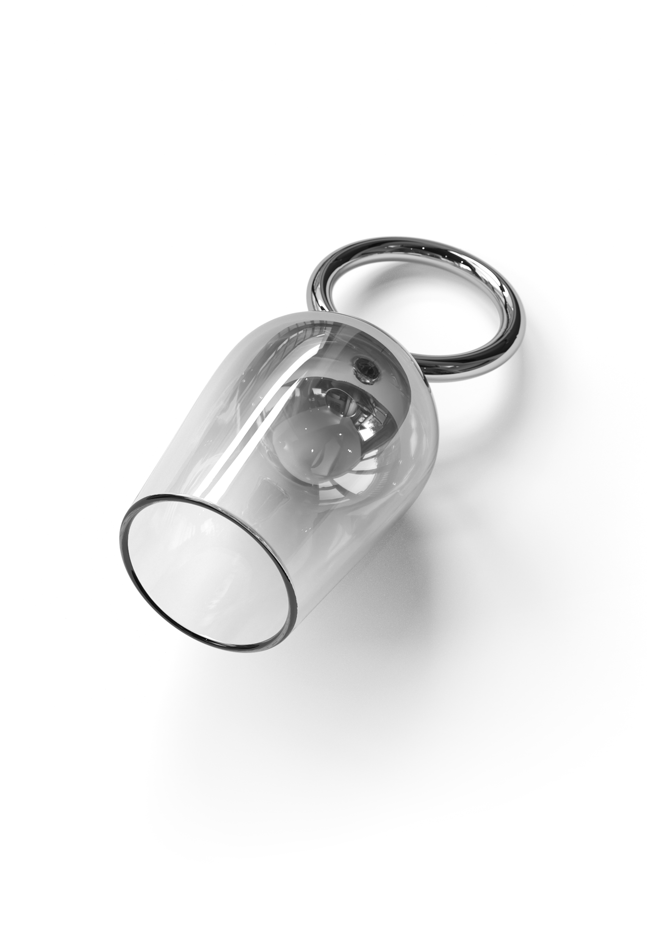 The combination of elegant, clean geometric shapes and simple details is truly magical. The Charm collection is made up of glass spheres that look simple at first glance, but hide a secret. This sculptural object, reminiscent of a reflective jewel, hides a second, glowing sphere.