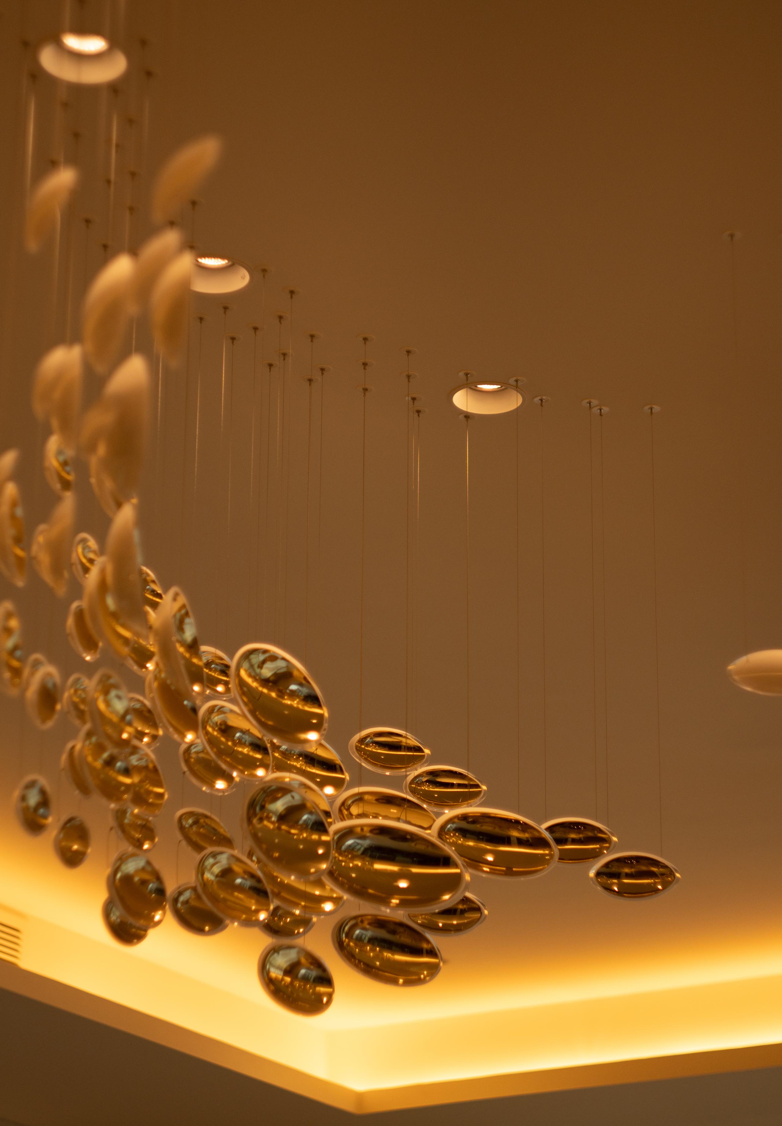 Embodying elegance in its purest form, the Bowls collection introduces a sleek, contemporary aesthetic into the space. Each crystal component is crafted with contrasting finishes: one side features a reflective metal nanocoating, while the other is infused with a complementary colour. When suspended in a fluid arrangement, the components create a soft wave of light, offering a refined statement suitable for both residential and commercial interiors.