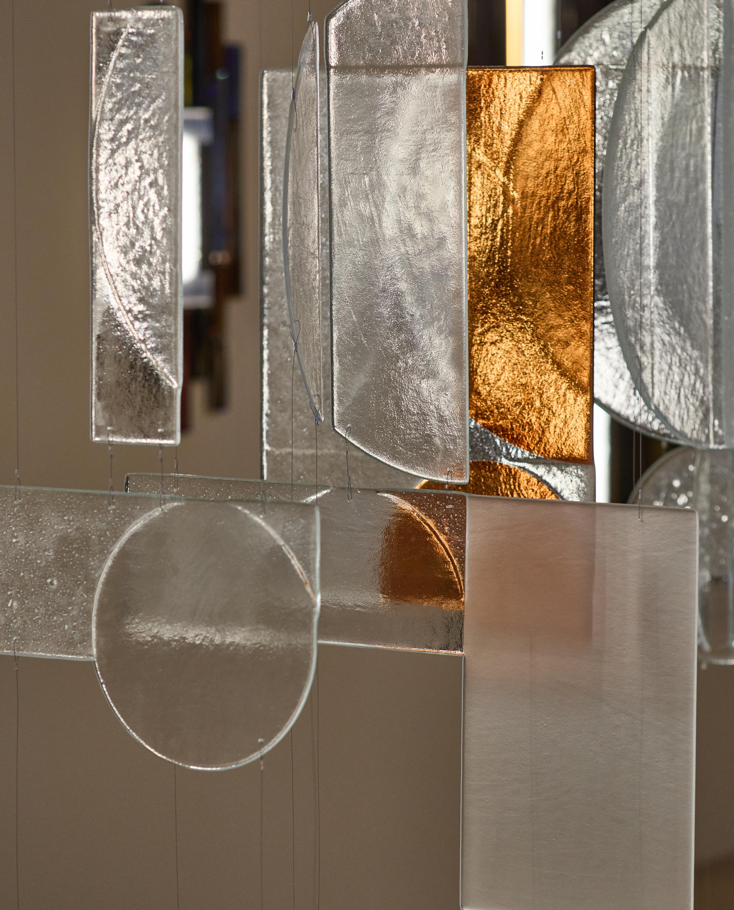 Fibonacci’s Window is an abstract glass and lighting installation that explores the interplay of divine proportion, infinity, and the notion of light as a portal and shadow as a dimension. Rooted in the mathematics of the golden rectangle and the Fibonacci sequence, the piece unfolds through precise divisions and layered geometry, both questioning and revealing the harmony of form. Light fractures and flows through glass, shifting with perspective, and shaping space – an ephemeral echo of infinity. Inspired by windows as portals, the installation invites the viewer to step beyond the visible into a realm where proportion, shadow, and light converge in a luminous threshold of perception.
