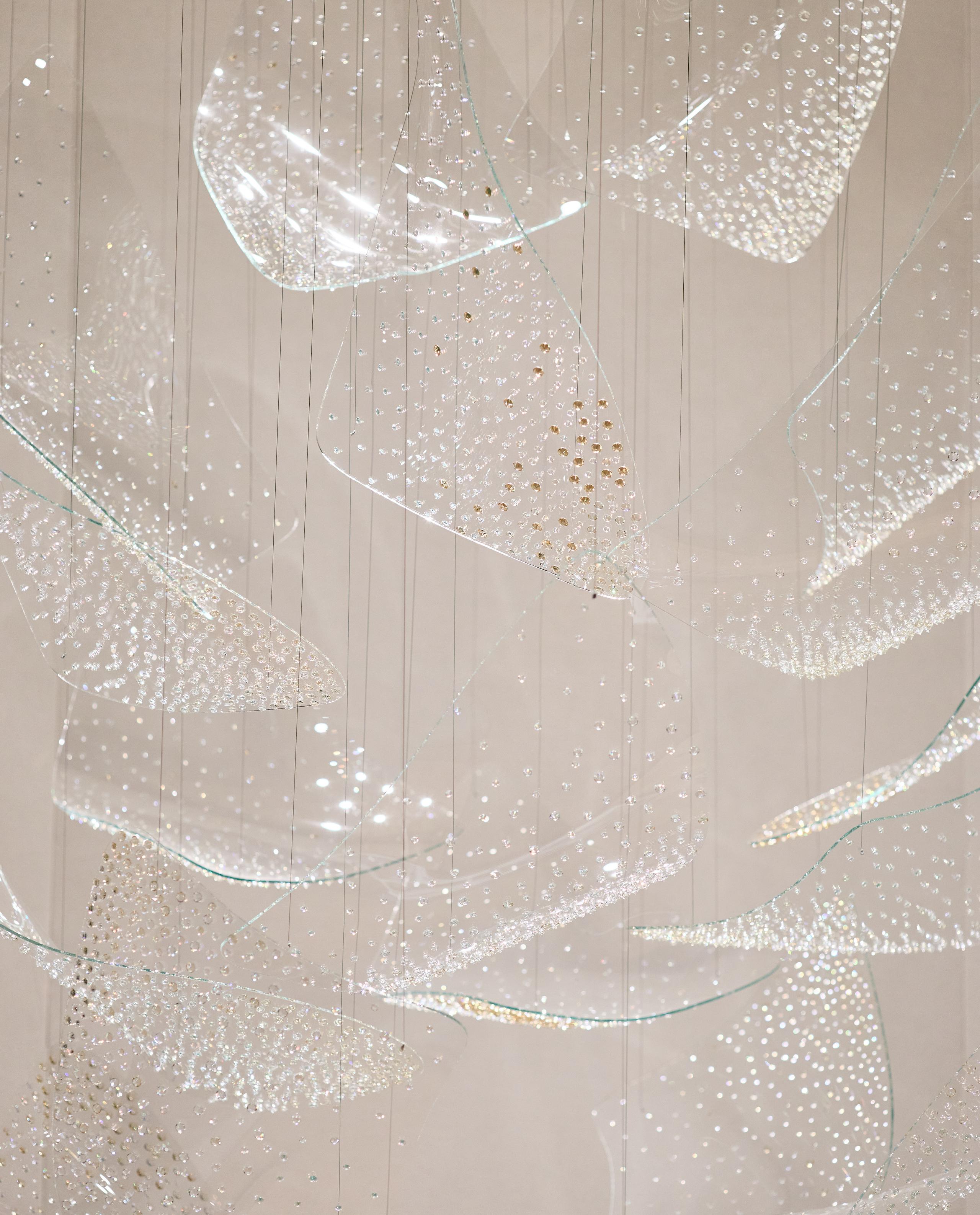 Our stunning Flux collection has evolved, transforming into a celestial realm where movement and light intertwine. Inspired by shifting landscapes and the boundless beauty of the cosmos, Flux Celestial blends dynamic crystal forms with an ethereal elegance. Softened, flowing shapes echo the fluidity of celestial bodies, while shimmering glass chatons in delicate hues create a radiant play of light. With each glimmer and reflection, this collection evokes a sense of weightlessness and wonder – capturing the magic of a universe in motion, forever illuminated.