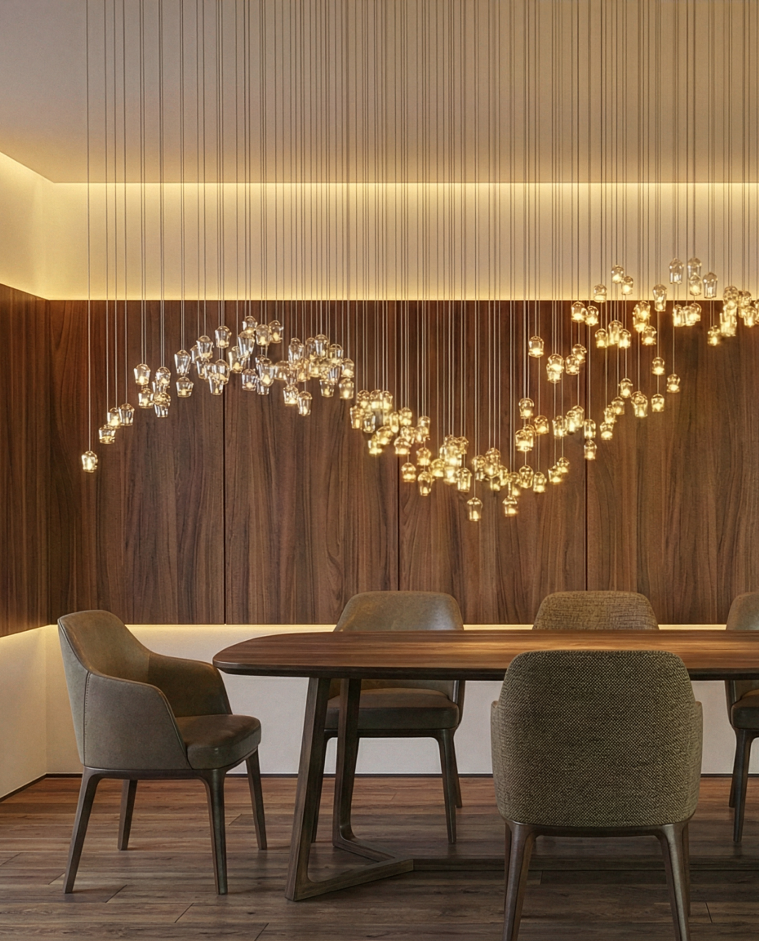 Set on the banks of the Vltava River, the newly renovated Fairmont Golden Prague is a striking celebration of Brutalist architecture, mid-century influences, and contemporary elegance. Sans Souci had the honour of contributing to this landmark transformation by crafting over 1,200 bespoke lighting pieces, seamlessly woven into the fabric of the hotel’s design.