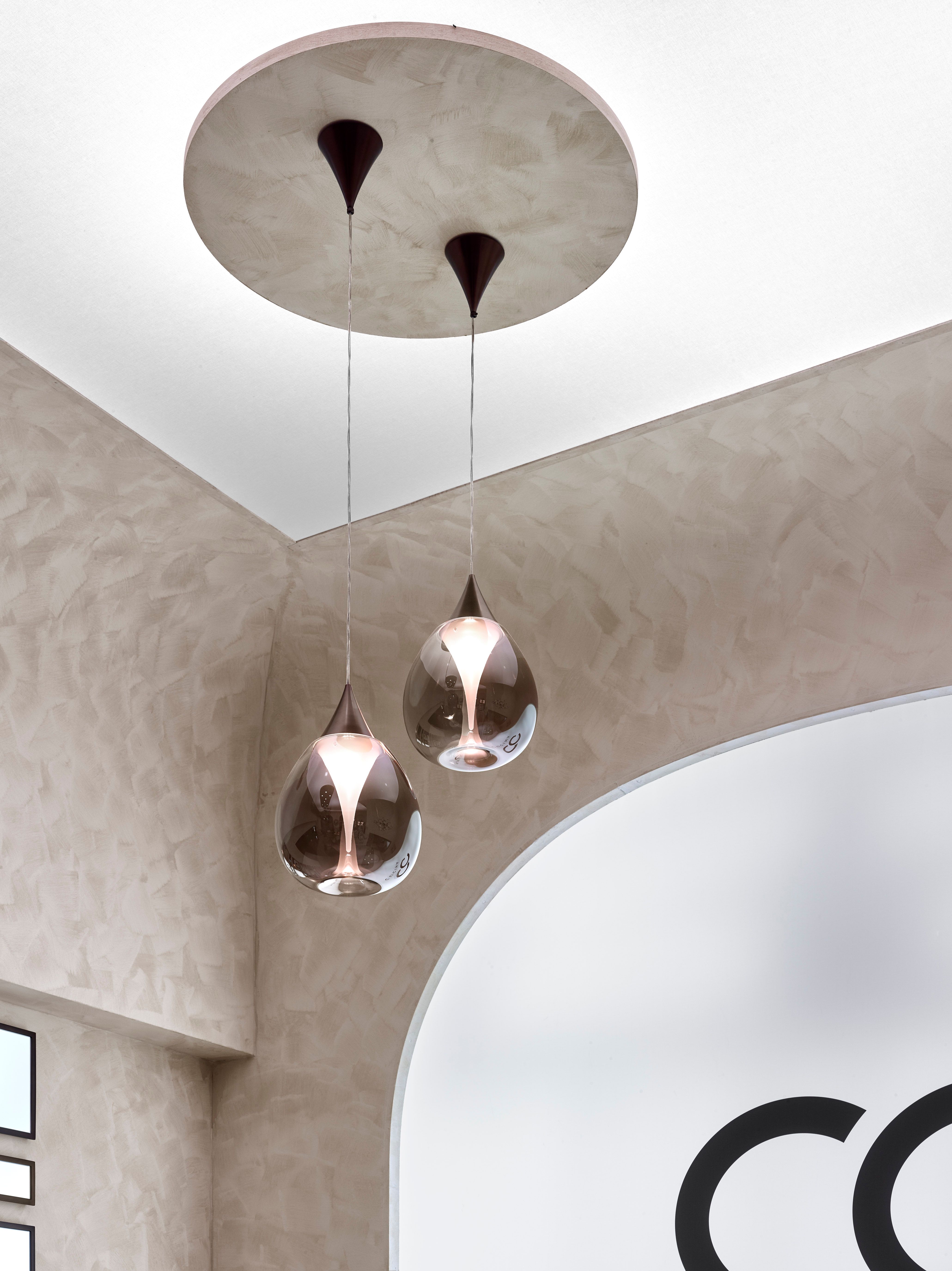 Light radiates through the darkness to create space and depth. The infinite beauty and depth of the universe are reflected in the Galileo product. An expertly crafted glass orb radiates pure light and is positioned in different configurations with a flawless pendant finished in translucent argent or aurum nanocoating.