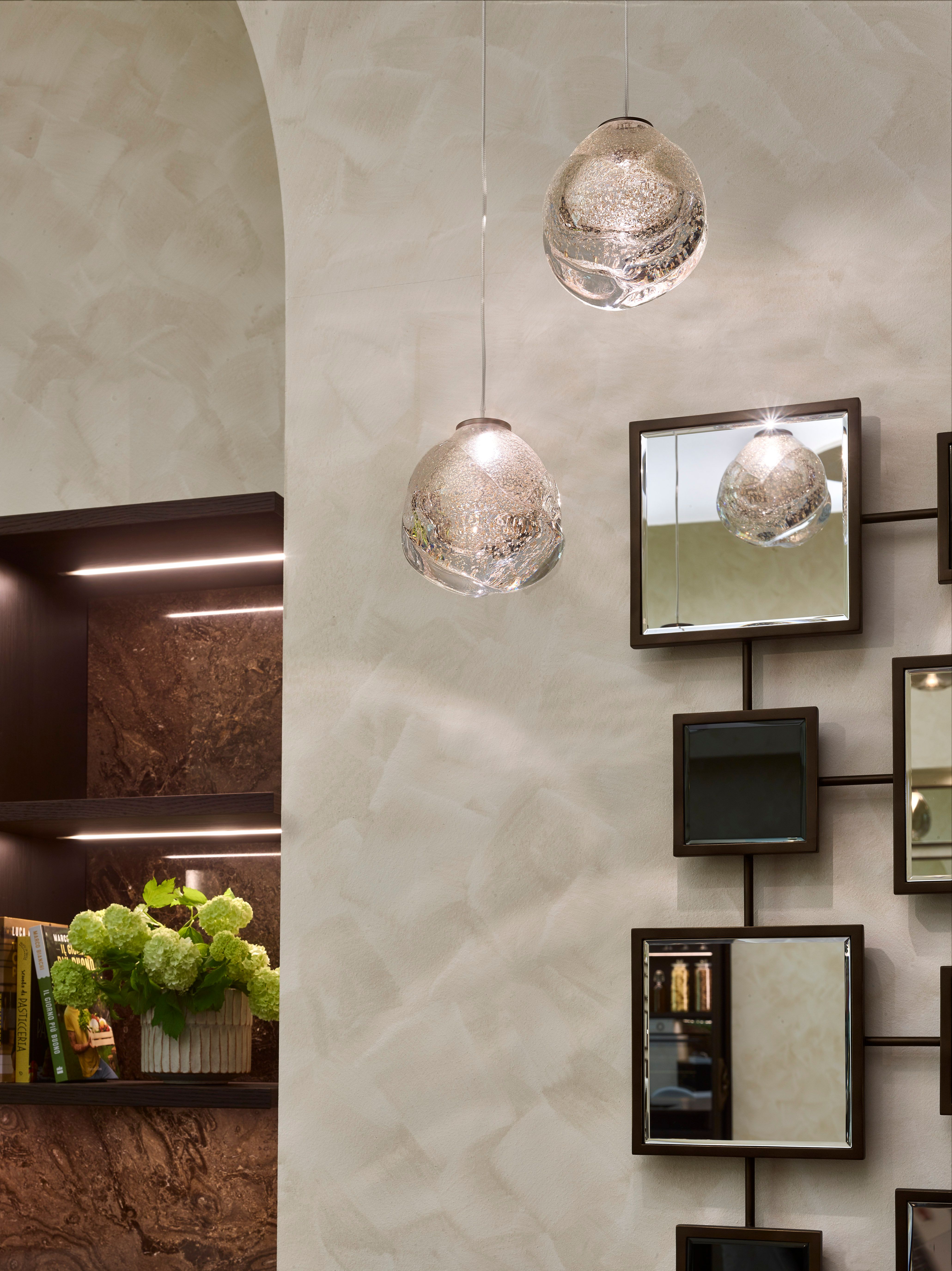 The Raw collection embodies the distinctive beauty of glass in its purest form when taken from the furnace. Each component is bold and unique, available in crystal, soda, and golden mica finishes to enhance the depth and detail of your interior.
