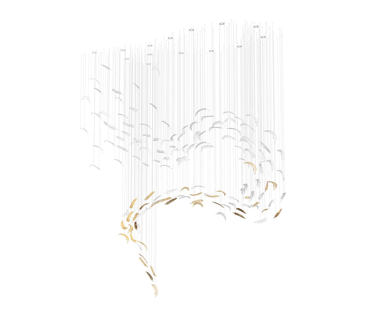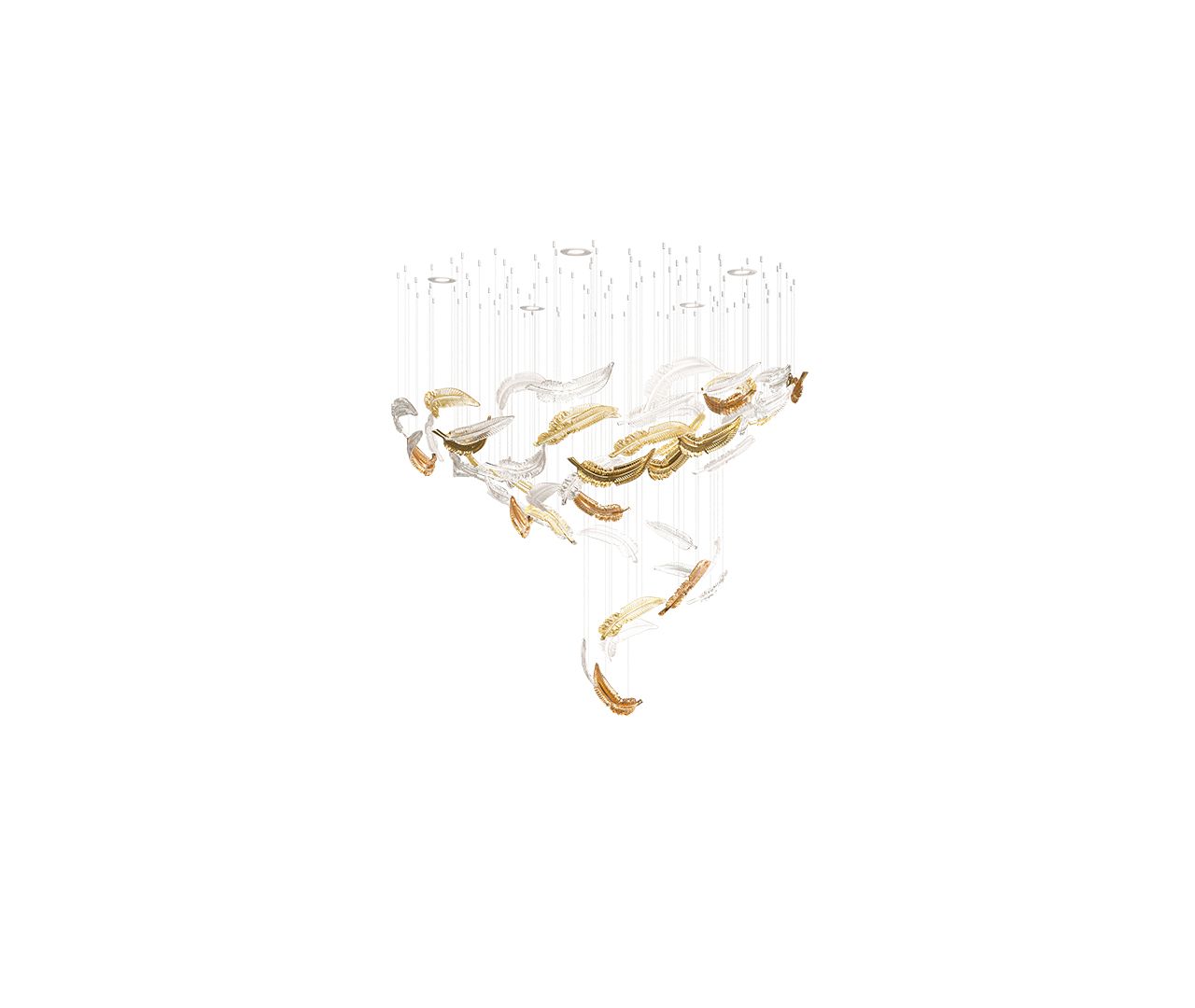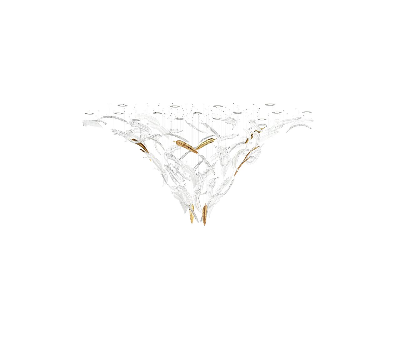 Symbolising freedom, a bird’s flight inspires these hand-blown crystal feathers. The Airy collection beautifully conveys grace and effortless movement. Each feather is meticulously crafted to express the delicate essence of flight, combining artistry with a sense of lightness.