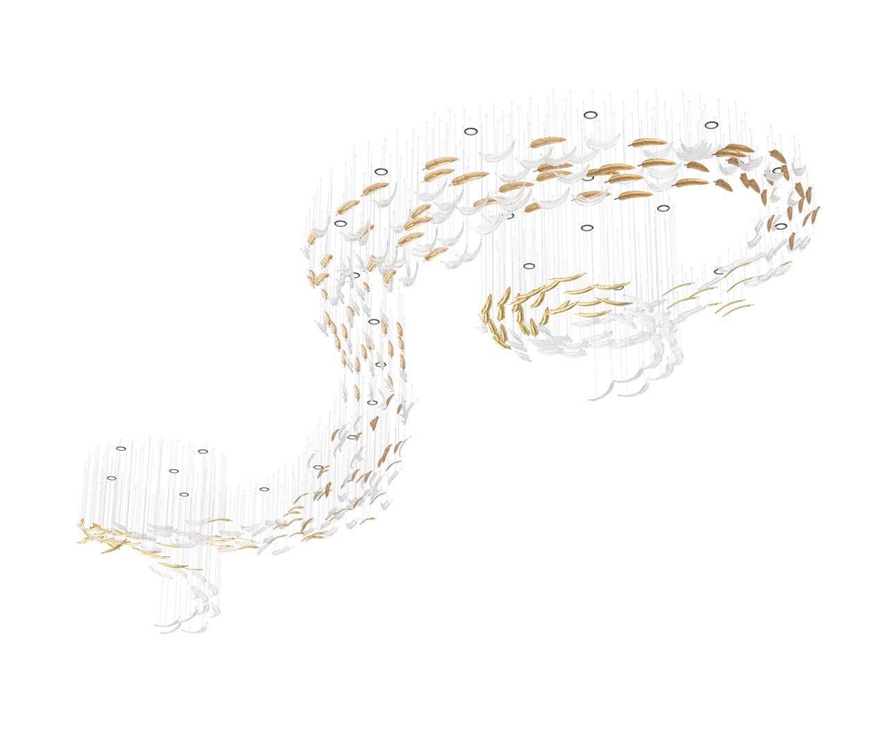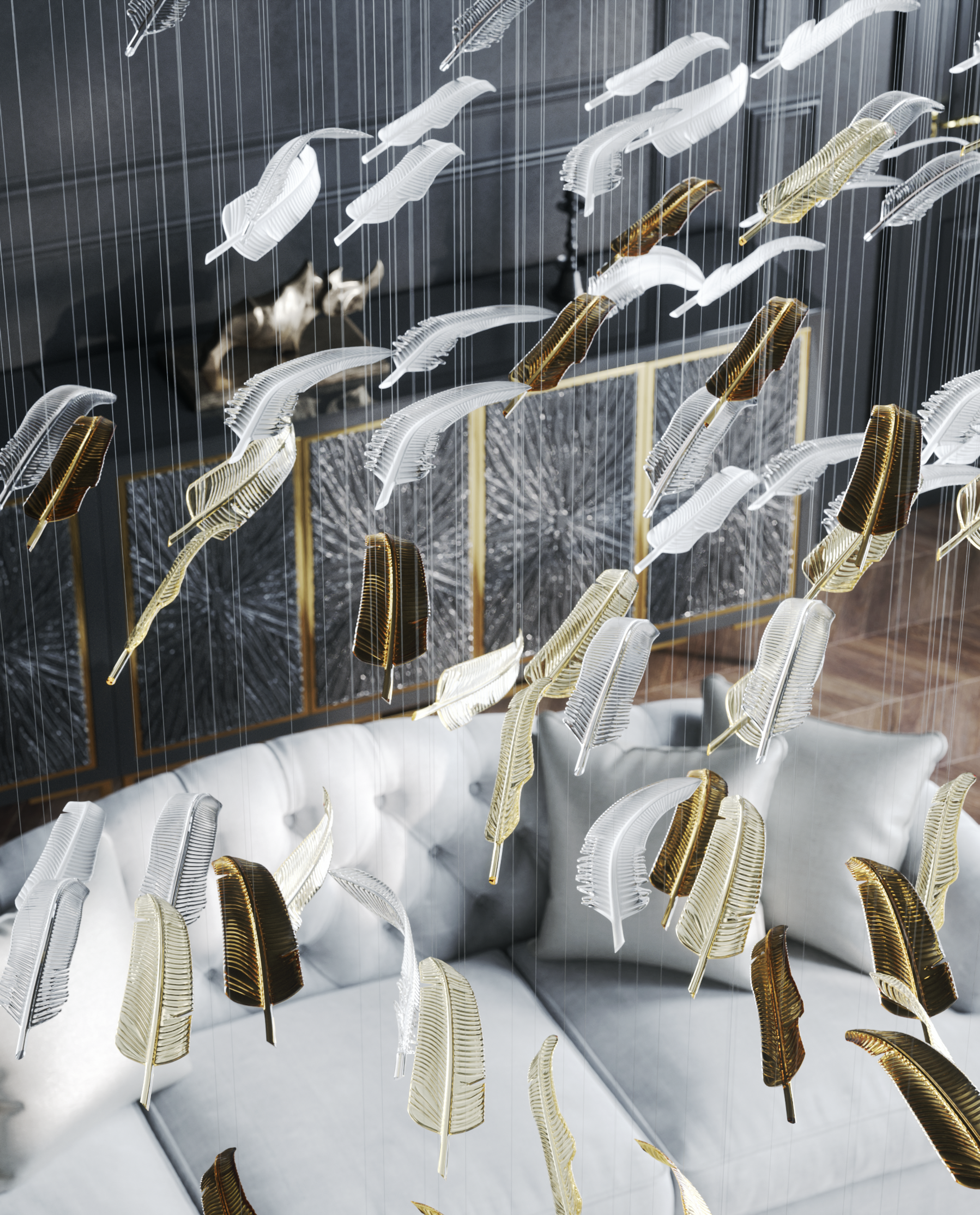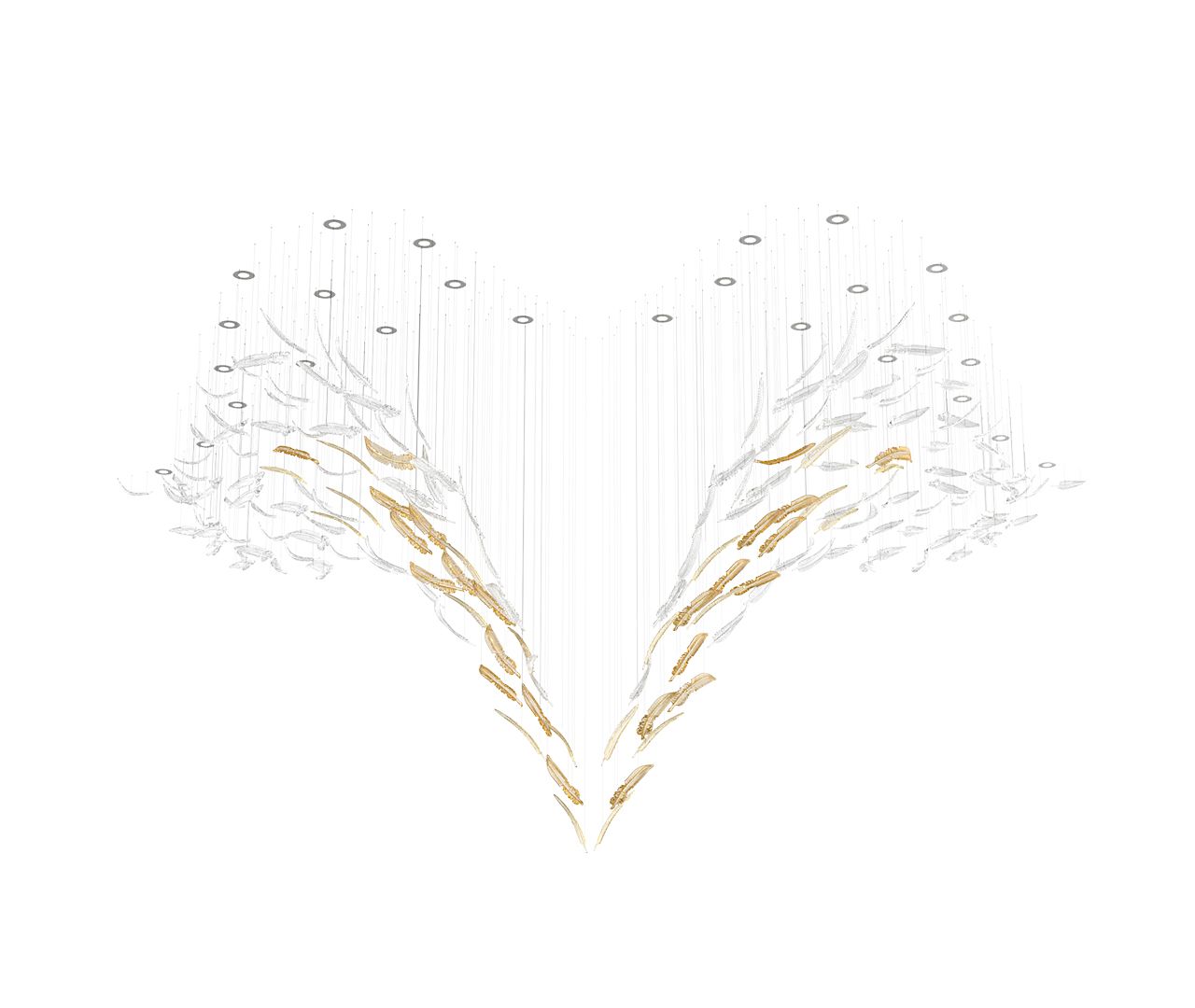 Symbolising freedom, a bird’s flight inspires these hand-blown crystal feathers. The Airy collection beautifully conveys grace and effortless movement. Each feather is meticulously crafted to express the delicate essence of flight, combining artistry with a sense of lightness.