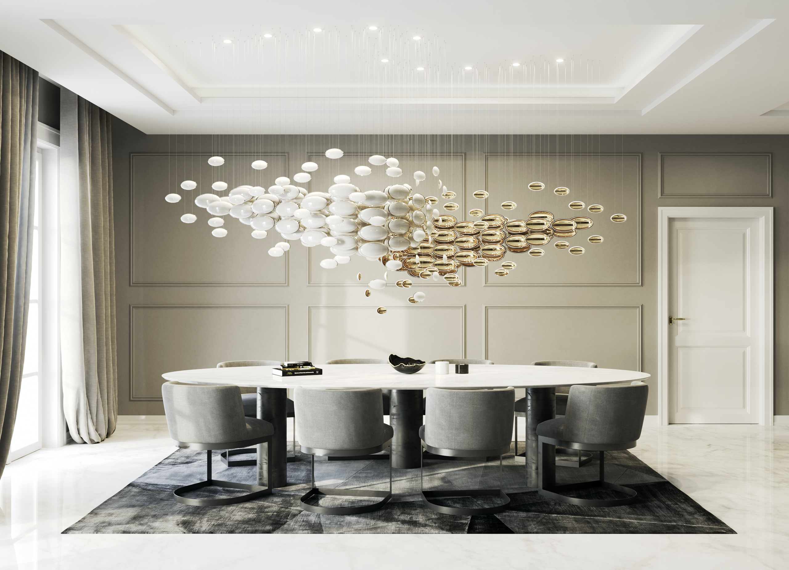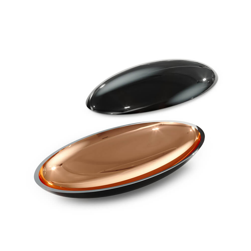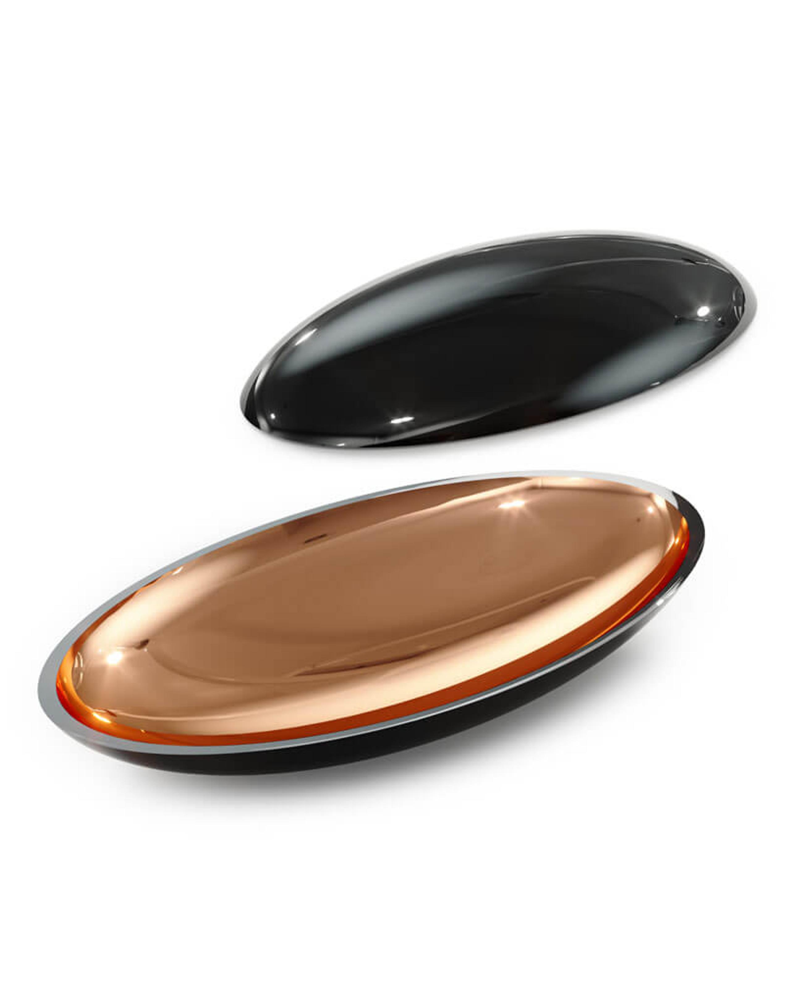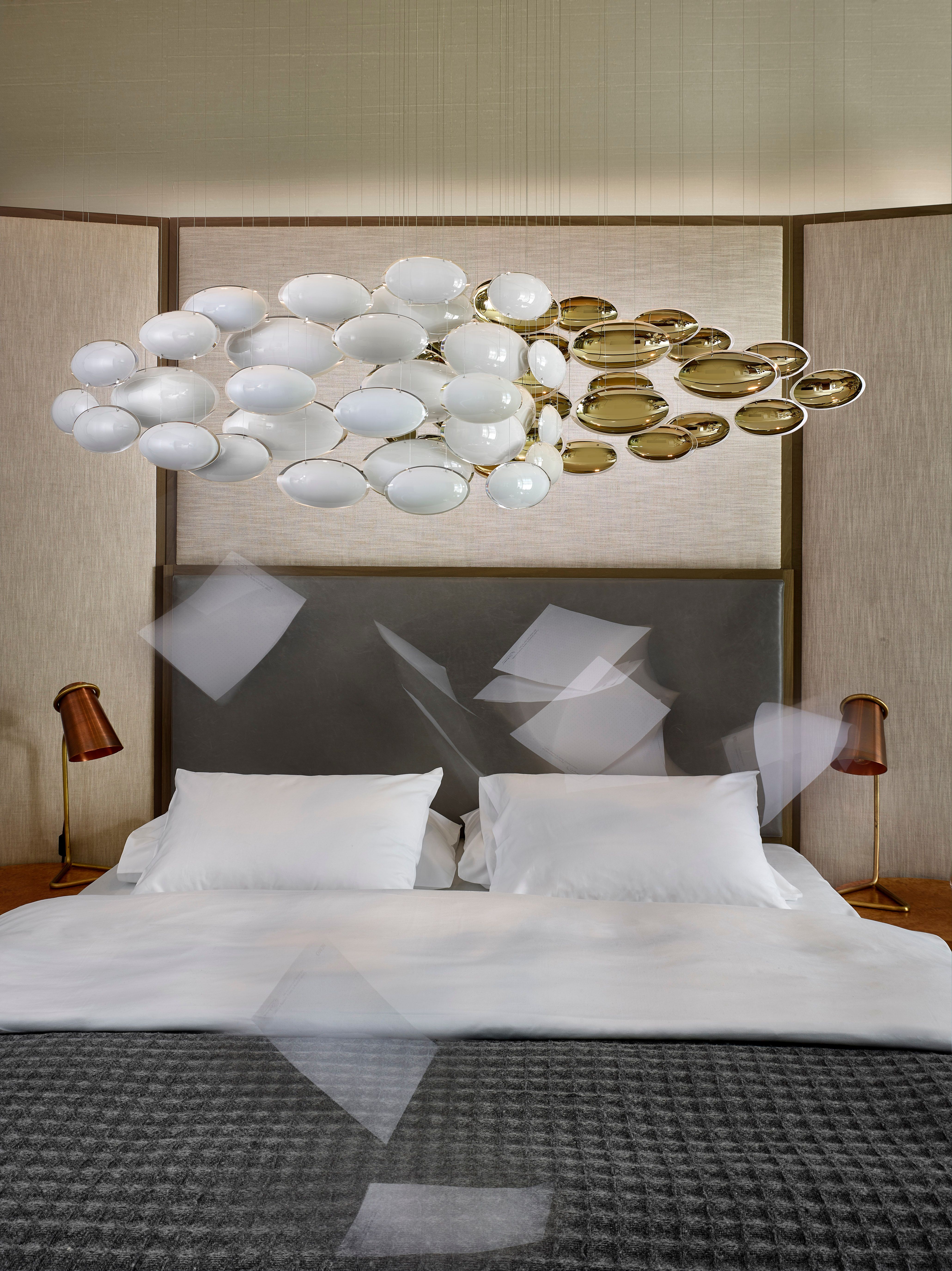 Embodying elegance in its purest form, the Bowls collection showcases a sleek design that creates a fluid wave of light within any interior. Each crystal piece is enhanced by contrasting finishes – one side features a reflective metal nanocoating, while the other is infused with a complementary colour. Suspended in a flowing arrangement, Bowls forms a striking, contemporary statement piece.