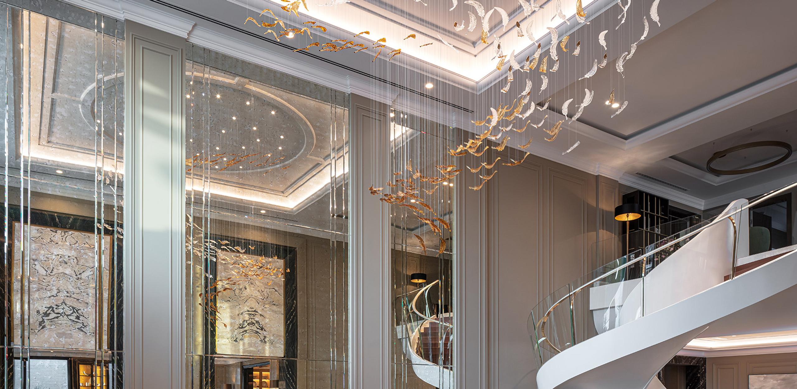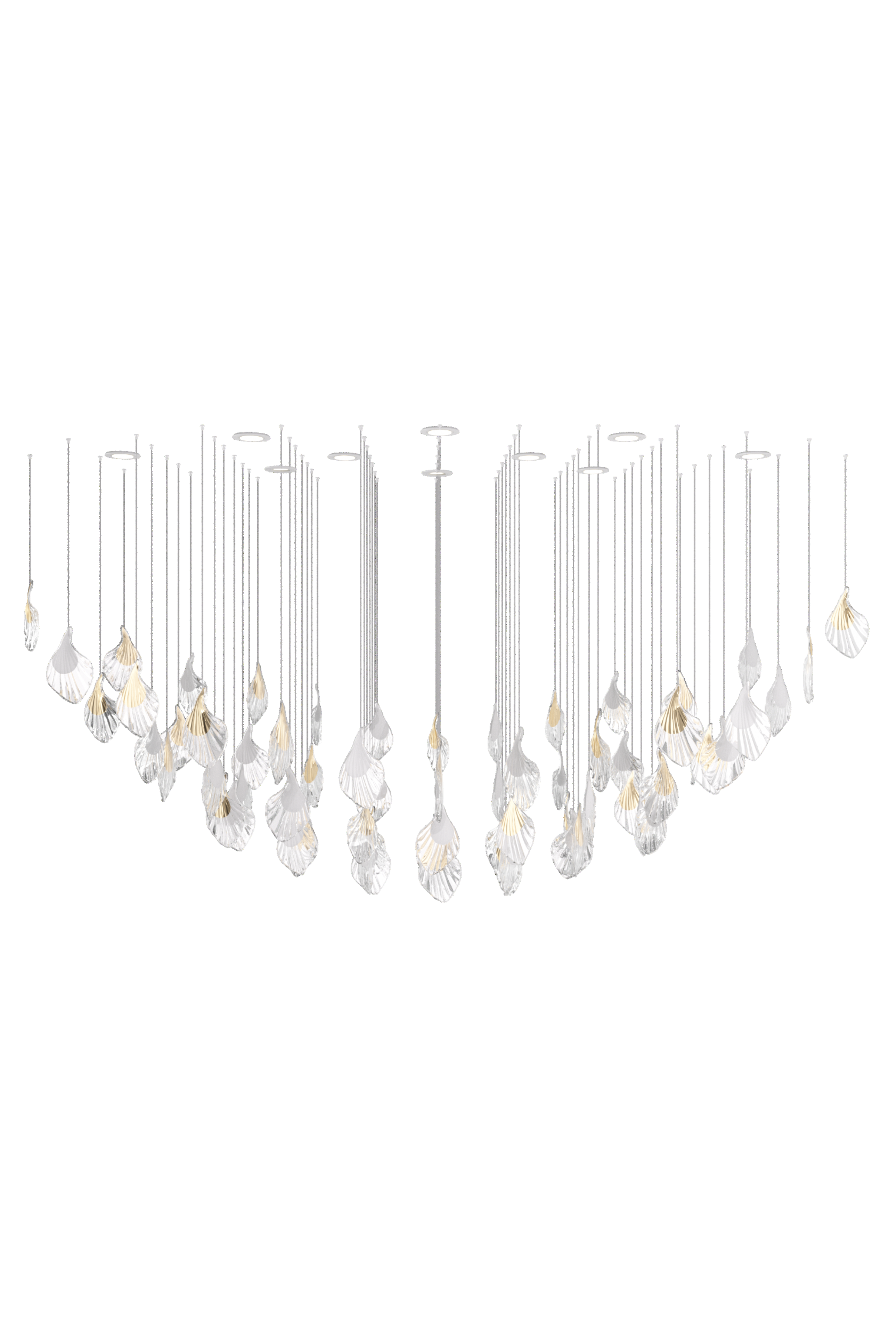Capturing the organic beauty of leaves drifting through the air, the Breeze collection draws inspiration from the everchanging nature. Each handblown crystal leaf reflects the delicate interplay of light and colour, echoing the gentle movement of the wind to bring a tranquil atmosphere to any interior.