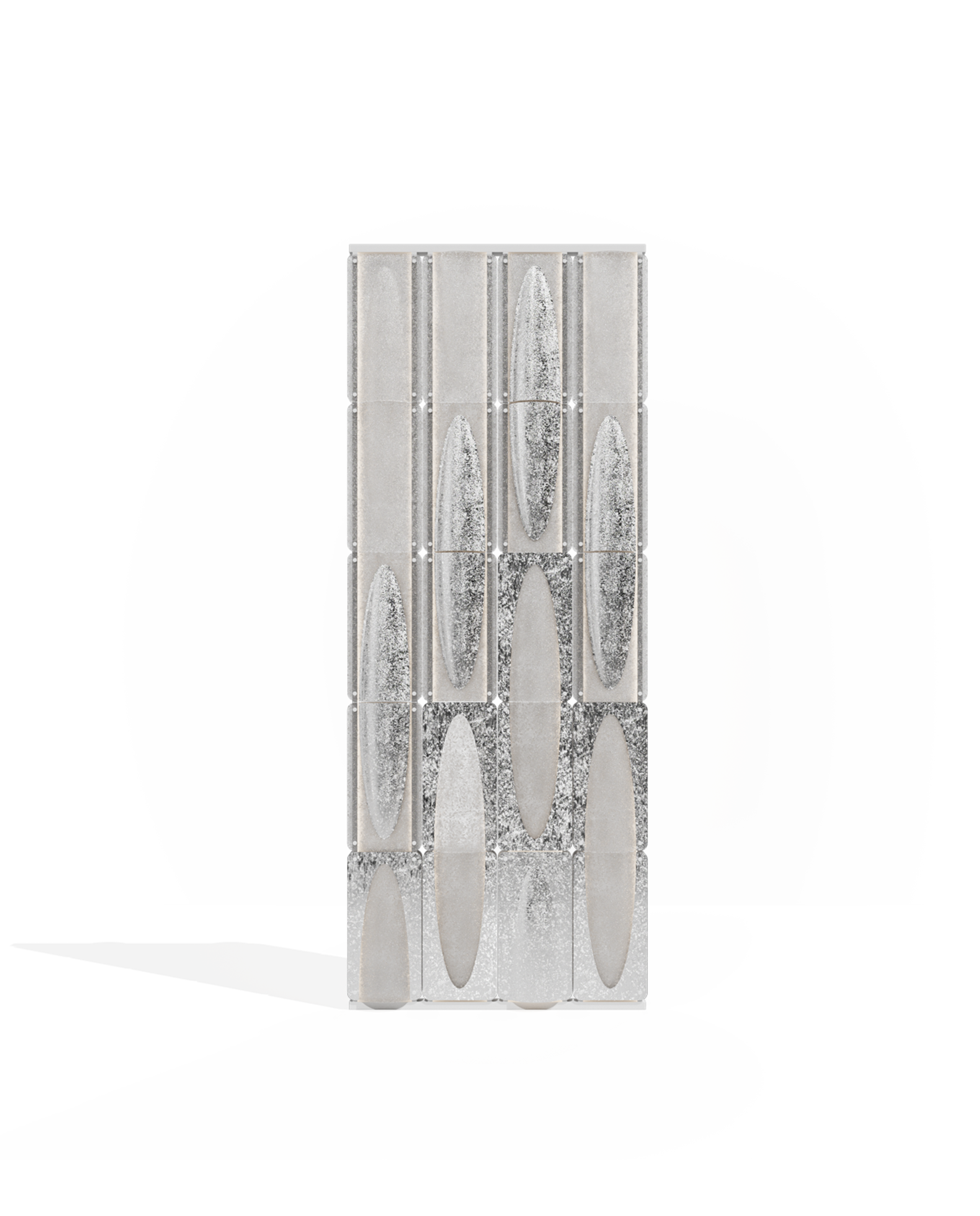 The Capsule collection is defined by its modular concept, offering a wide spectrum of creative possibilities and visual outcomes. Each component can be arranged facing one another or in opposing directions, allowing for dynamic and versatile compositions. By combining different nanocoating options – whether applied to the flat or convex side – each piece reveals a unique character. This flexible approach makes Capsule ideal for a variety of applications, from pendant lights to sculptural wall installations and bespoke lamps.