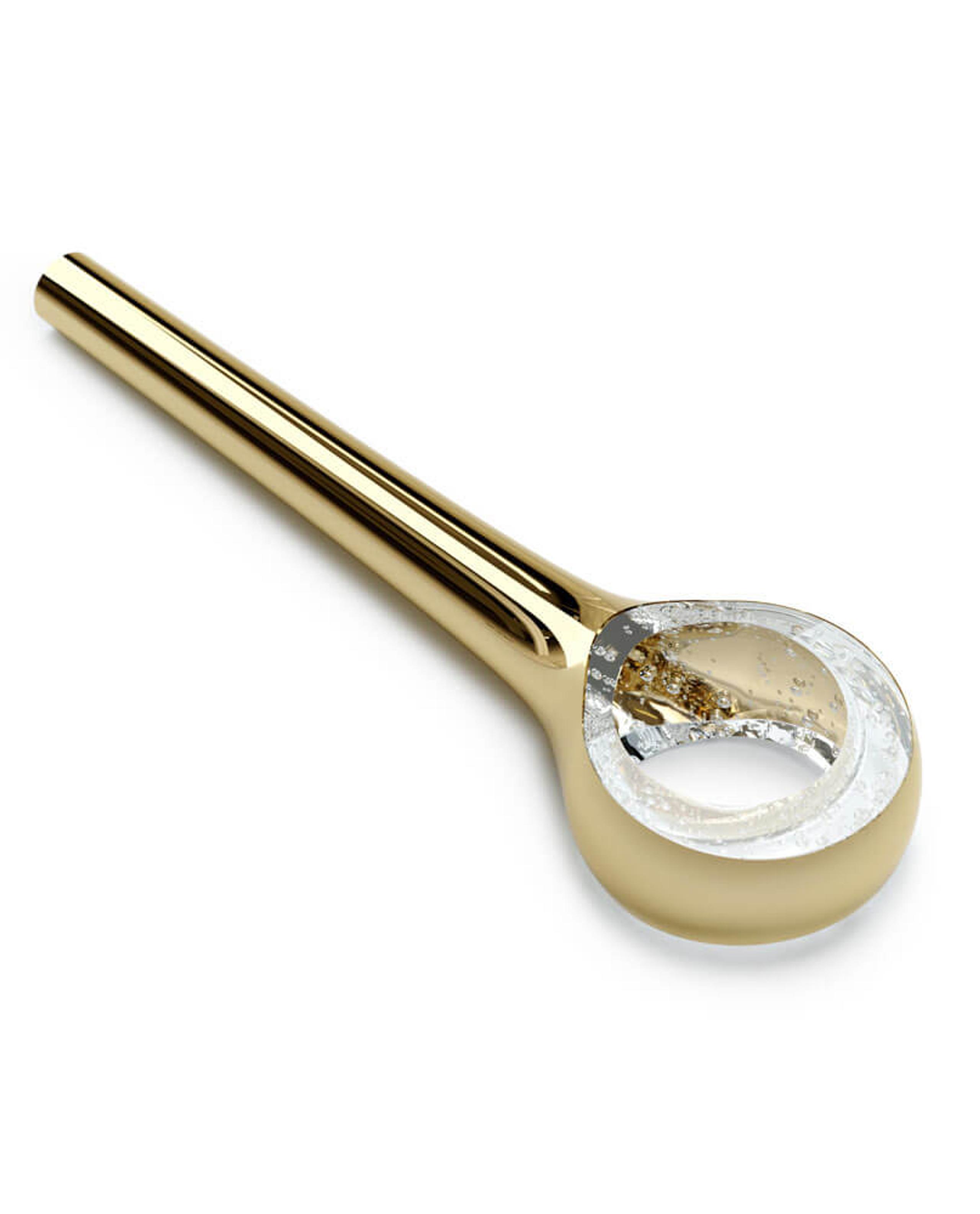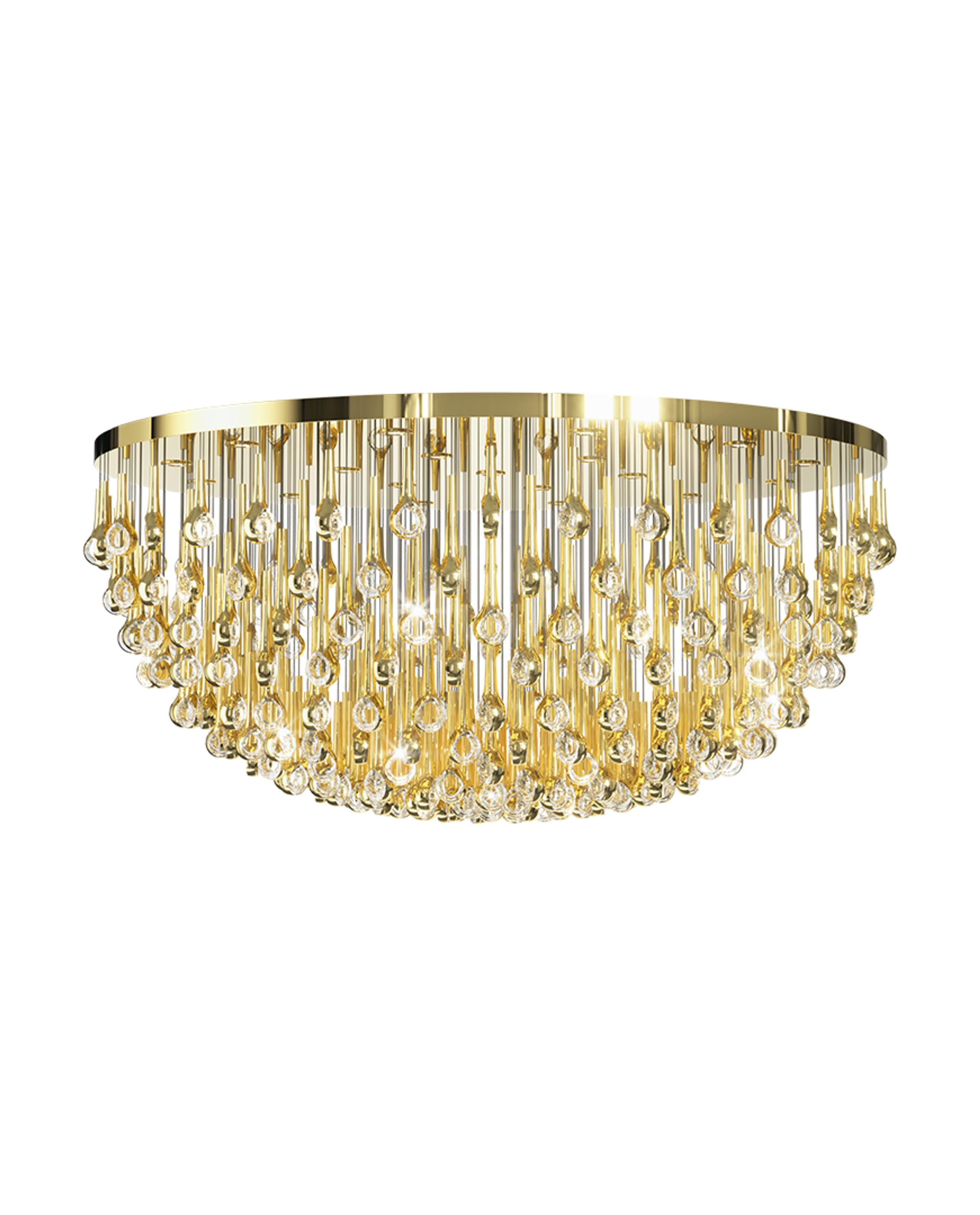 The Eyelet collection creates a striking visual with its sleek, elongated forms suspended from the ceiling, resembling polished needles. Each piece is enhanced with metal nanocoating, giving it a reflective finish, that captures and refracts light, adding an interplay of shimmer and depth.