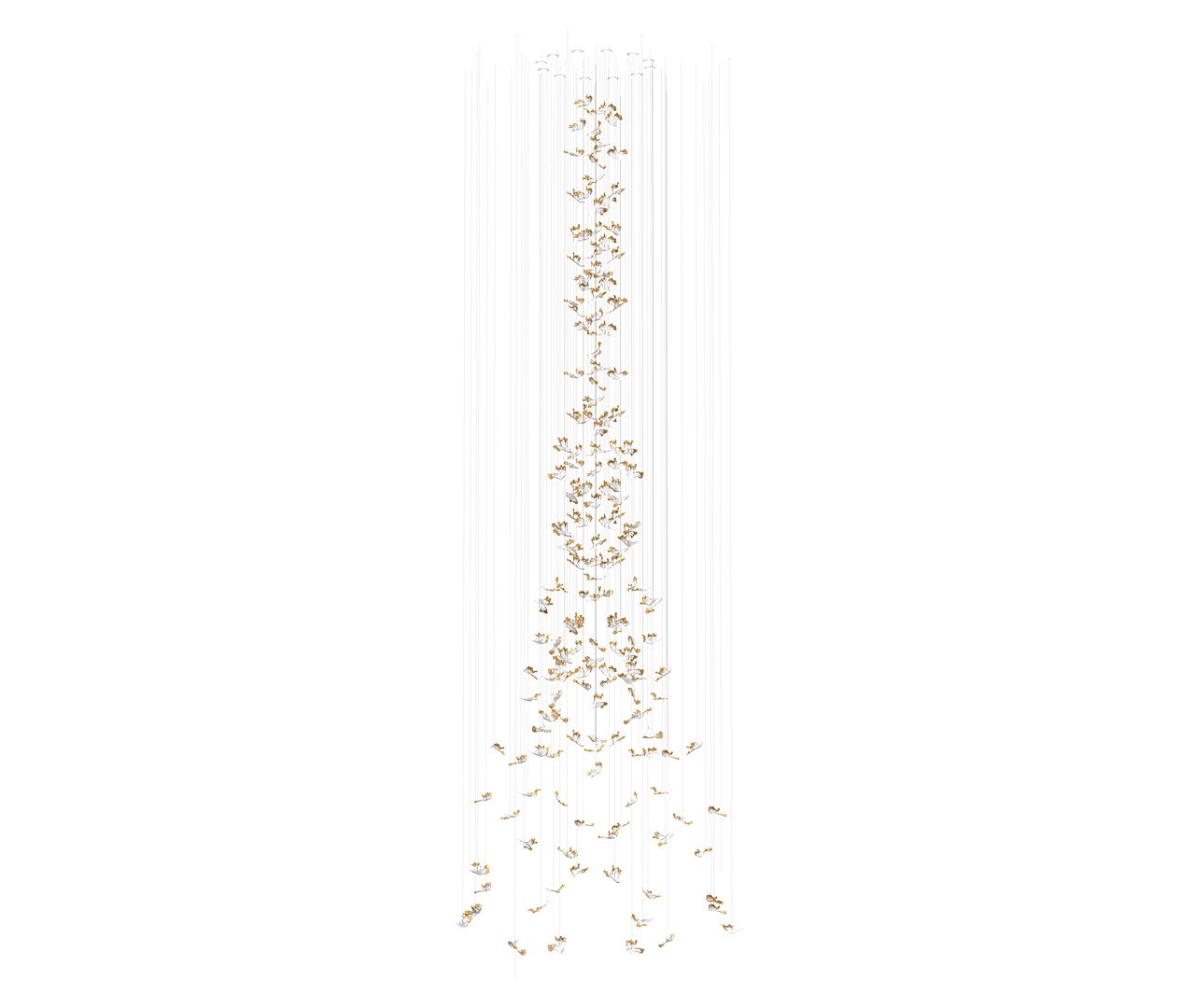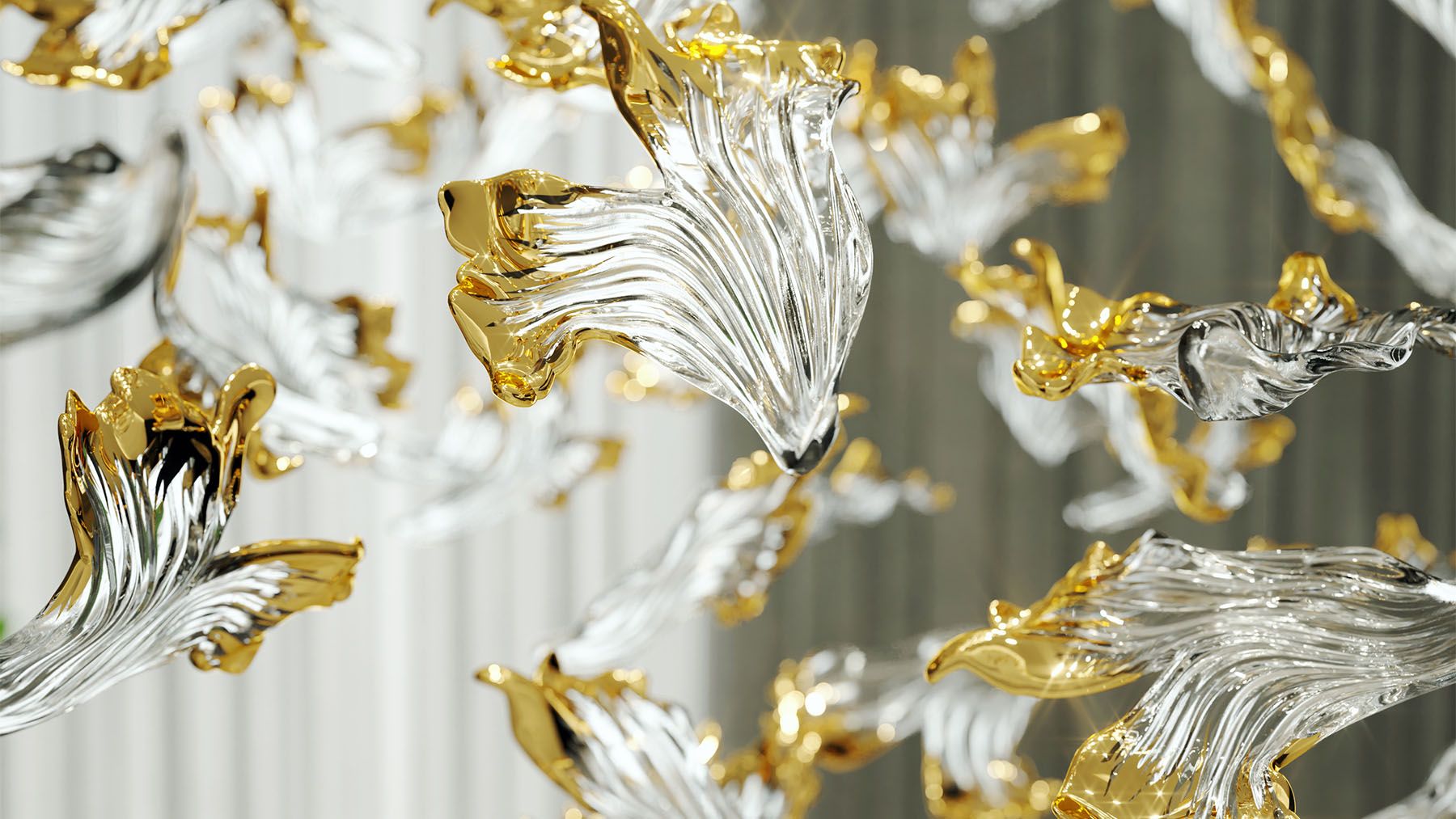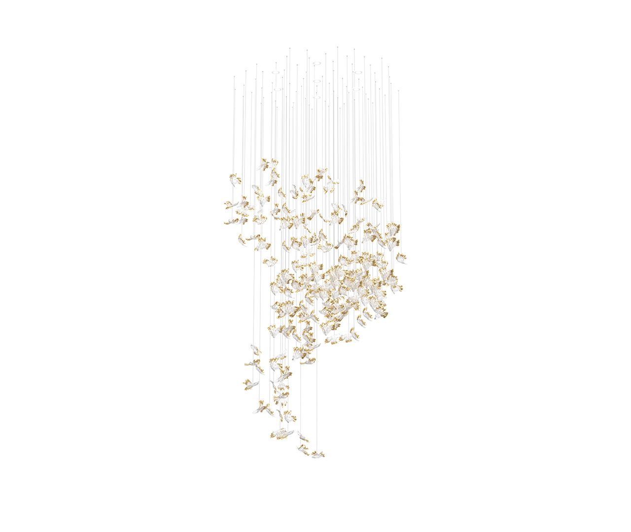 Drawing from the delicate beauty of petals falling like icy snowflakes, the Frozen collection captures the fragile elegance of flowers touched by the first frost. Each crystal petal embodies the intricate details of nature preserved in winter’s embrace. A subtle colour gradient and gilded edges enhance the frosty effect, creating a shimmering interplay of light.