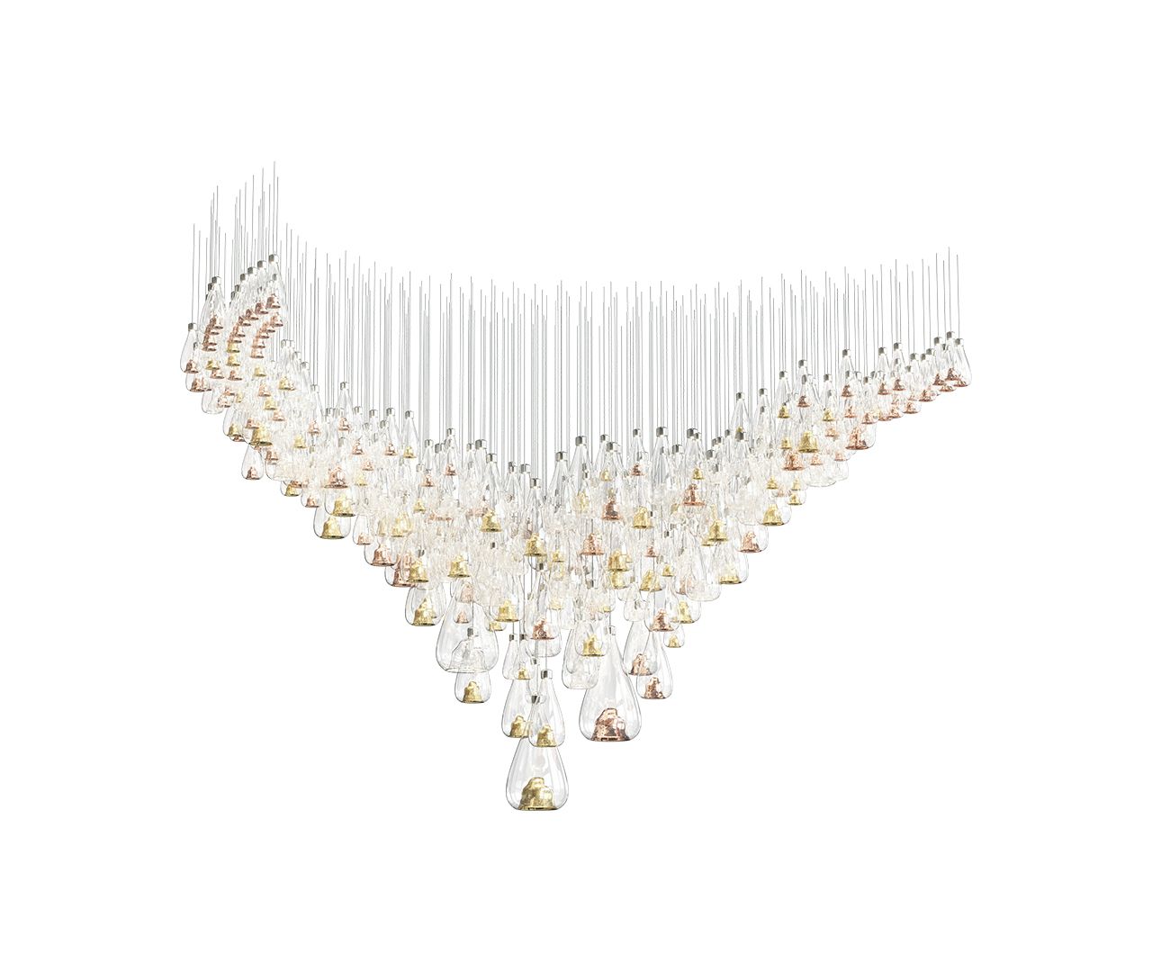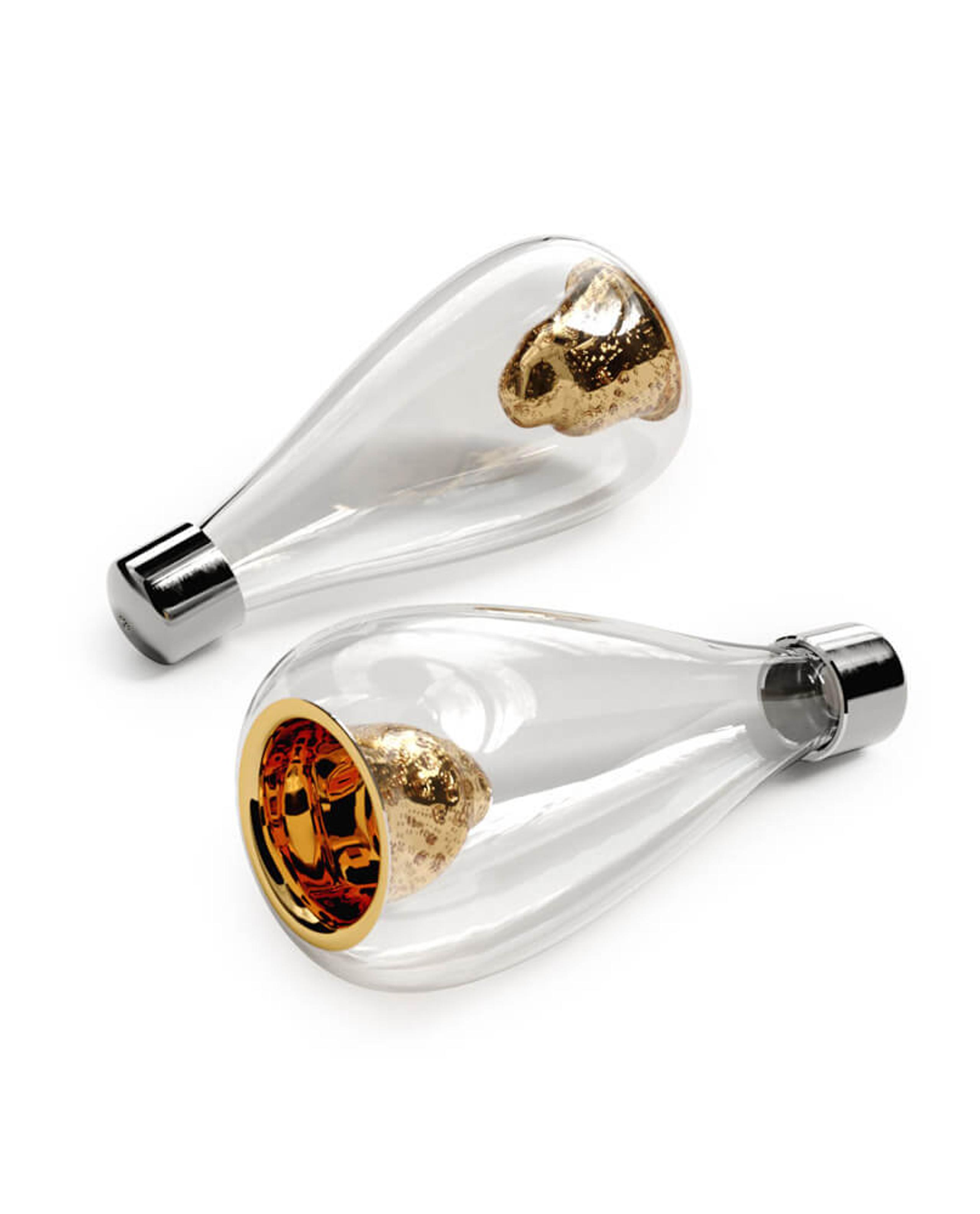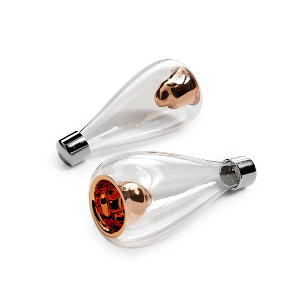 Rooted in the heart of the Crystal Valley, the Haida collection takes its name from the ancient moorland that would later become Nový Bor. Each handblown crystal bulb bears the unique imprint of basalt stone, enhanced by a metal nanocoating and a subtle soda effect. Haida merges the time-honoured craftsmanship of local glassblowers with a tribute to the untamed landscape.