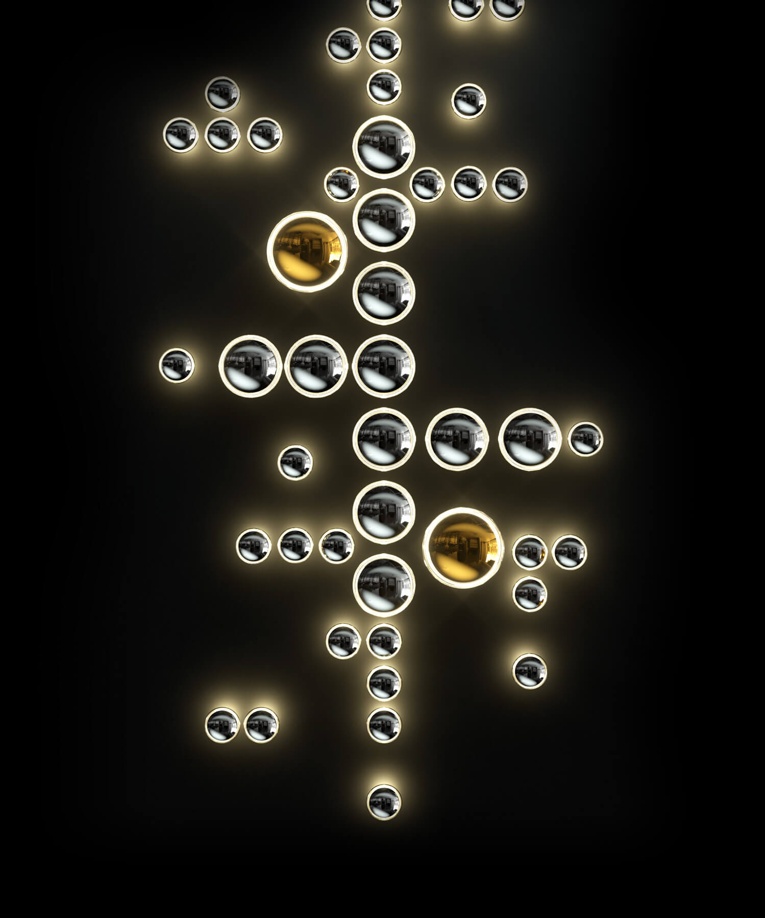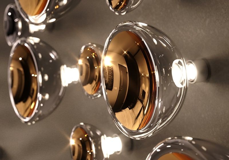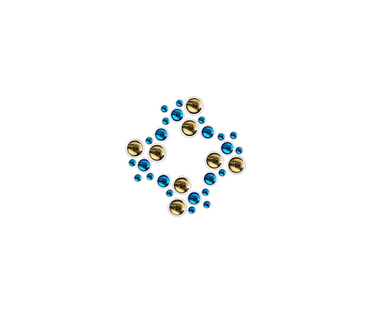 Lagoon explore the soft free-form lines and curves of a beautiful lagoon. Just like in nature, create a private inlet with blue, gold, and titan nano-coated glass components that shine in every direction. Let your imagination play out the spectacular scenery right on the wall.