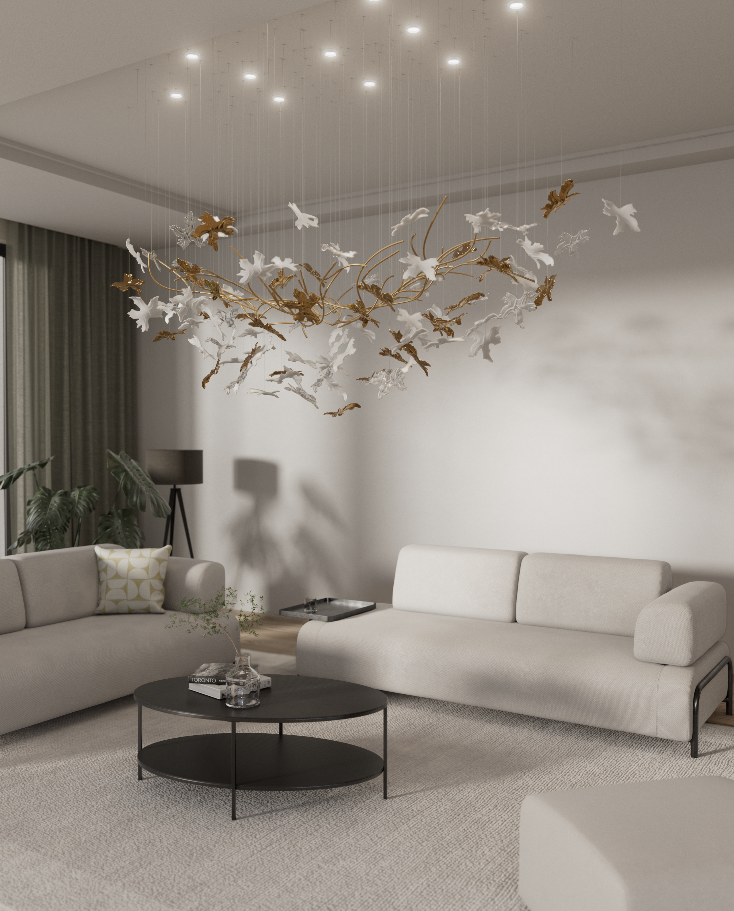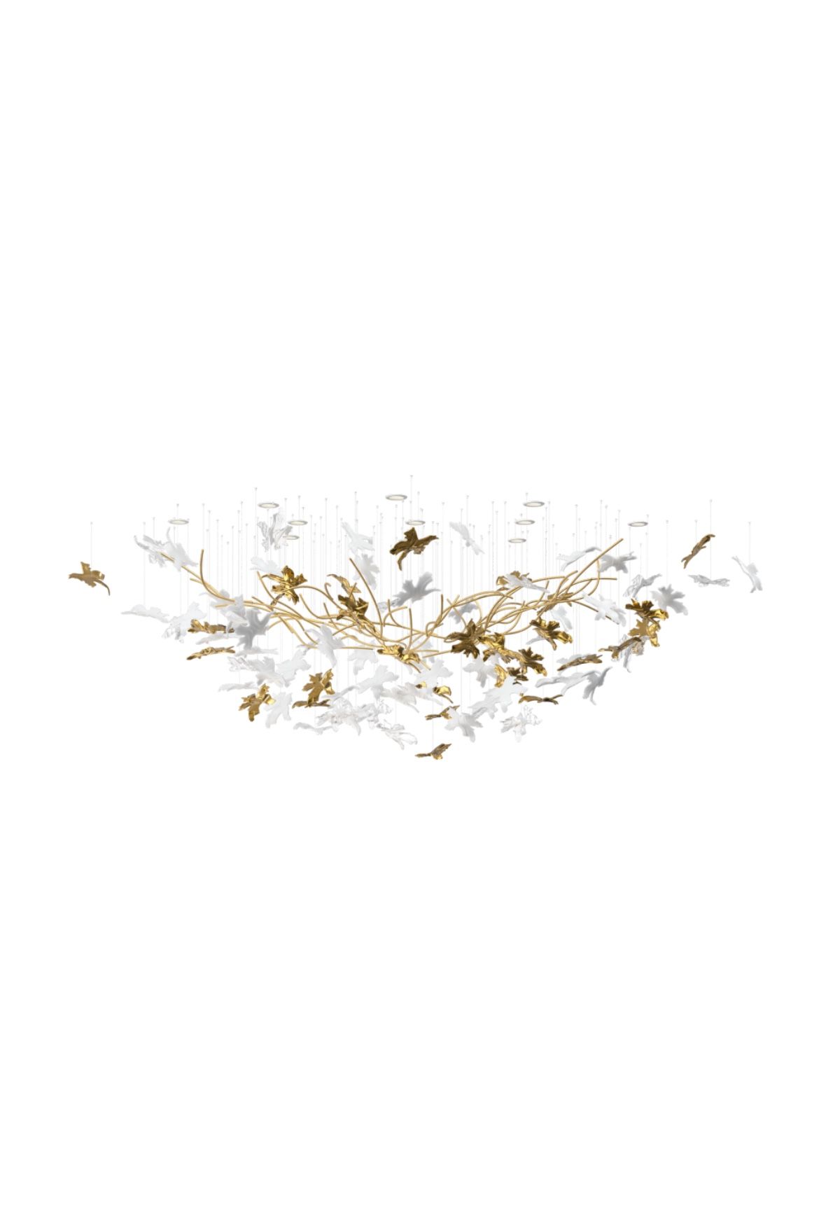 The Vine collection captures the beauty and richness of a vineyard during harvest. Handblown crystal pieces, shaped to mimic vine leaves, can be arranged around bronze branches to create a captivating, nature-inspired installation.