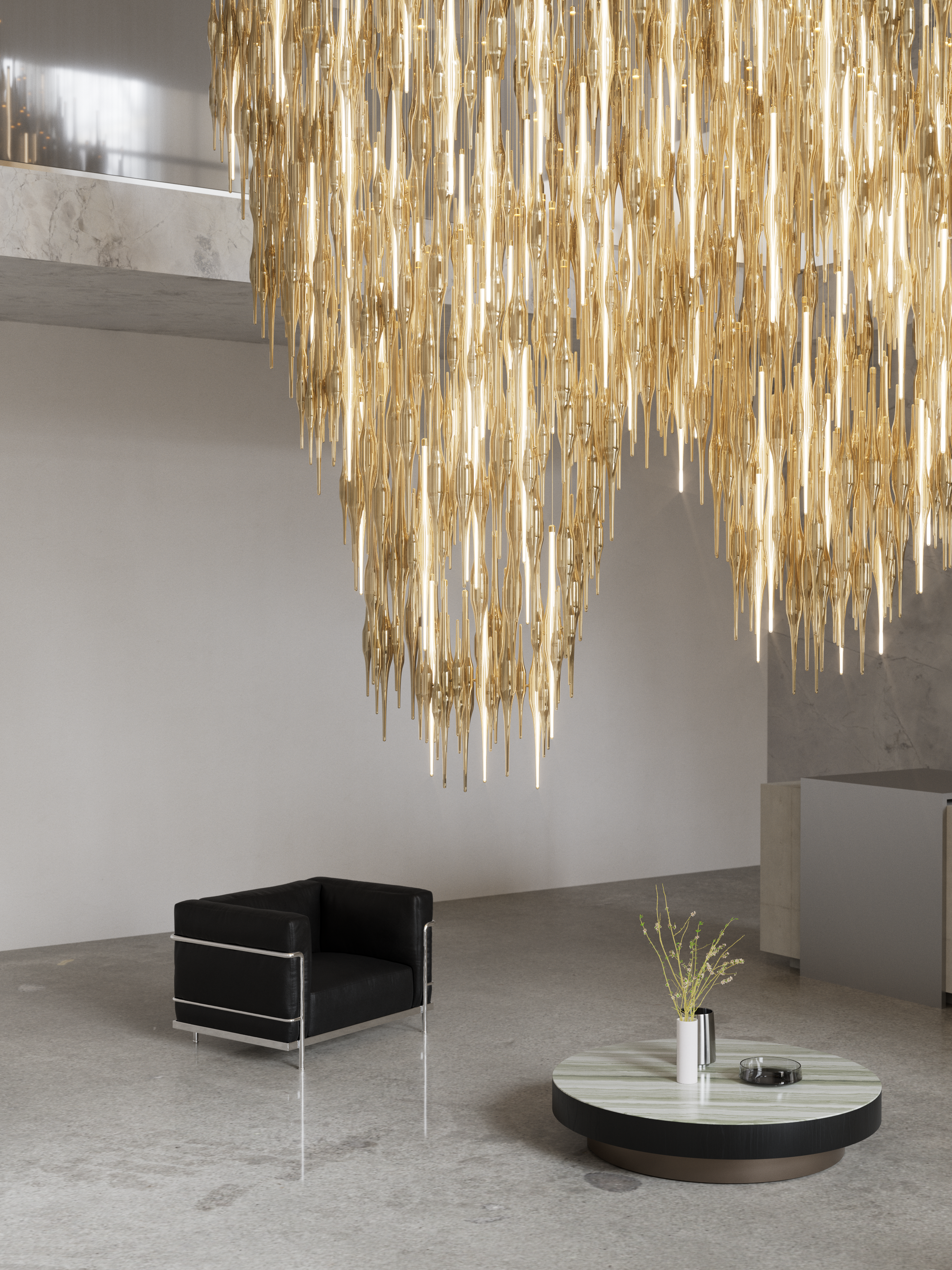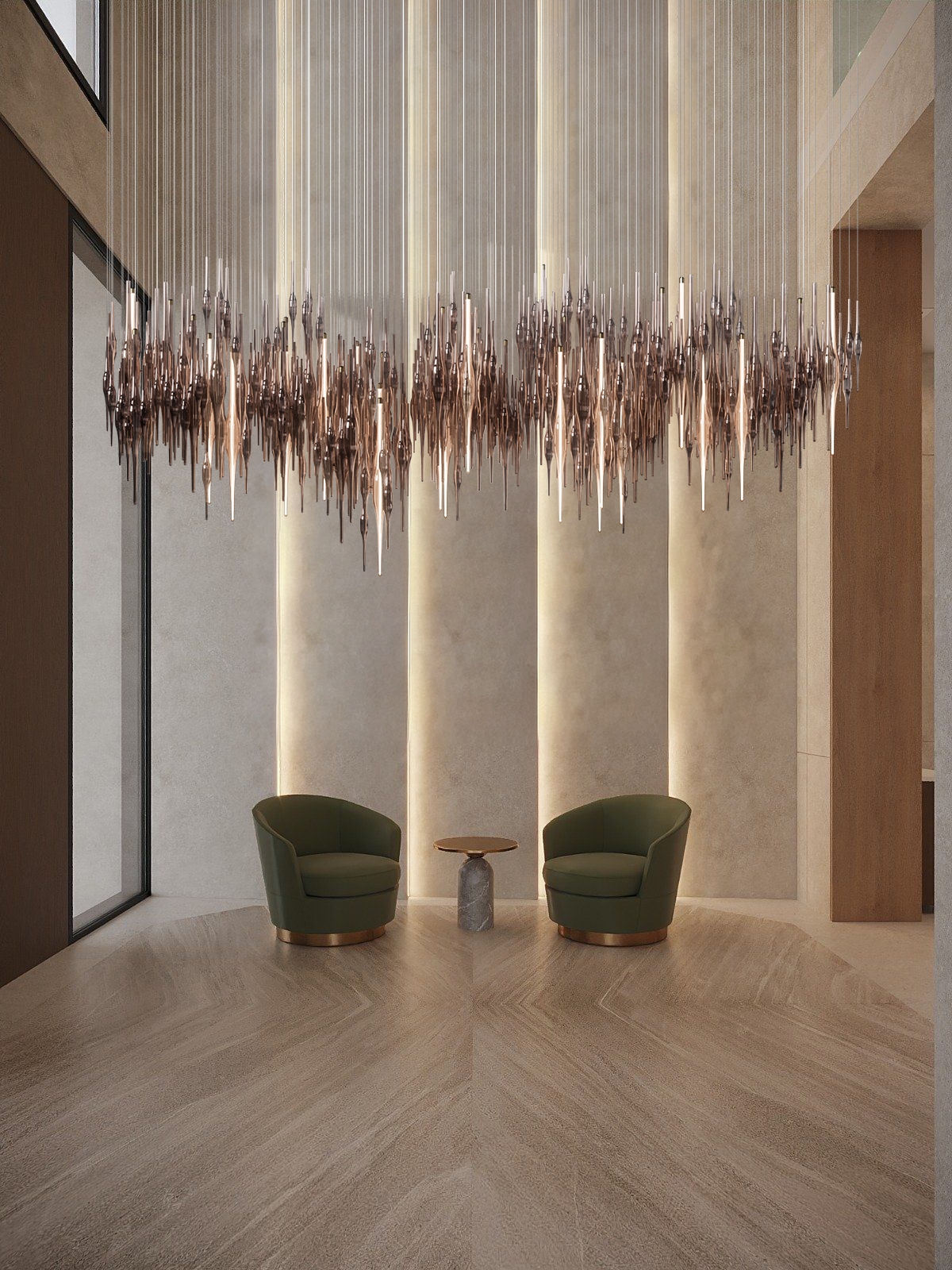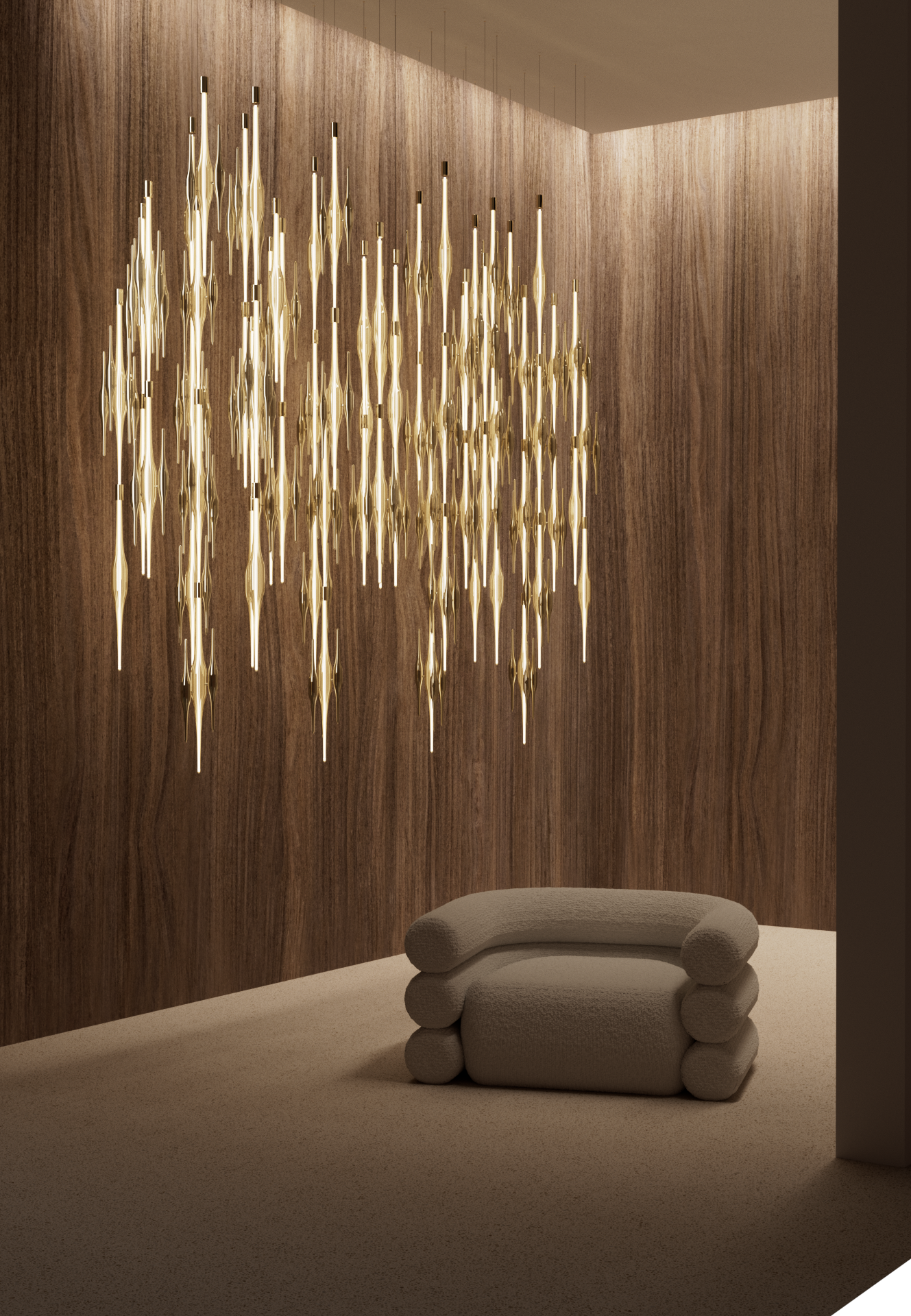 Vitara now extends beyond chandeliers, offering the option to create bespoke wall installations. The same Gothic-inspired geometry can be translated into vertical compositions, adding depth and architectural structure to the interior.