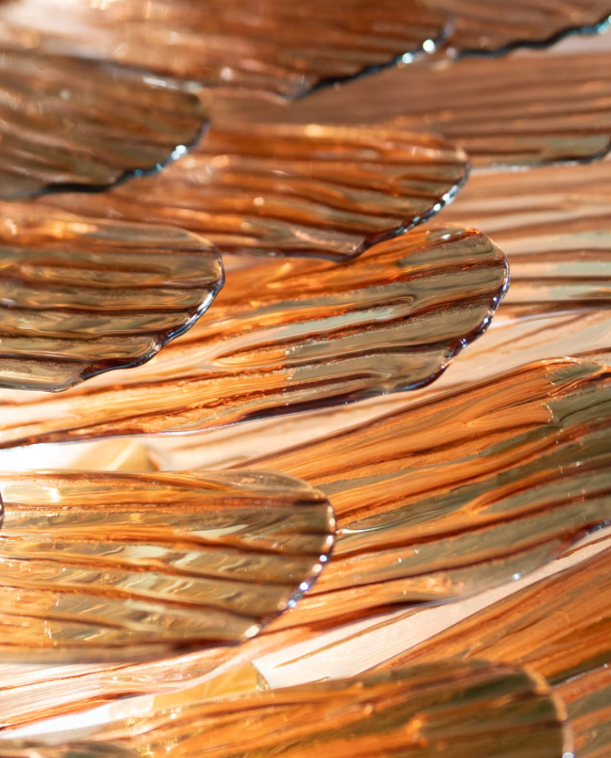 The design by Petr Vacek was created using a special generative system – a set of scripted rules defining the relationships between form, pattern, and motion. Each glass component follows its rules, resulting in a composition that feels both precise and naturally fluid, forming the organic pattern of wind-blown dunes. The installation then comes to life with dynamic lighting, which adds subtle motion and depth.