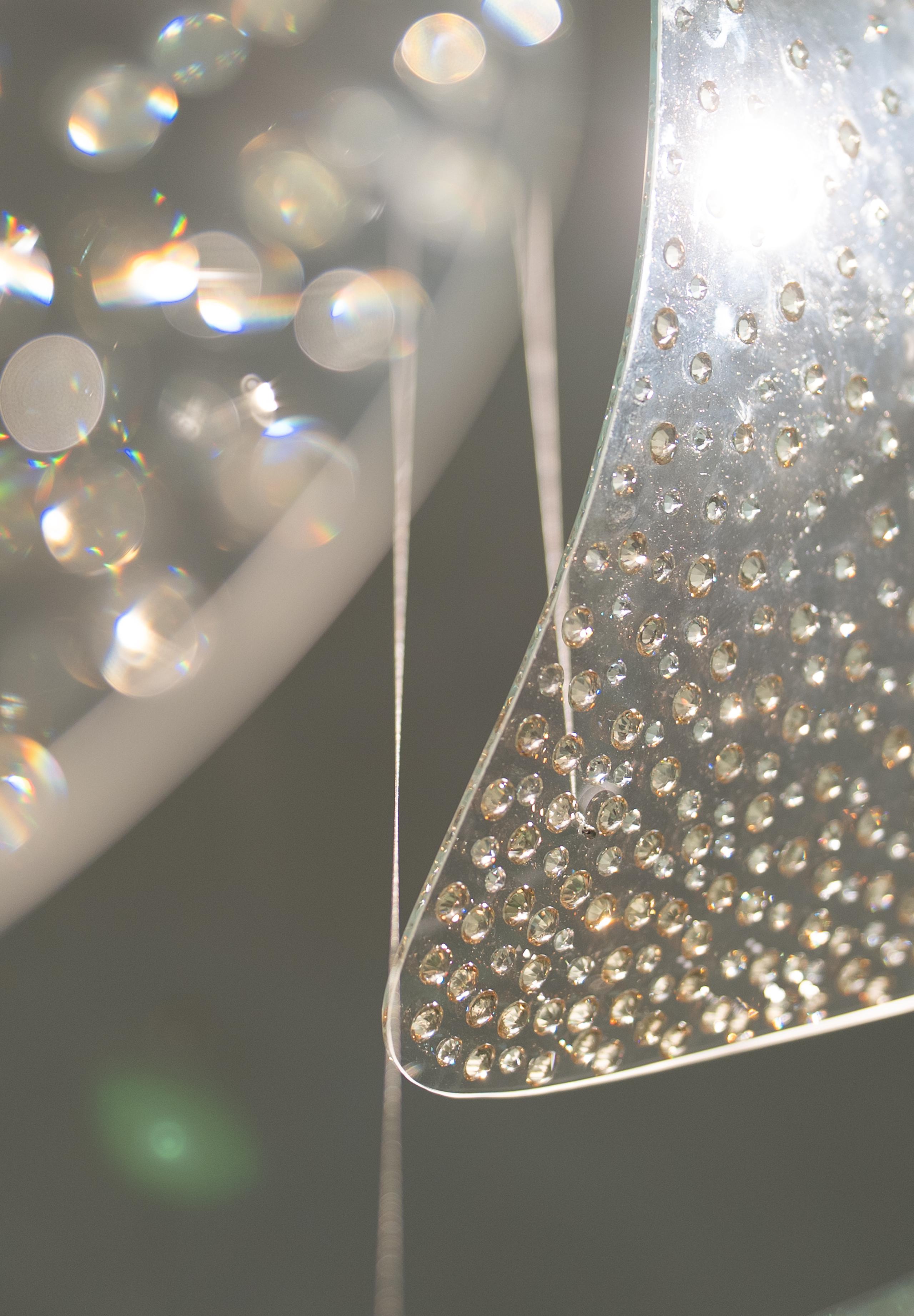 Inspired by shifting landscapes and the boundless beauty of the cosmos, Flux Celestial blends dynamic crystal forms with an ethereal elegance. Softened, flowing shapes echo the fluidity of celestial bodies, while shimmering glass chatons in delicate hues create a radiant play of light. With each glimmer and reflection, this collection evokes a sense of weightlessness and wonder.