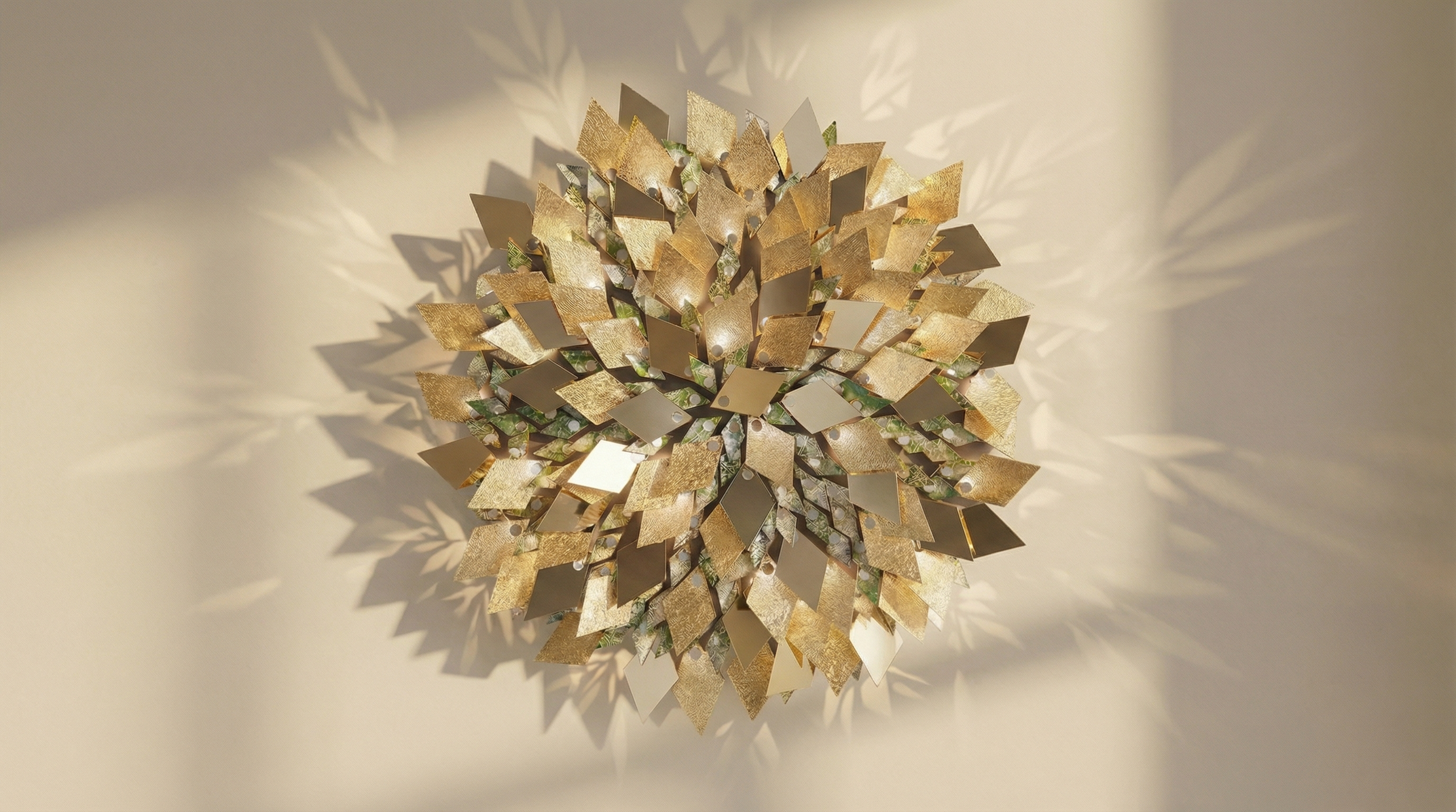 Mandala of Light, designed by Petr Vacek, is a modern interpretation of the traditional mandala. Seen up close, some elements are perfectly polished and reflective. Others bear traces of irregularity and imperfection. Only by stepping back, by embracing the whole, that its true beauty unfolds.