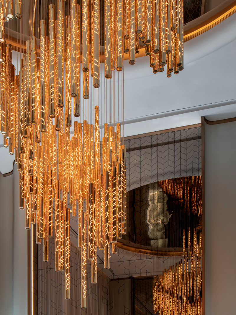 BRANCHY combines flawless design with emerging technologies to create exciting installations that are the ultimate artistic focal point for your space. Fitted together with metal bindings, the range of sleek crystal tubes are finished in transparent, golden, silver and rose gold nanocoating together with sandblasted elements that expertly disperse the light.