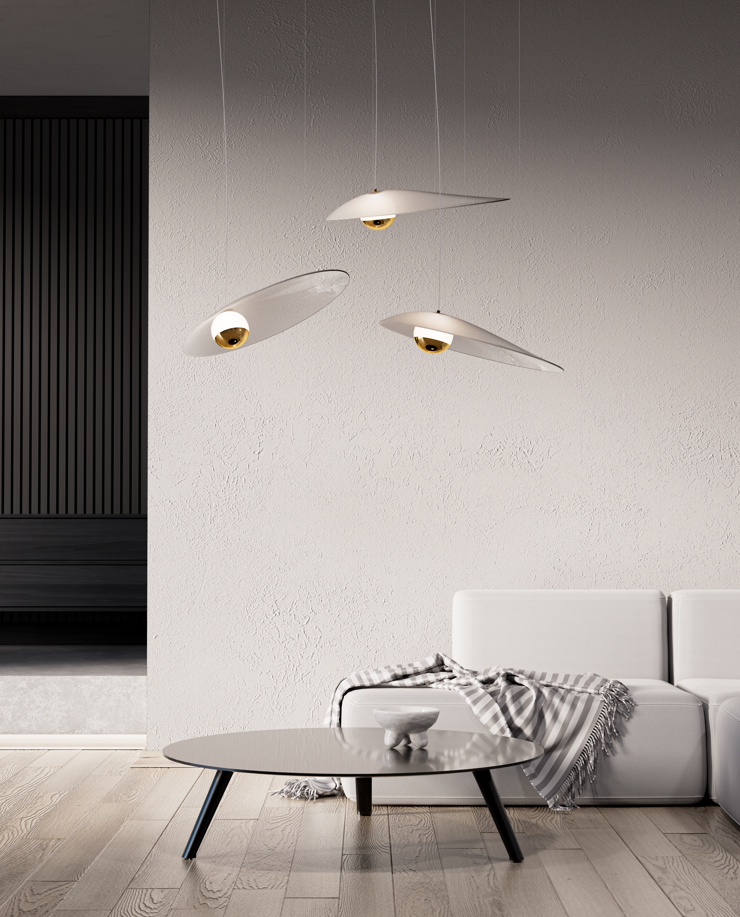 Inspired by the timeless elegance of jewellery, Charm celebrates the power of detail – form, proportion, and finish – each element carefully refined to perfection. At first glance, the nanocoated glass sphere appears simple and pure. But hidden within lies a second, glowing core. When illuminated, this inner sphere reveals itself, as light passes through the outer layer and transforms the entire form into something unexpected and beautiful. Just as jewellery once expressed one’s identity, lighting today shapes the character of a space.
