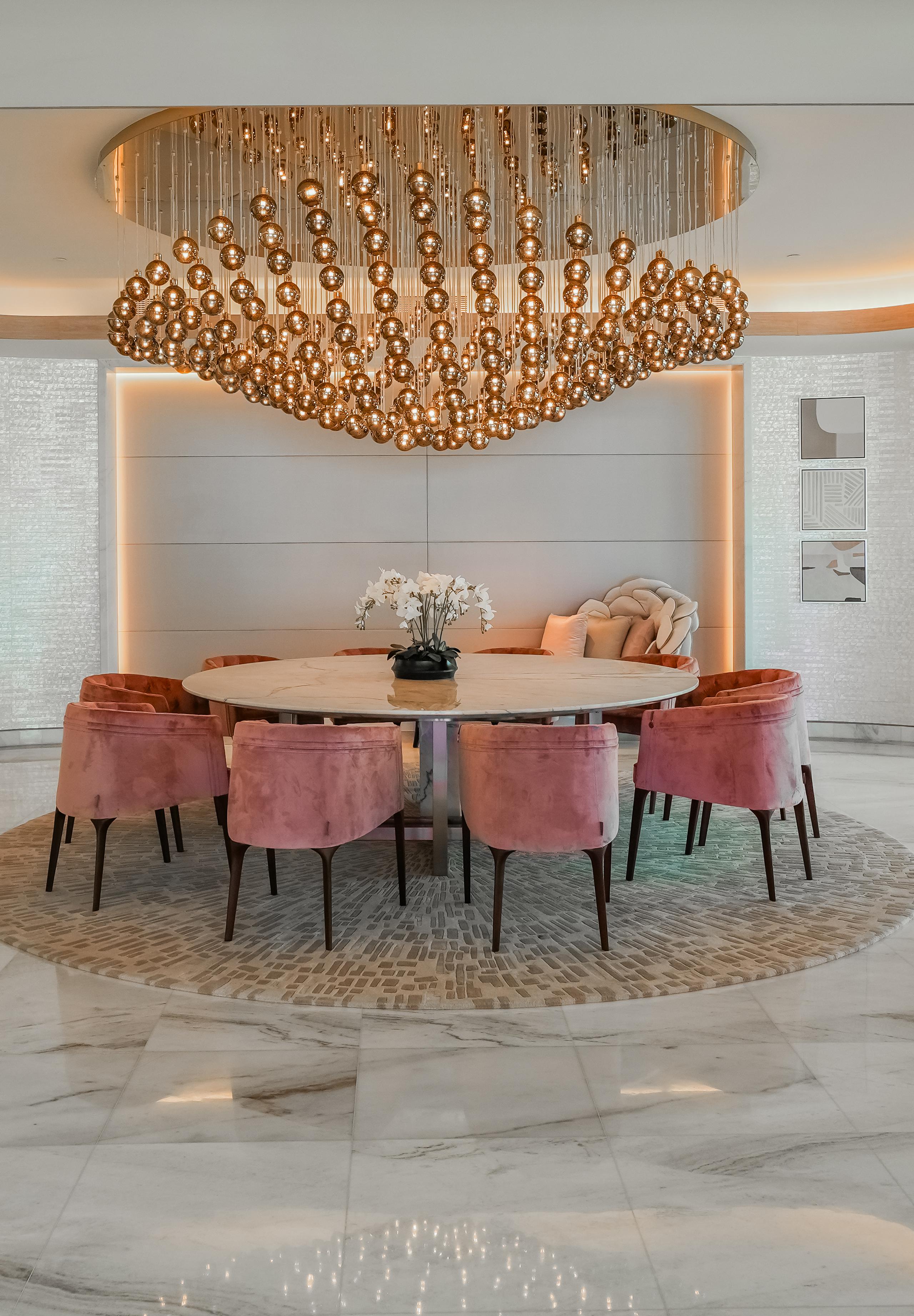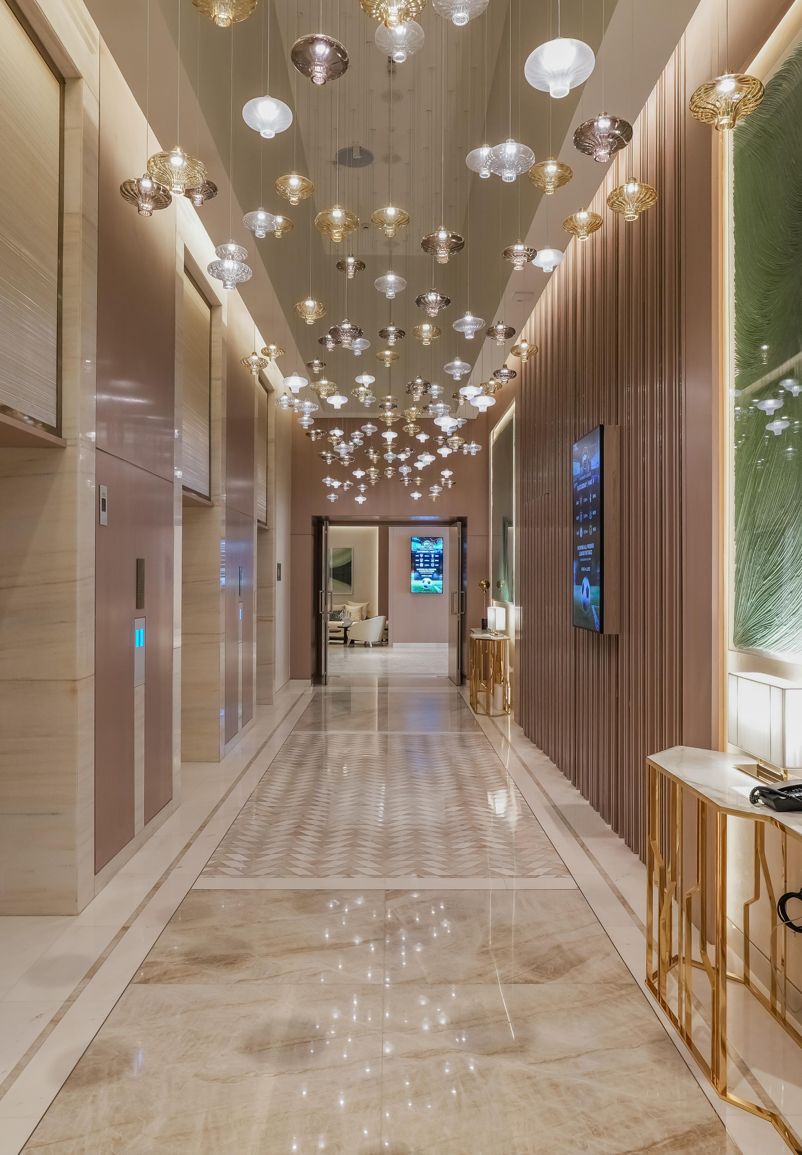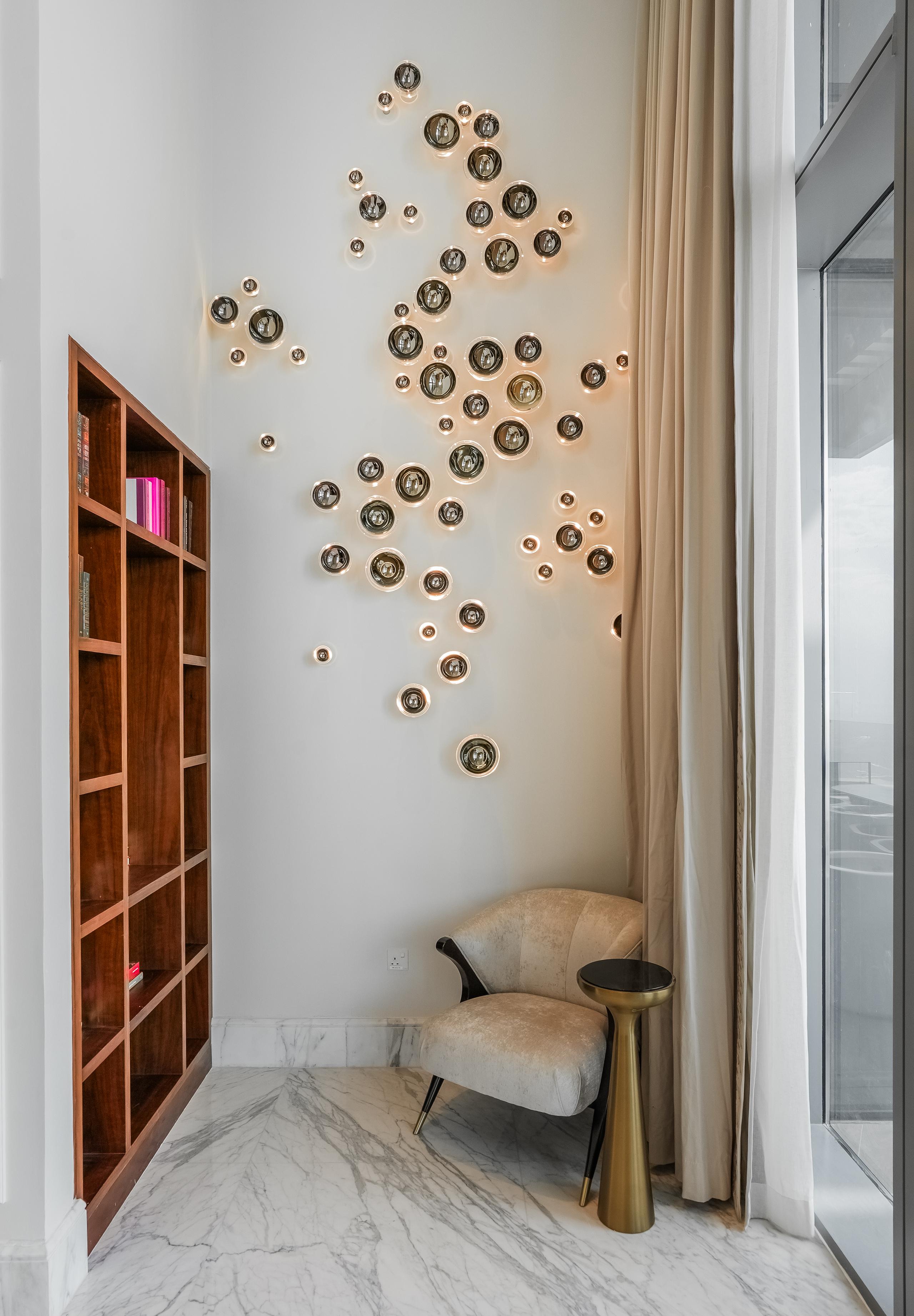 Sans Souci’s in-house design team created eighteen lighting installations for FIVE LUXE. From the twelve-meter chandelier and a glass wall composition in the lobby to specific lighting in individual apartments. Each one features its unique theme, thus, all the lighting needed to match the atmosphere and design of the rooms. Sans Souci created a comprehensive selection of custom chandeliers and installations designed to underline the visual style of the hotel perfectly.