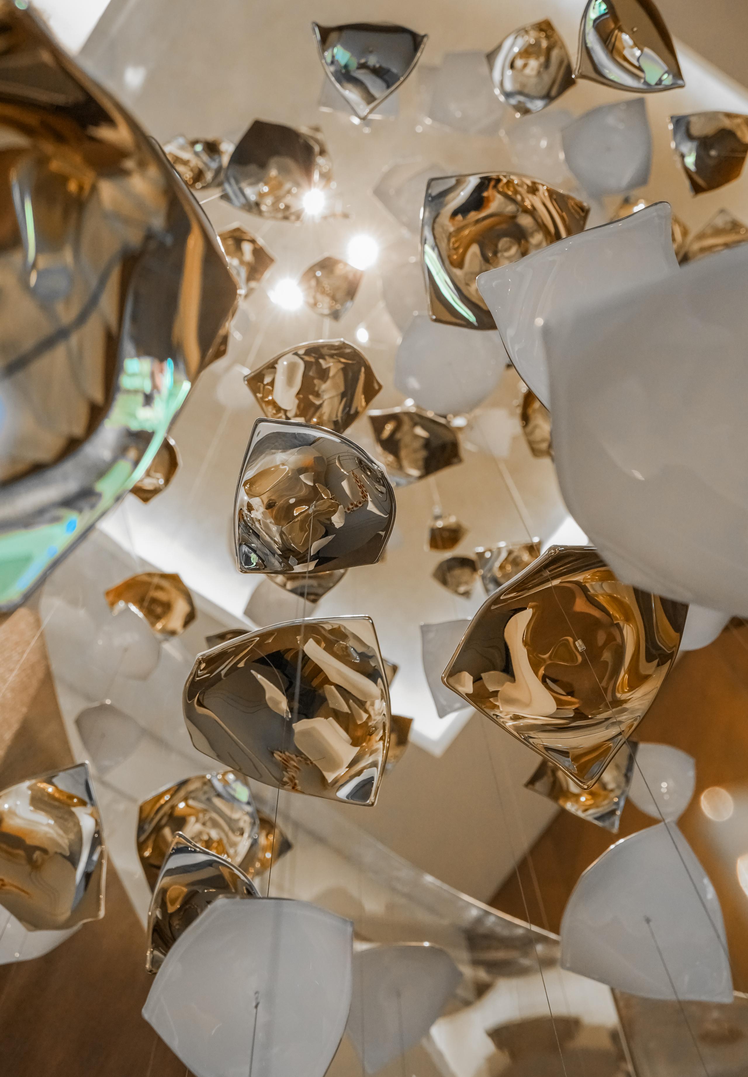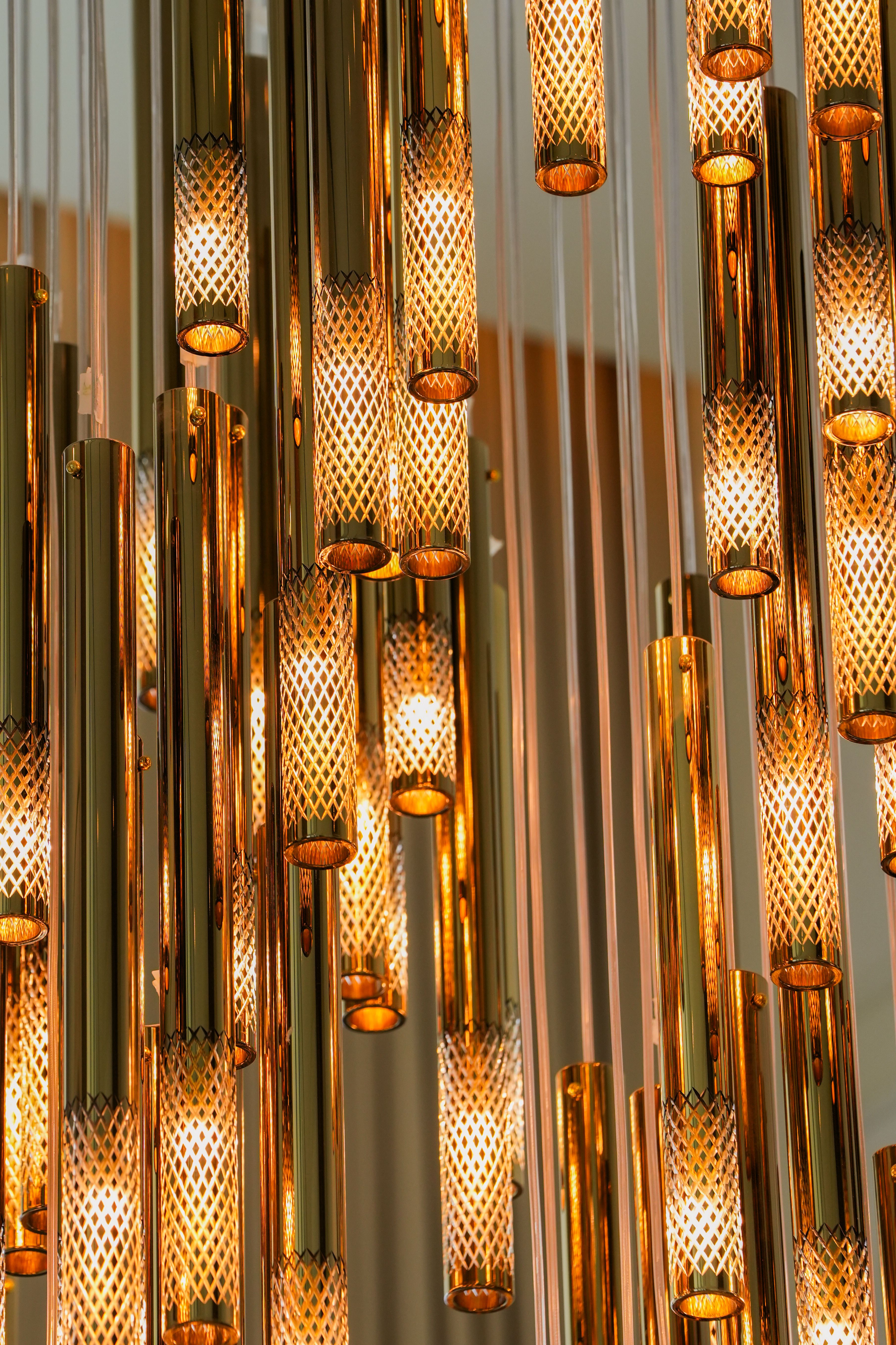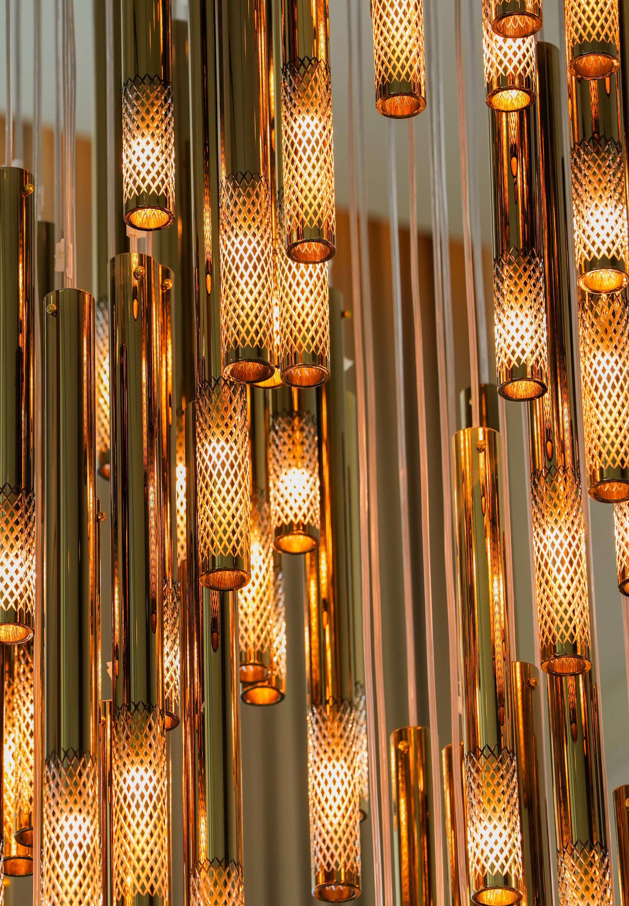 BRANCHY combines flawless design with emerging technologies to create exciting installations that are the ultimate artistic focal point for your space. Fitted together with metal bindings, the range of sleek crystal tubes are finished in transparent, golden, silver and rose gold nanocoating together with sandblasted elements that expertly disperse the light.