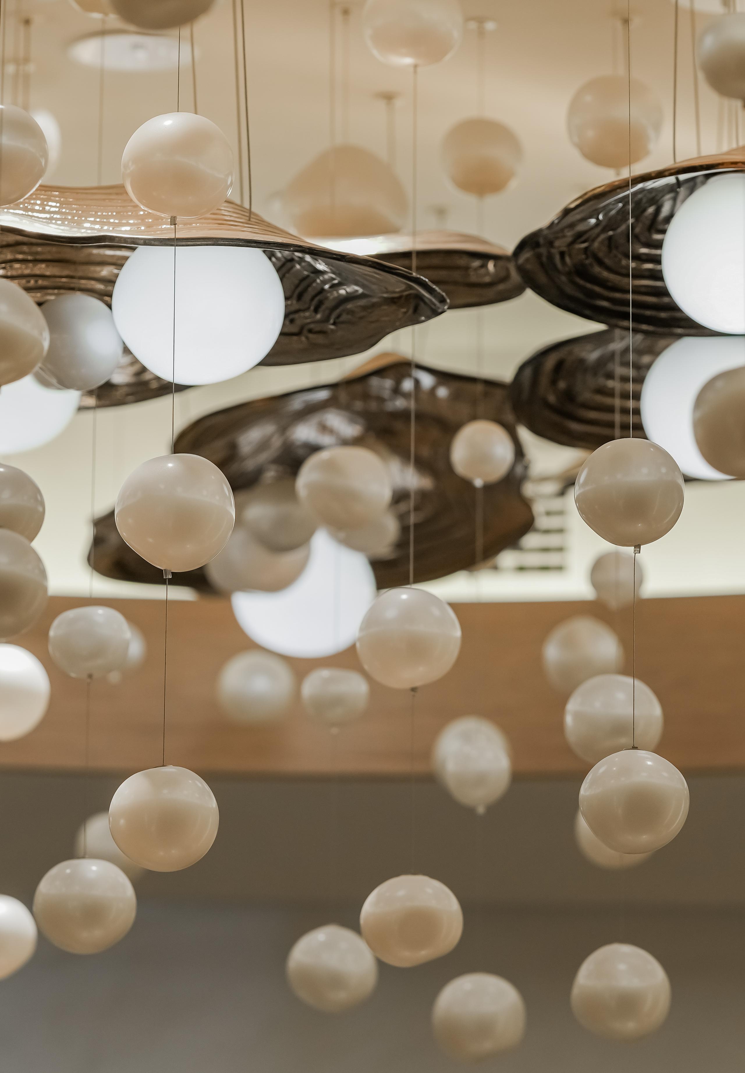 Inspired by the precious pearls hidden within an oyster, the OYSTER collection features fine crystal shells encasing luminous glass pearl. This striking design combines crystal and brass to play with light, using gradient sandblasting to add grace and depth to the pieces.