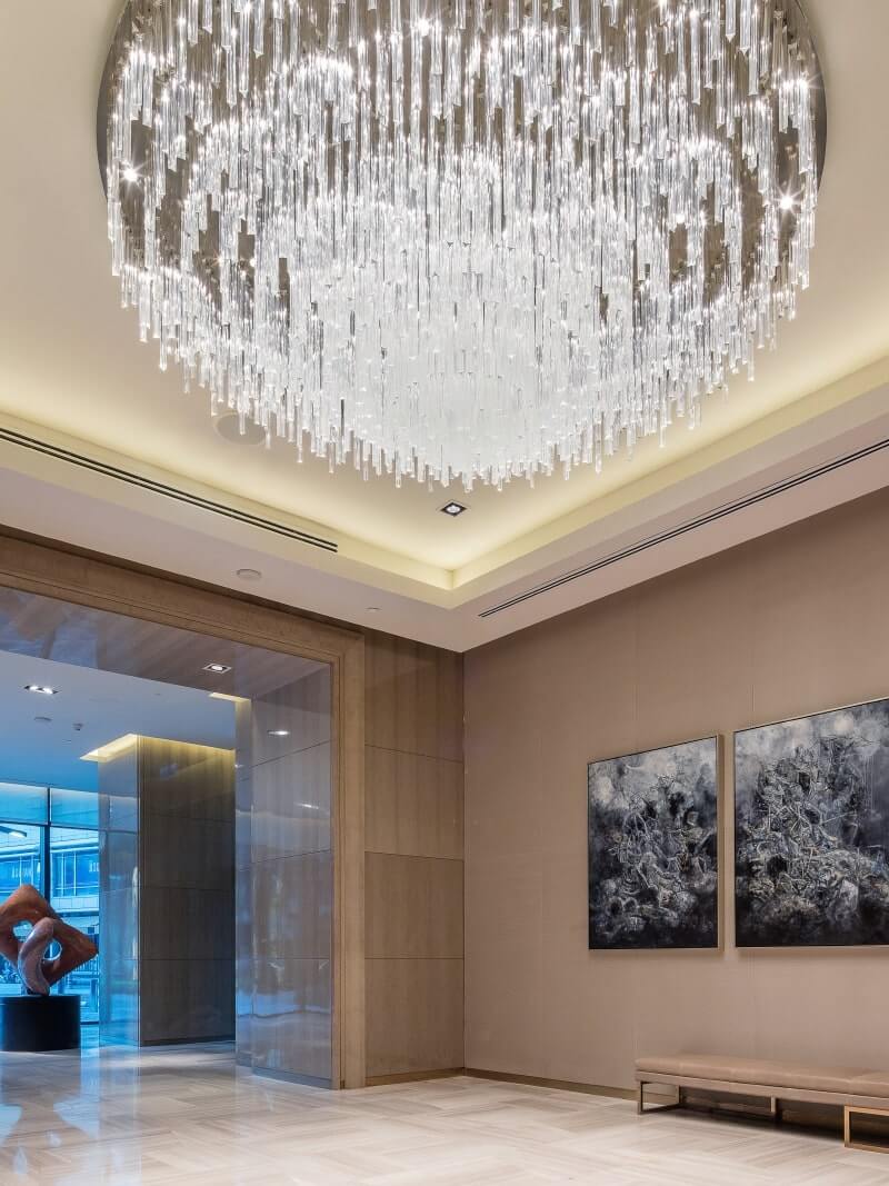 A contemporary reimagining of the classic chandelier for the modernist interior of the Four Seasons Hotel in Kuala Lumpur. Sans Souci created a unique take on the classic installation for this luxury hotel, which embraces the captivating pulse of Malaysia’s capital.