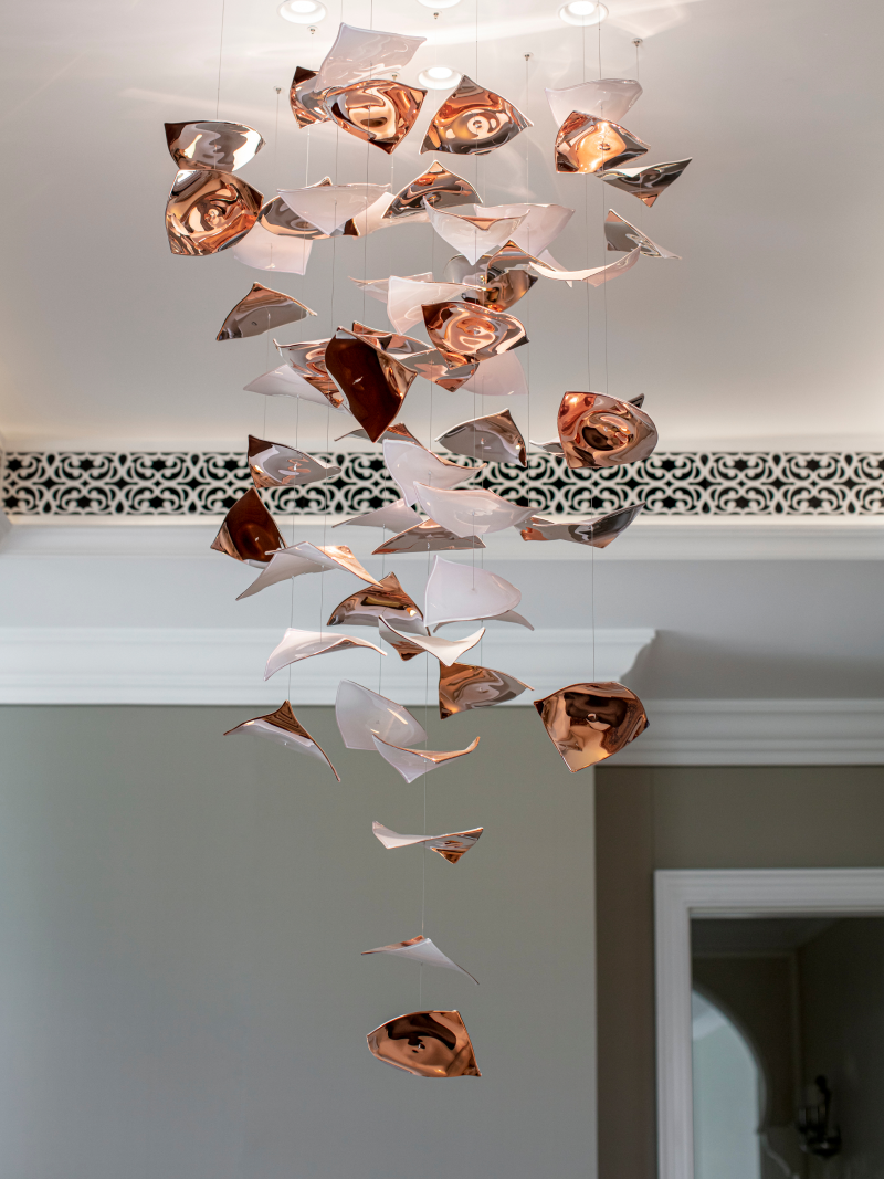 Sans Souci was delighted to work with HH Interior Designers and Sybille de Margerie Studios on these exquisite interiors. We created bespoke installations, drawing inspiration from many of our best-loved collections including BOWLS, KERCHIEFS, NUGGETS and FLYING LEAVES.