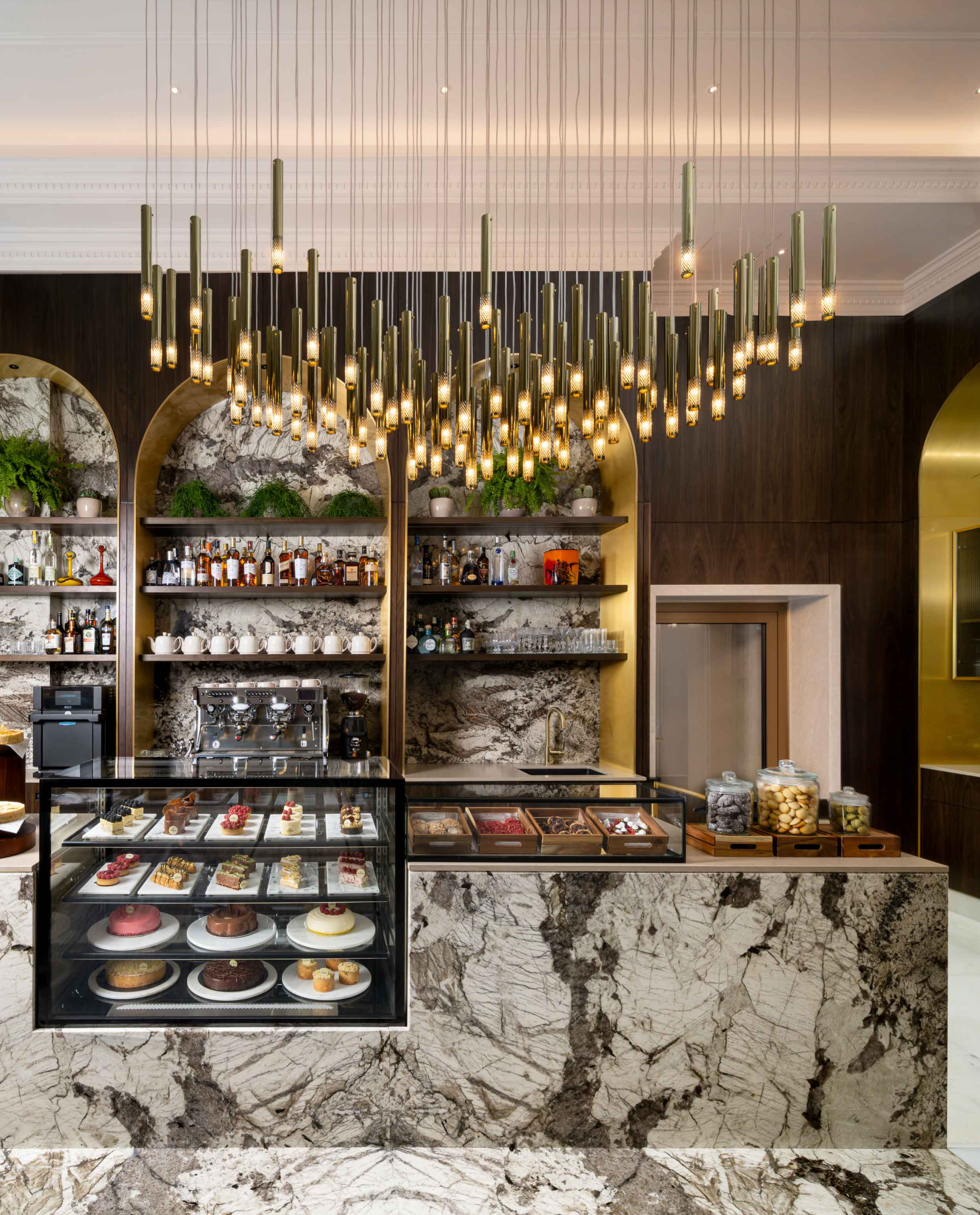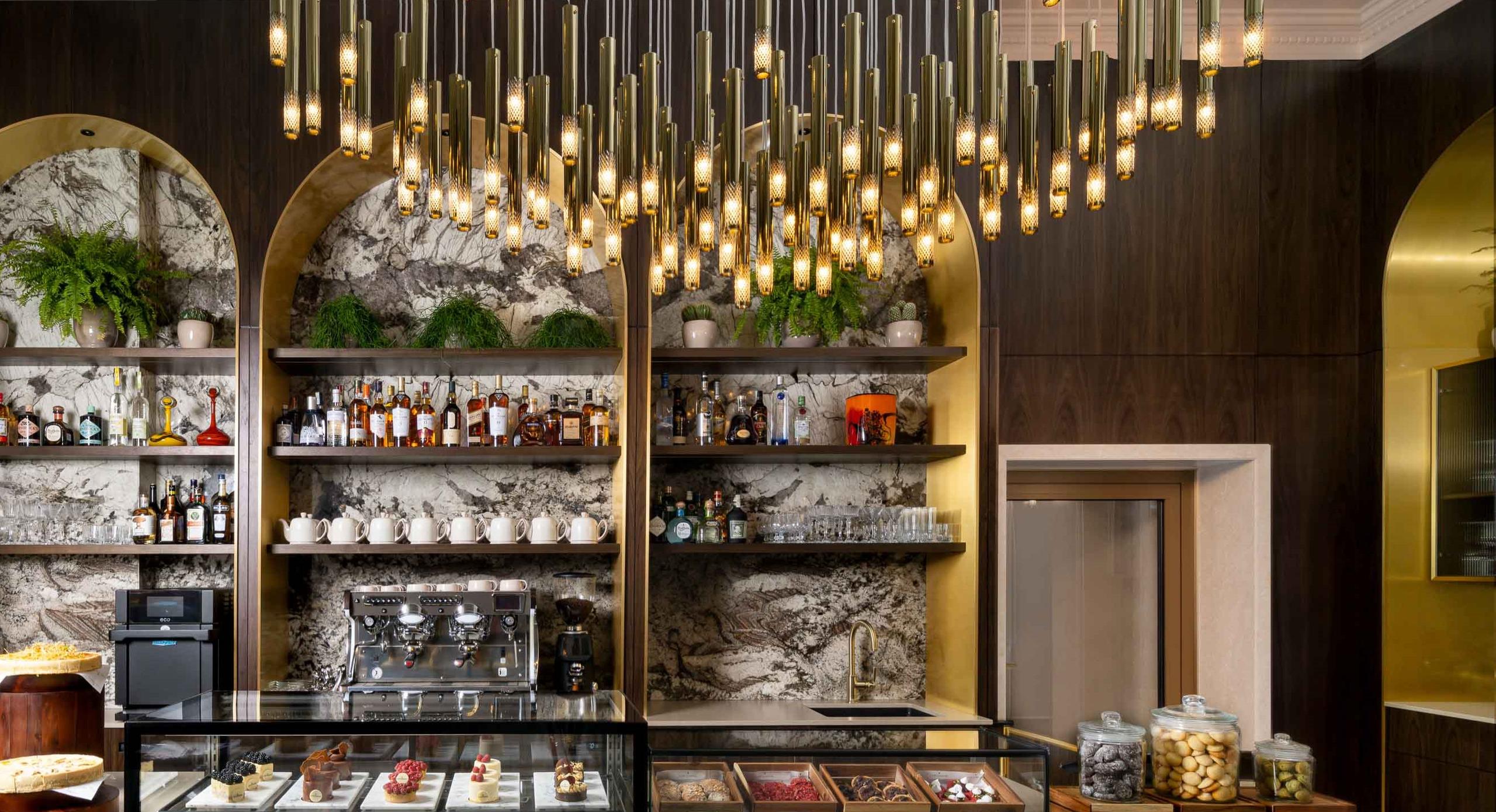 Working from a design prepared by Eliška Luhanová, with the wider interior scheme led by Alexander James Interiors, we provided a tailored lighting solution that enhances the café’s refreshed atmosphere – where Art Deco influences, neoclassical details, and modern elegance come together.