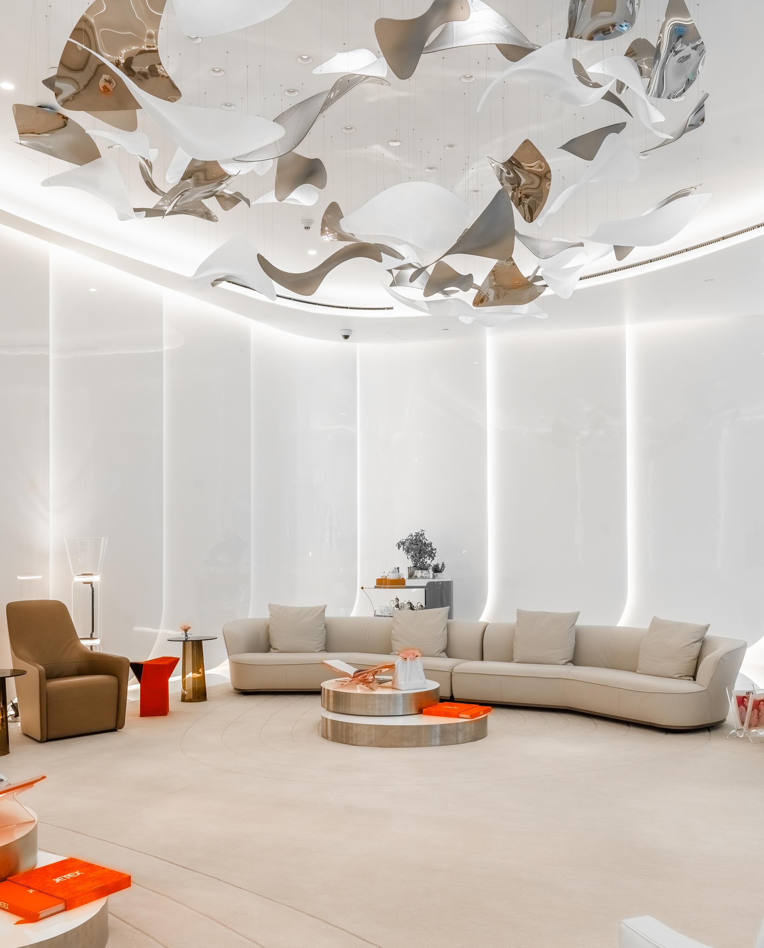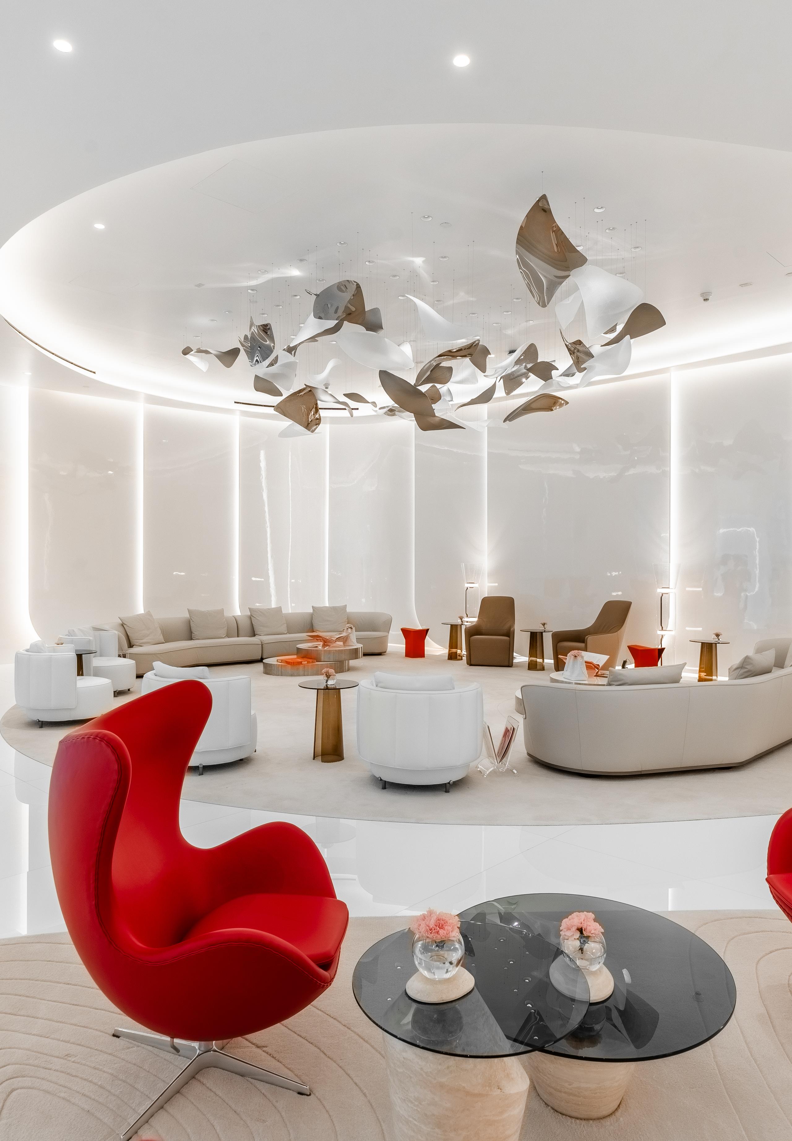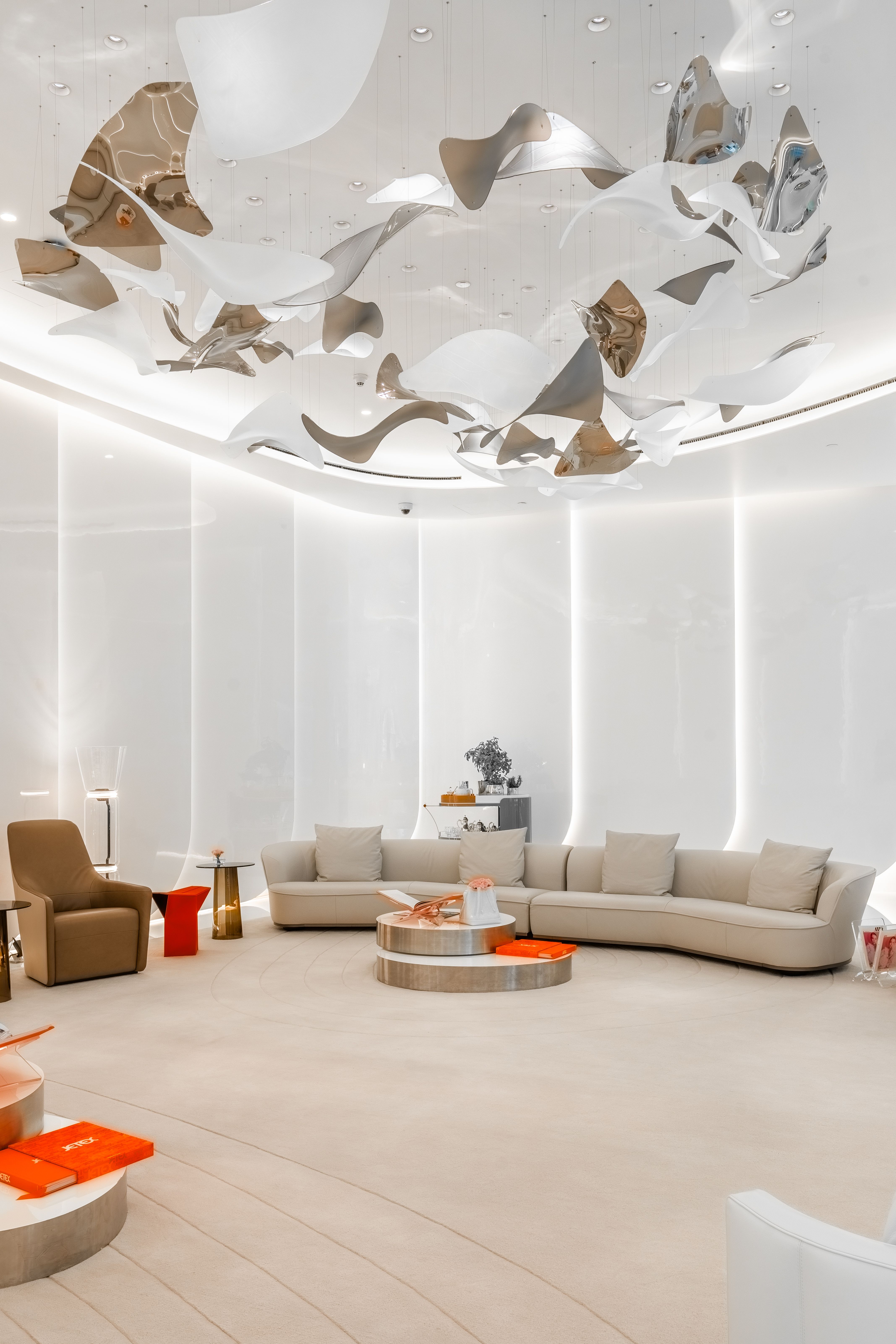 The flowing forms of our Rounded Flux collection align perfectly with the modern interiors, establishing a serene yet luxurious ambience that mirrors the effortless grace of aerodynamic motion. This harmonious interplay between design and architecture enhances the VIP experience for Jetex travellers in Dubai.