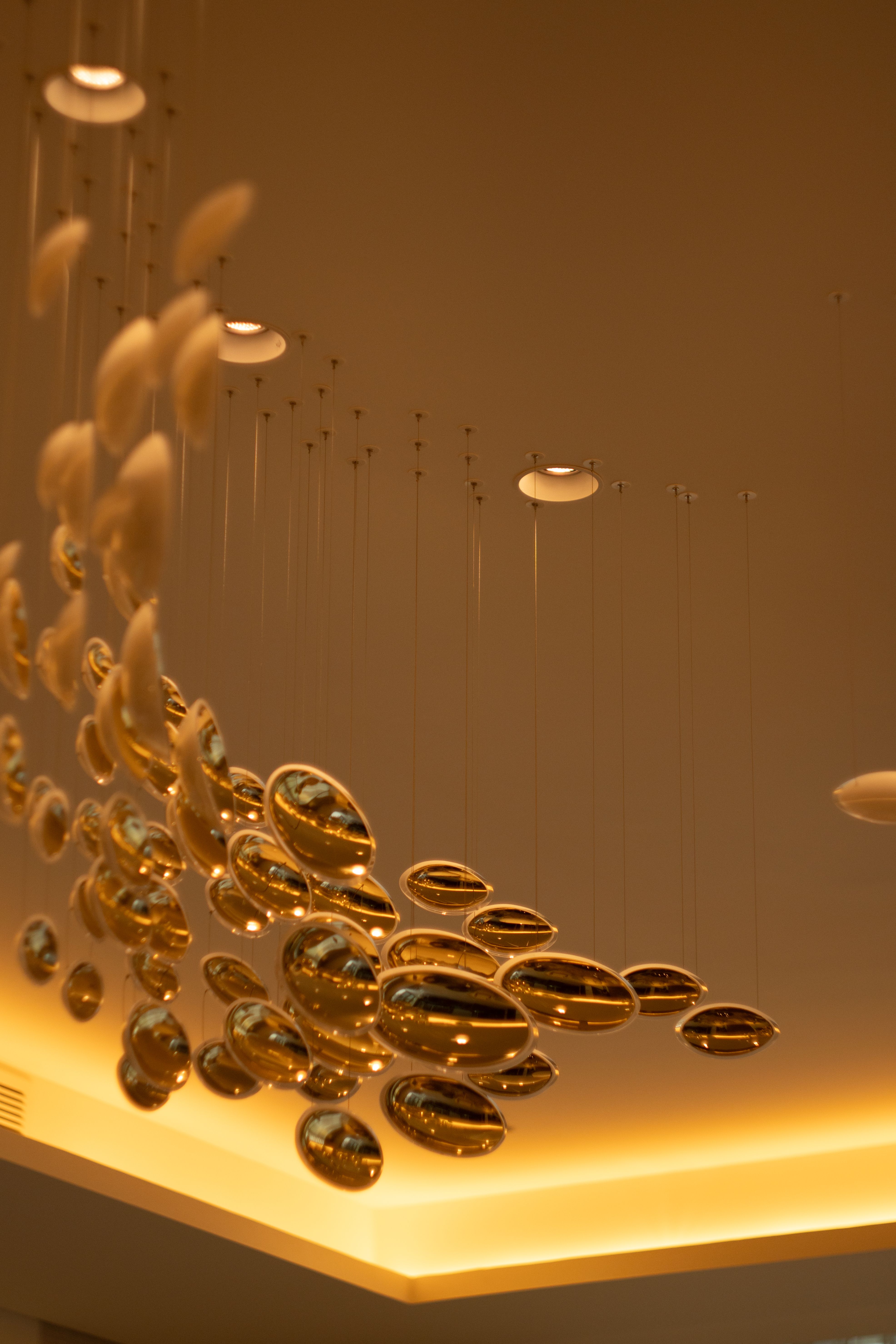Embodying elegance in its purest form, the Bowls collection introduces a sleek, contemporary aesthetic into the space. Each crystal component is crafted with contrasting finishes: one side features a reflective metal nanocoating, while the other is infused with a complementary colour. When suspended in a fluid arrangement, the components create a soft wave of light, offering a refined statement suitable for both residential and commercial interiors.