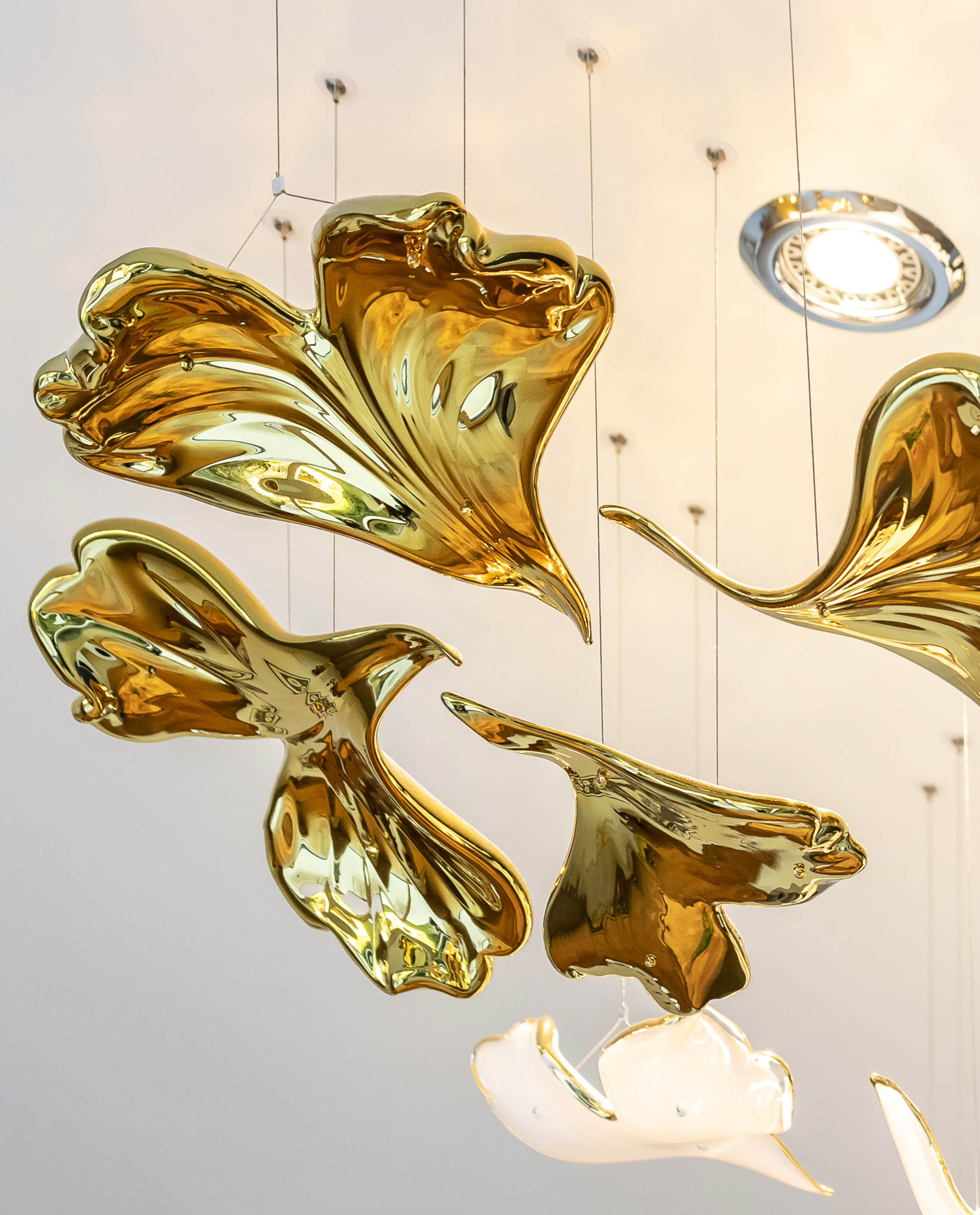 BRANCHY combines flawless design with emerging technologies to create exciting installations that are the ultimate artistic focal point for your space. Fitted together with metal bindings, the range of sleek crystal tubes are finished in transparent, golden, silver and rose gold nanocoating together with sandblasted elements that expertly disperse the light.