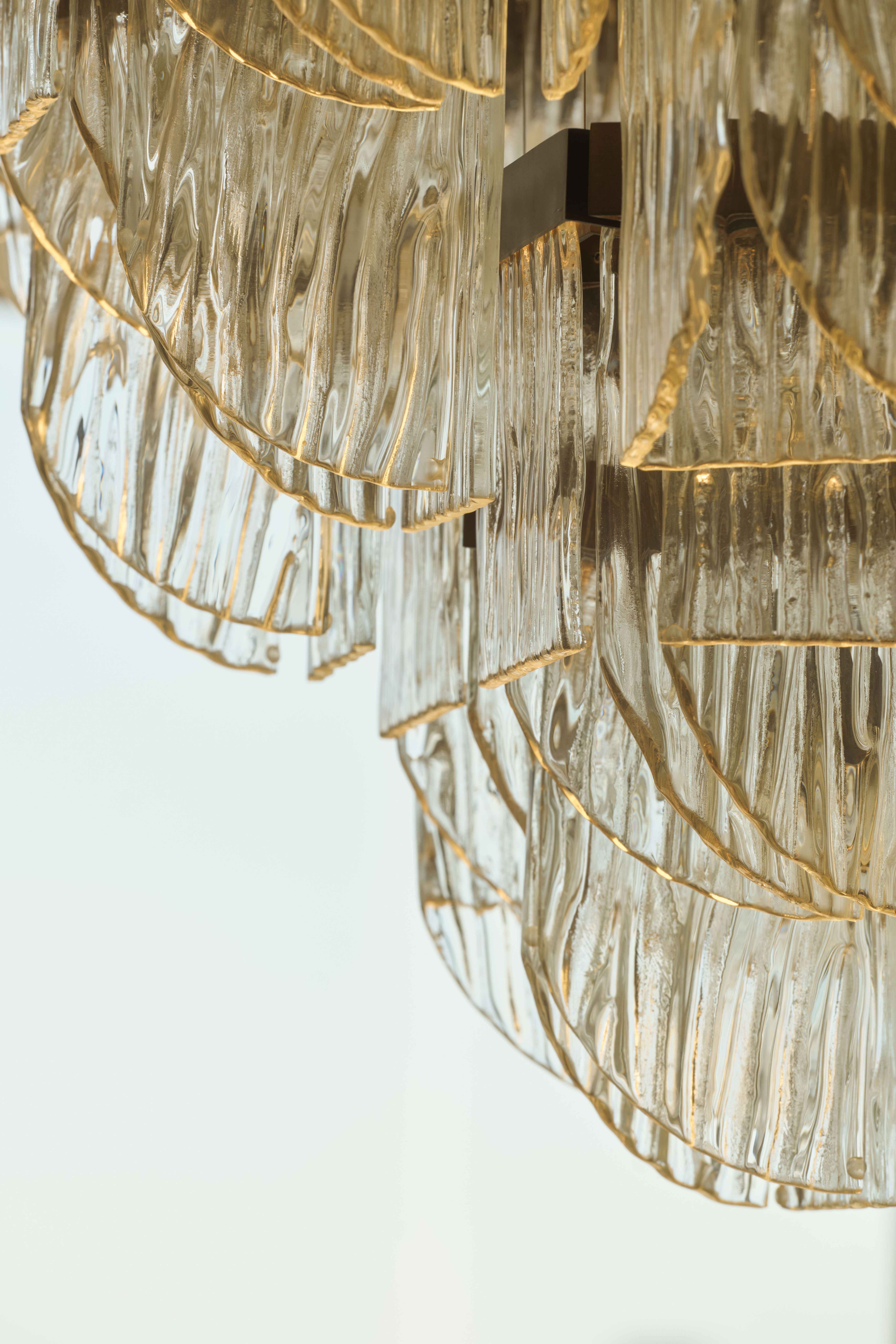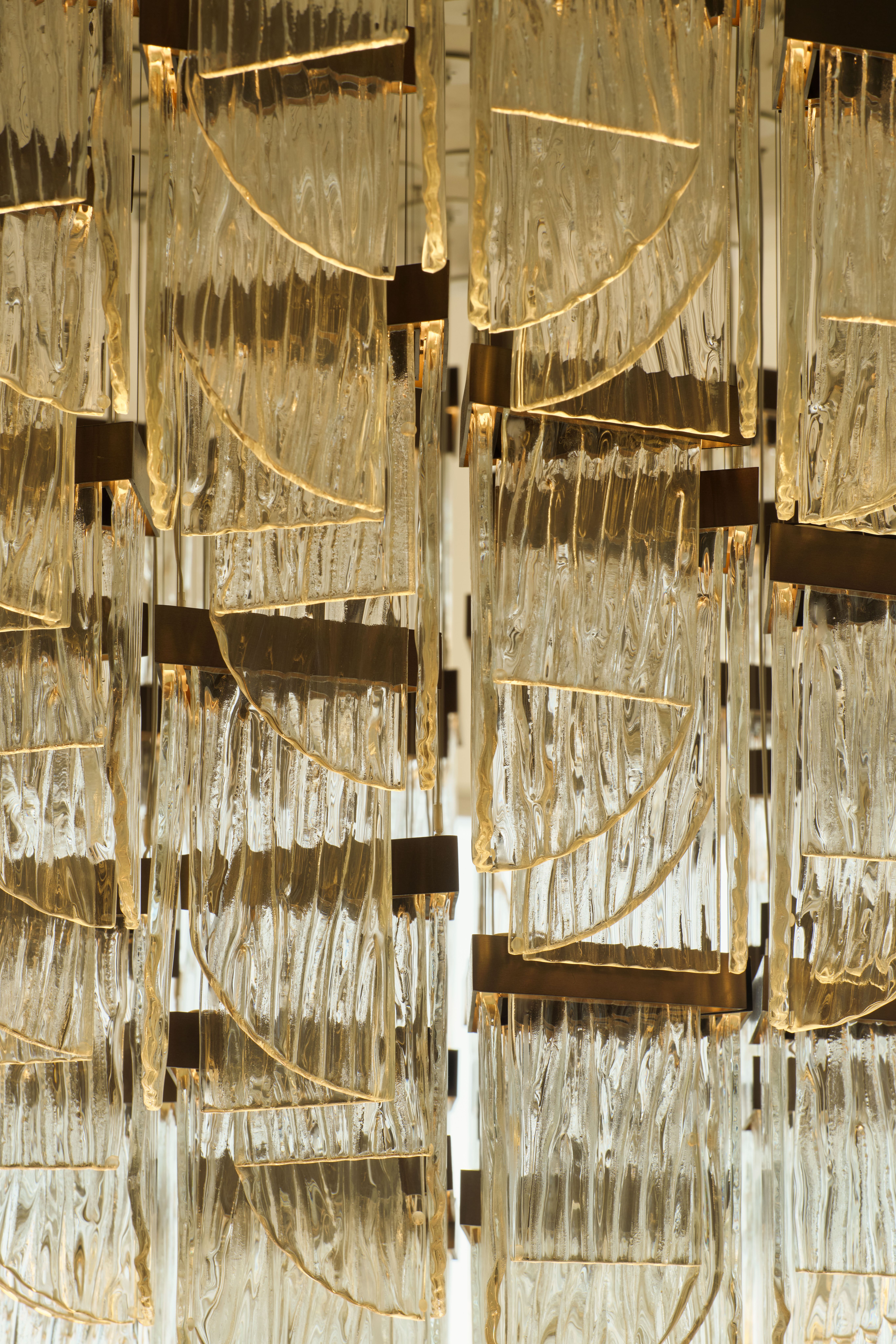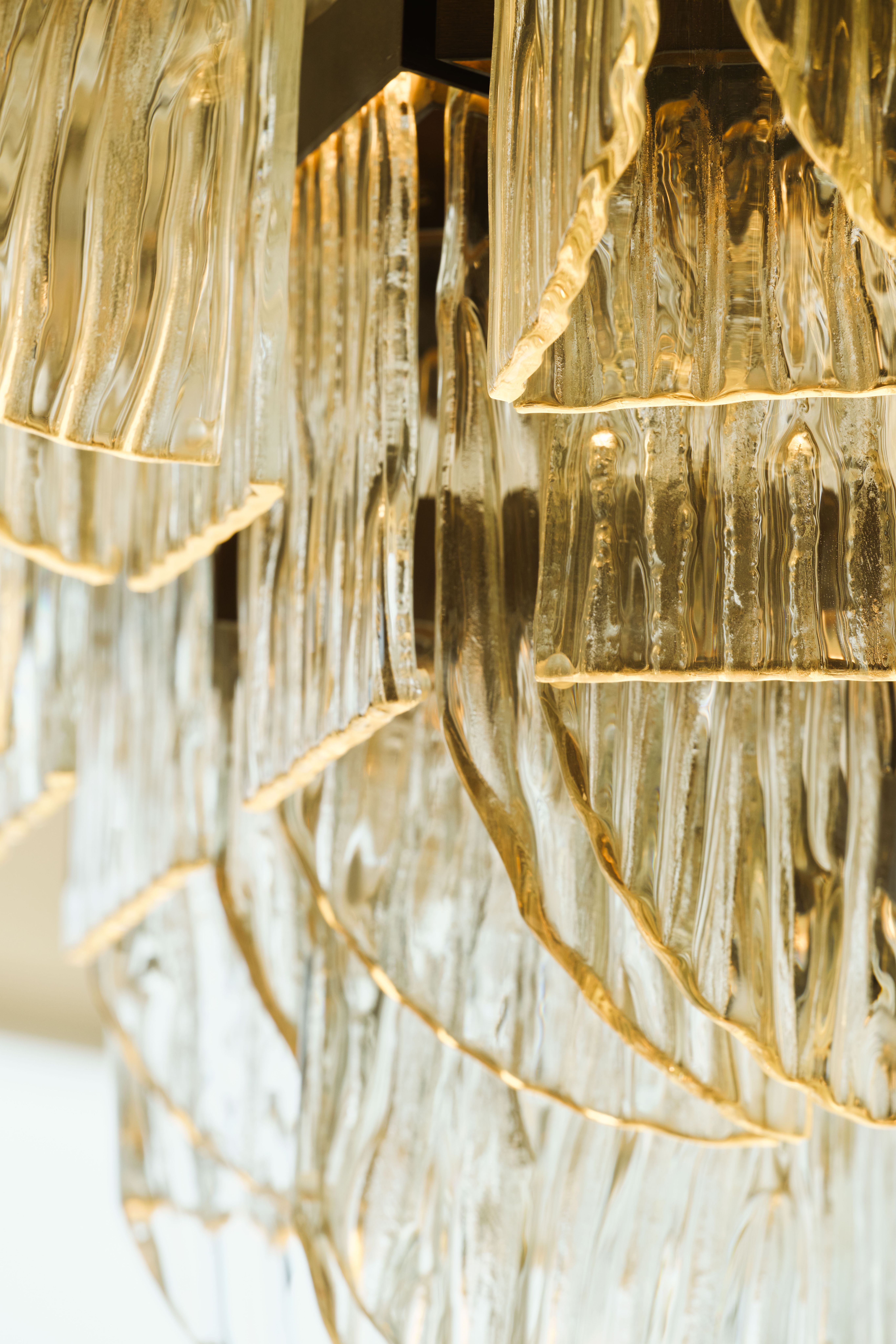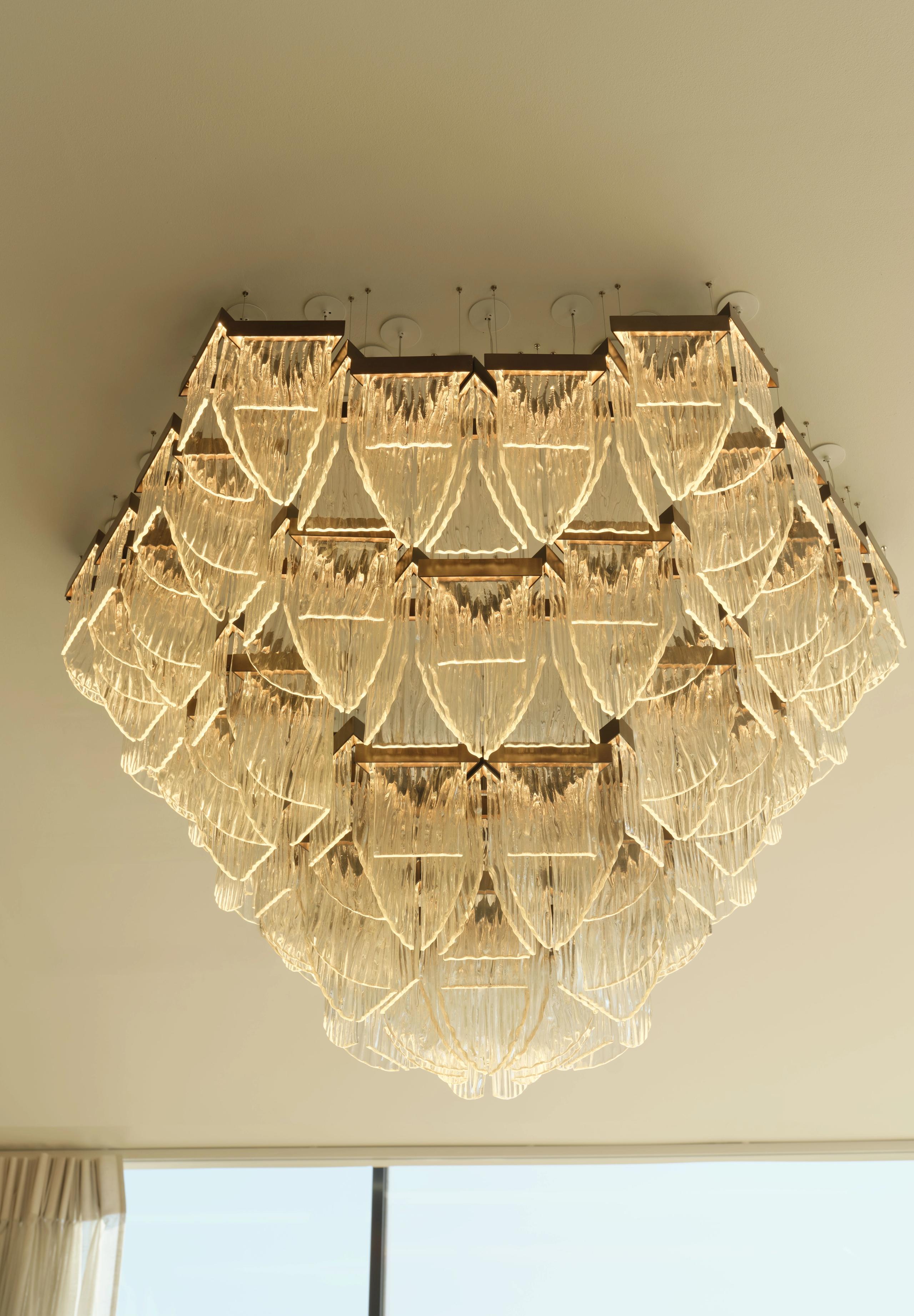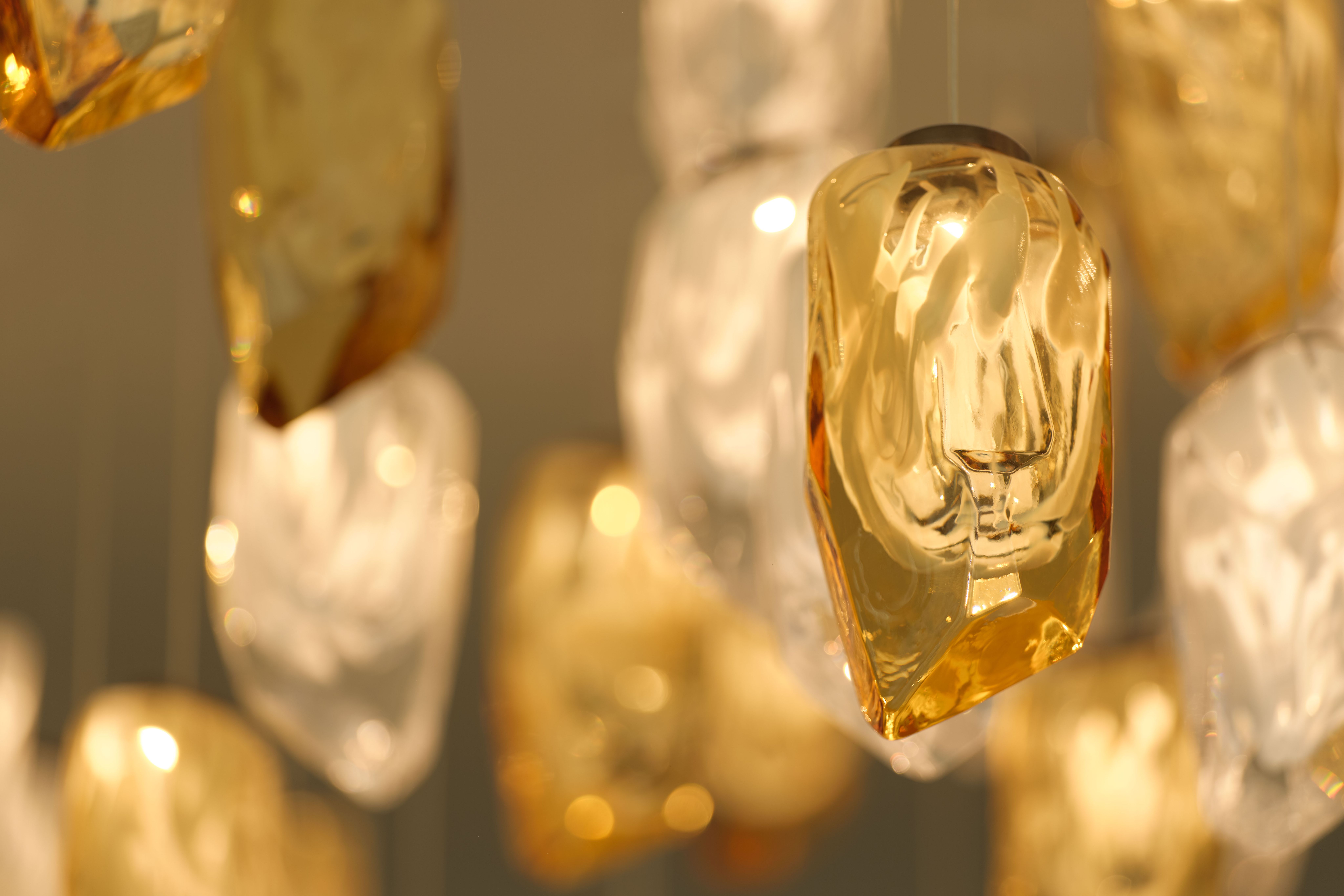 The brief called for contemporary lighting with a strong sense of texture – pieces that would complement the architectural clarity of the space while adding artistic depth. For this project, we developed two signature chandeliers, each tailored to its unique setting yet unified by a refined design language.