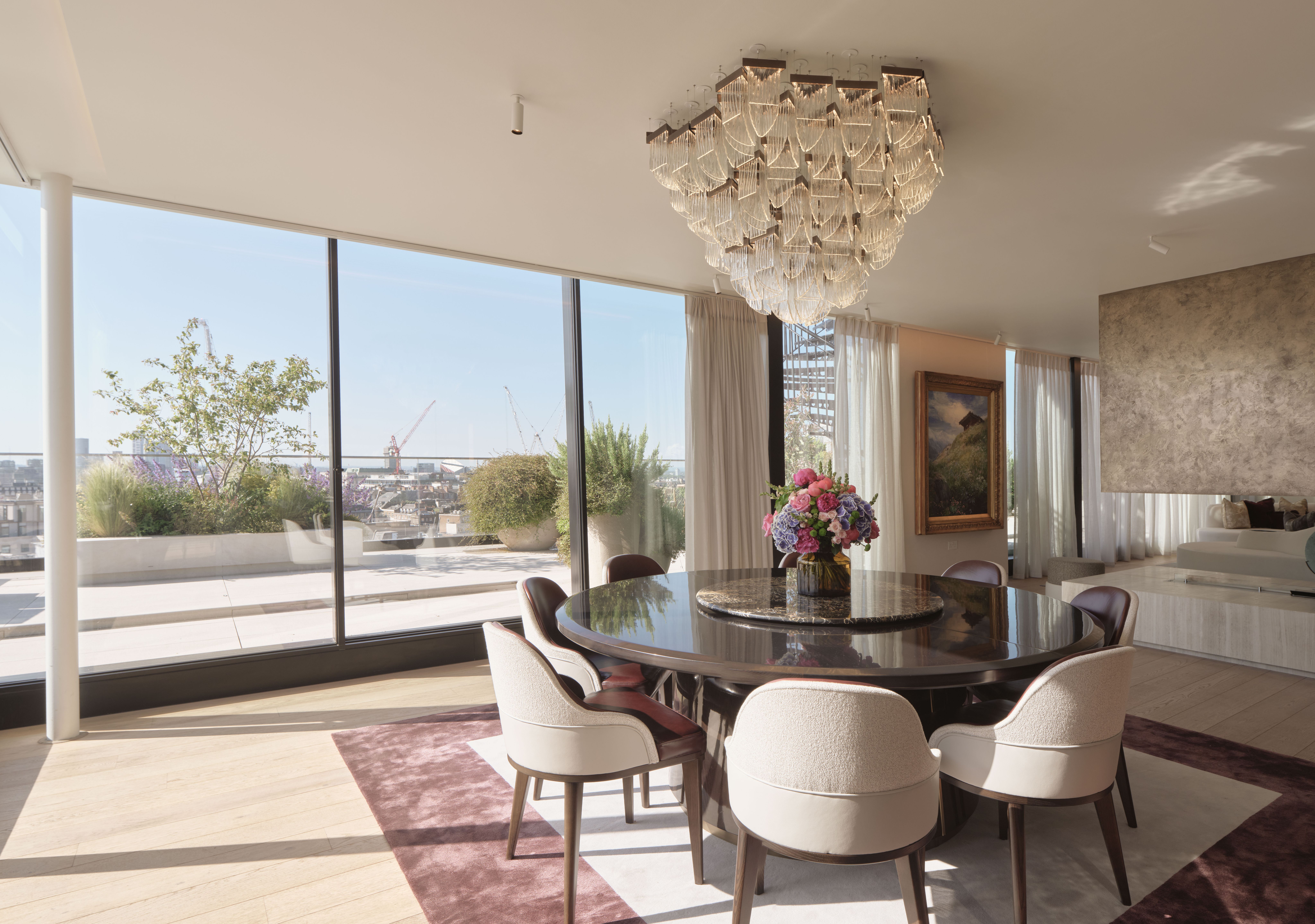 Set high above Hanover Square, with commanding views across London’s skyline, this one-of-a-kind penthouse is a sanctuary of calm and refinement – wrapped in glass, bathed in natural light, and brought to life through masterful design.