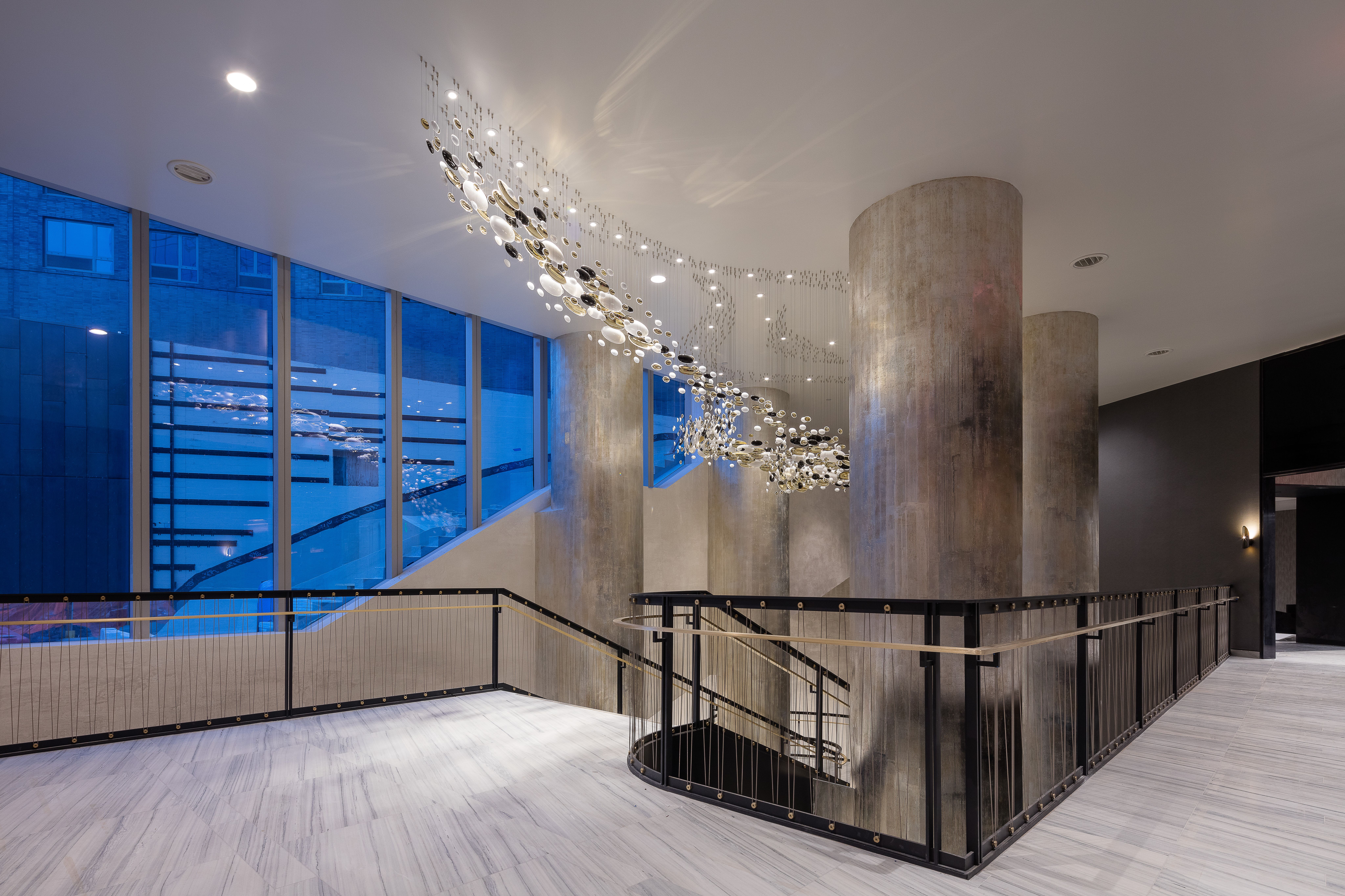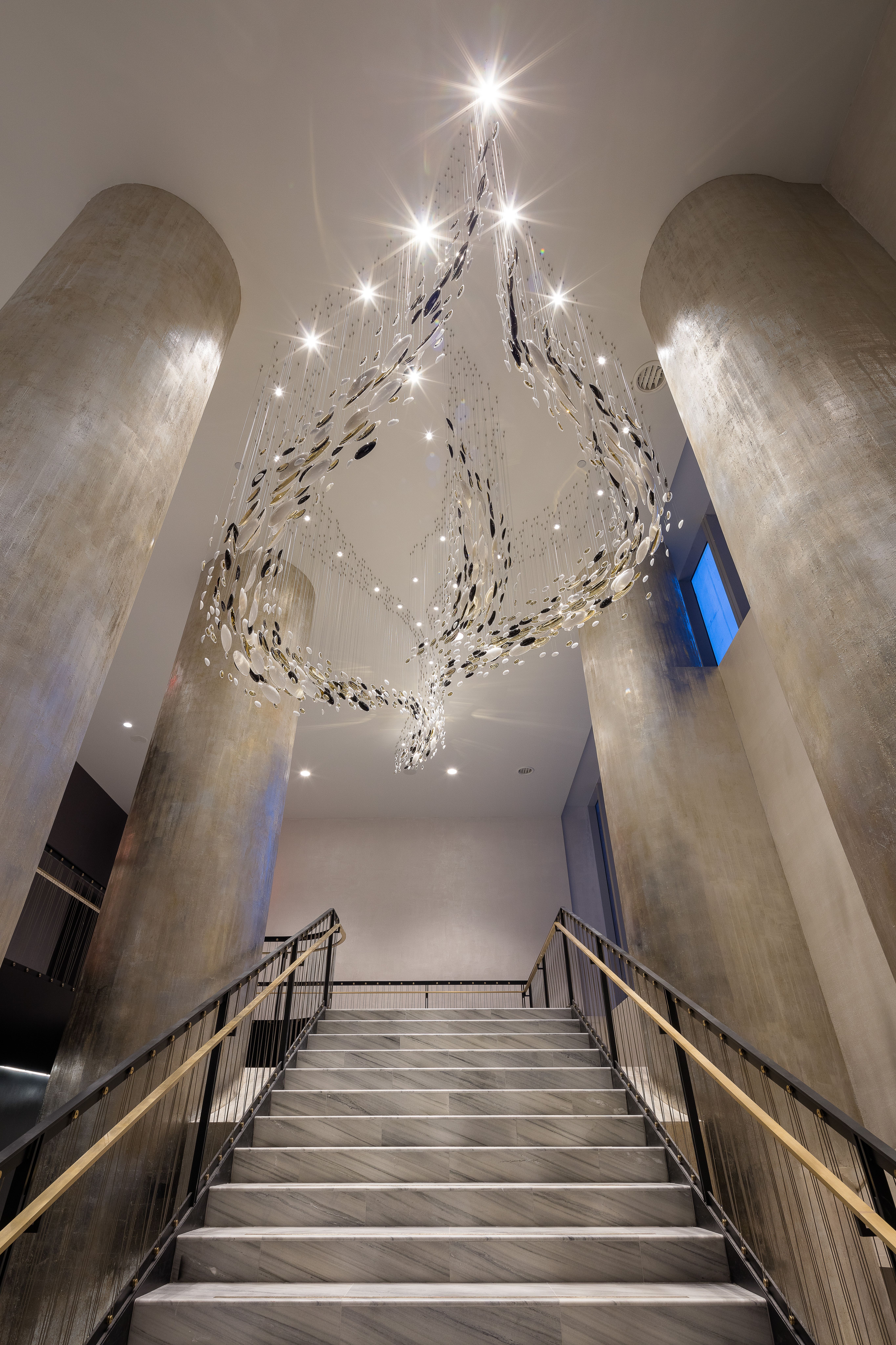 This light sculpture was specially created by Sans Souci to glide through the middle of the building’s staircase, inviting you to step inside this luxury residential tower and explore. Inspired by our BOWLS collection components play with light around this contemporary space.