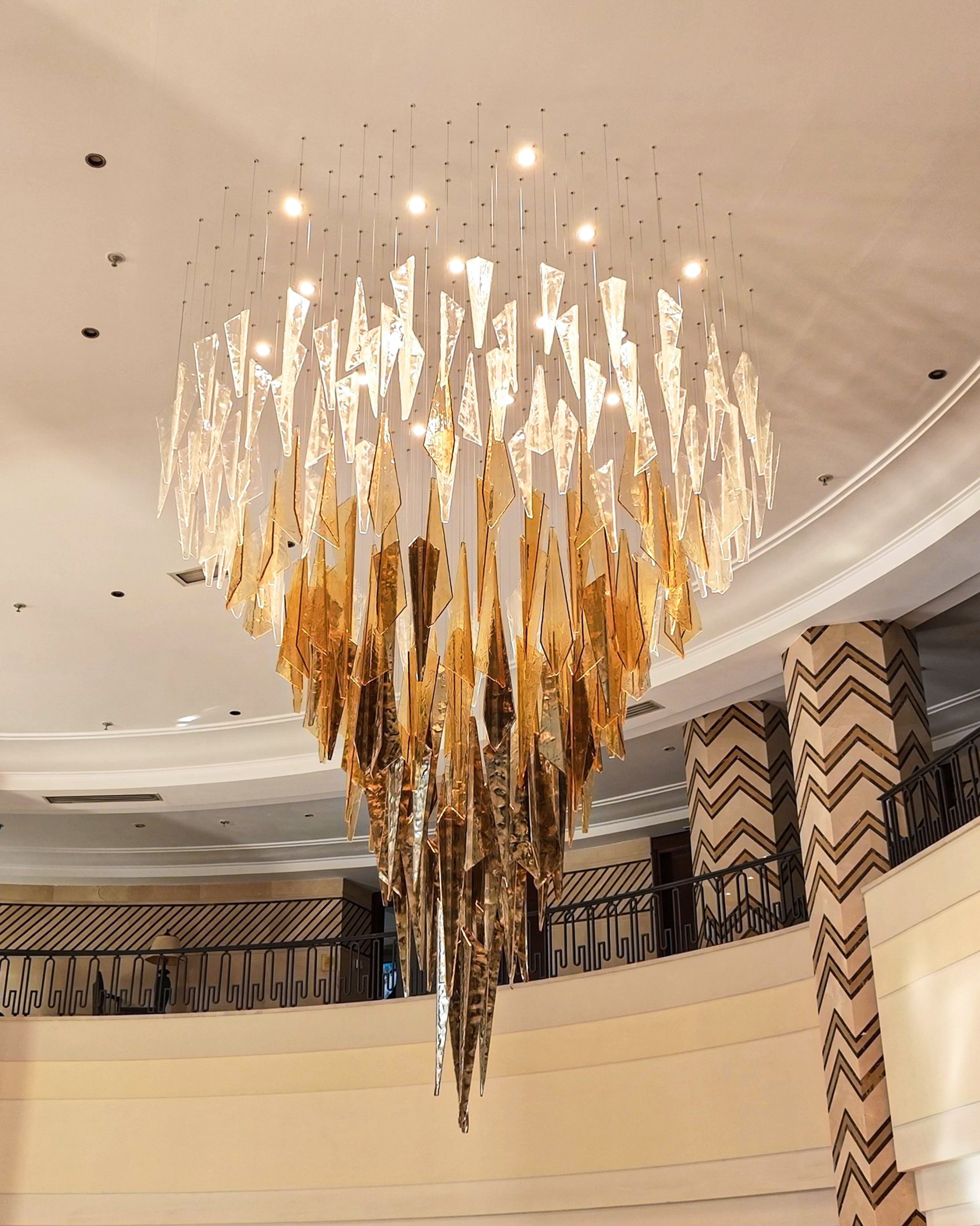 The final installation, a bespoke Vice Versa chandelier, now stands as the centrepiece of Oran Royal Hotel’s reception – a stunning interplay of light and texture that captivates and inspires.