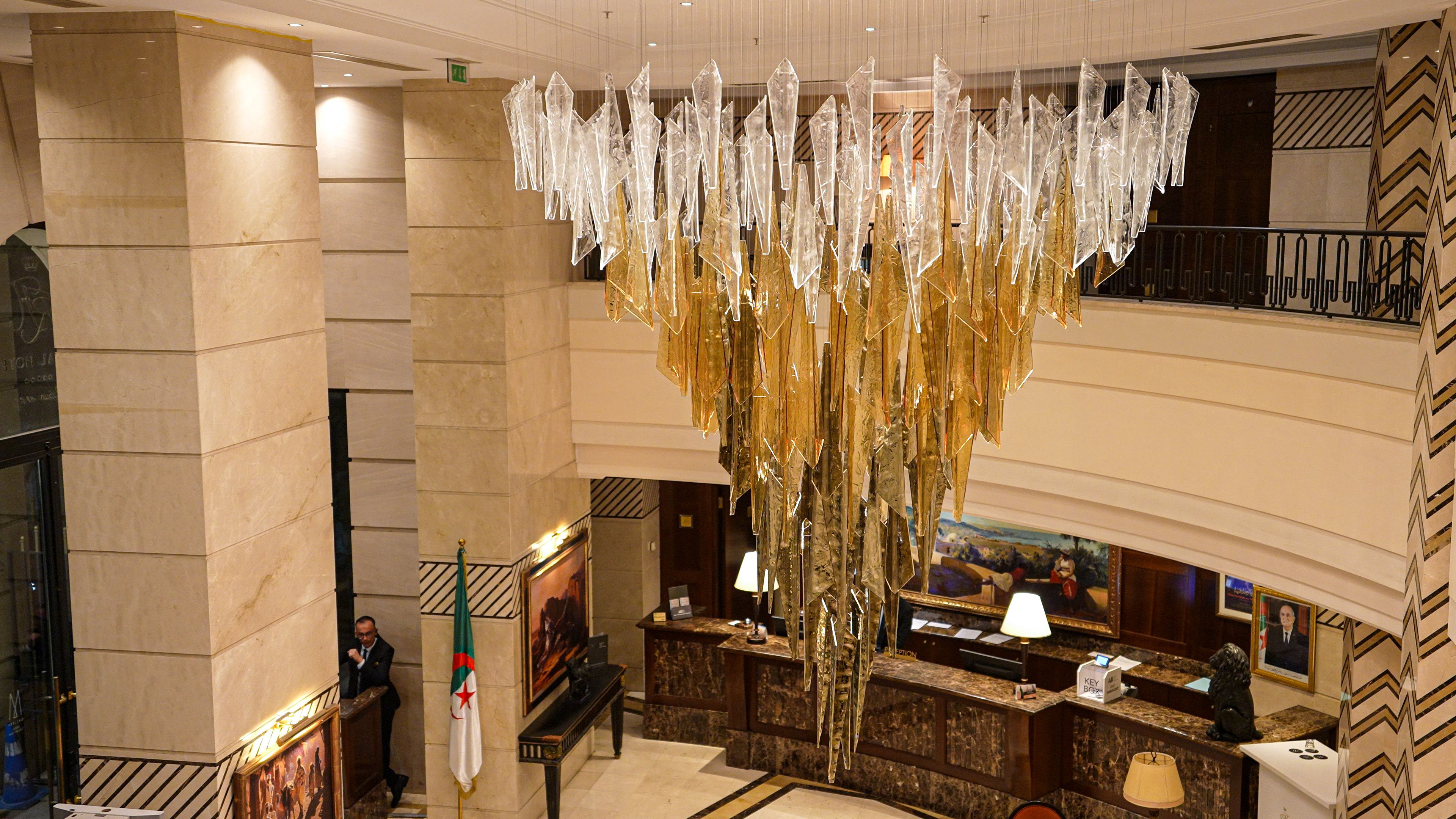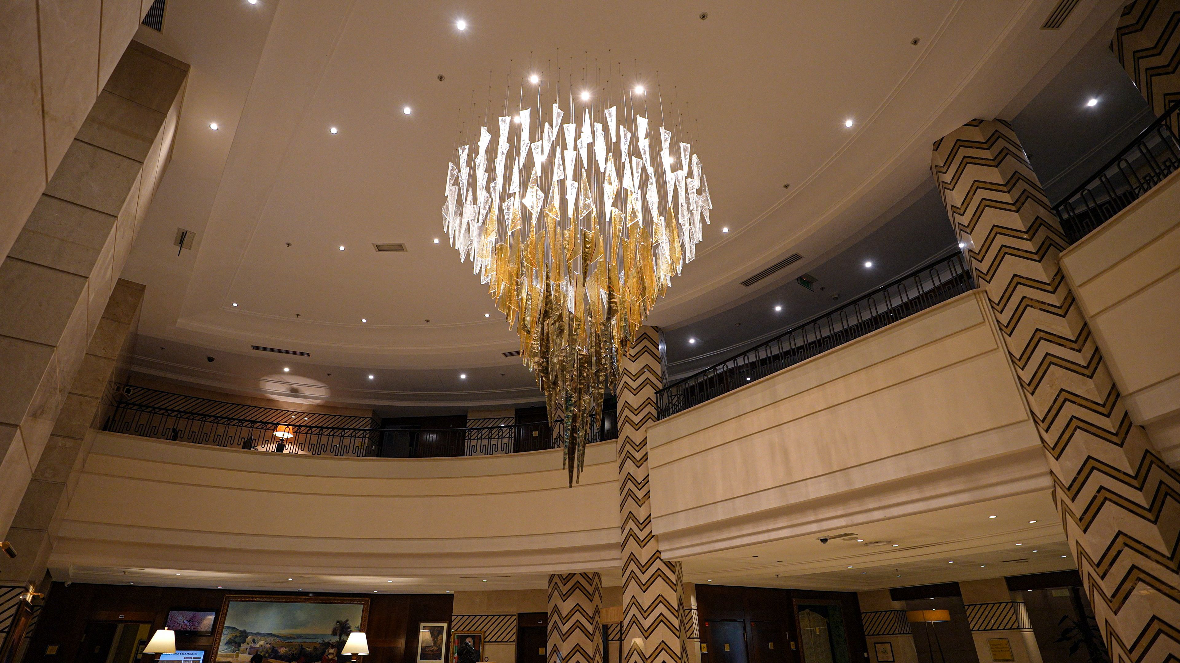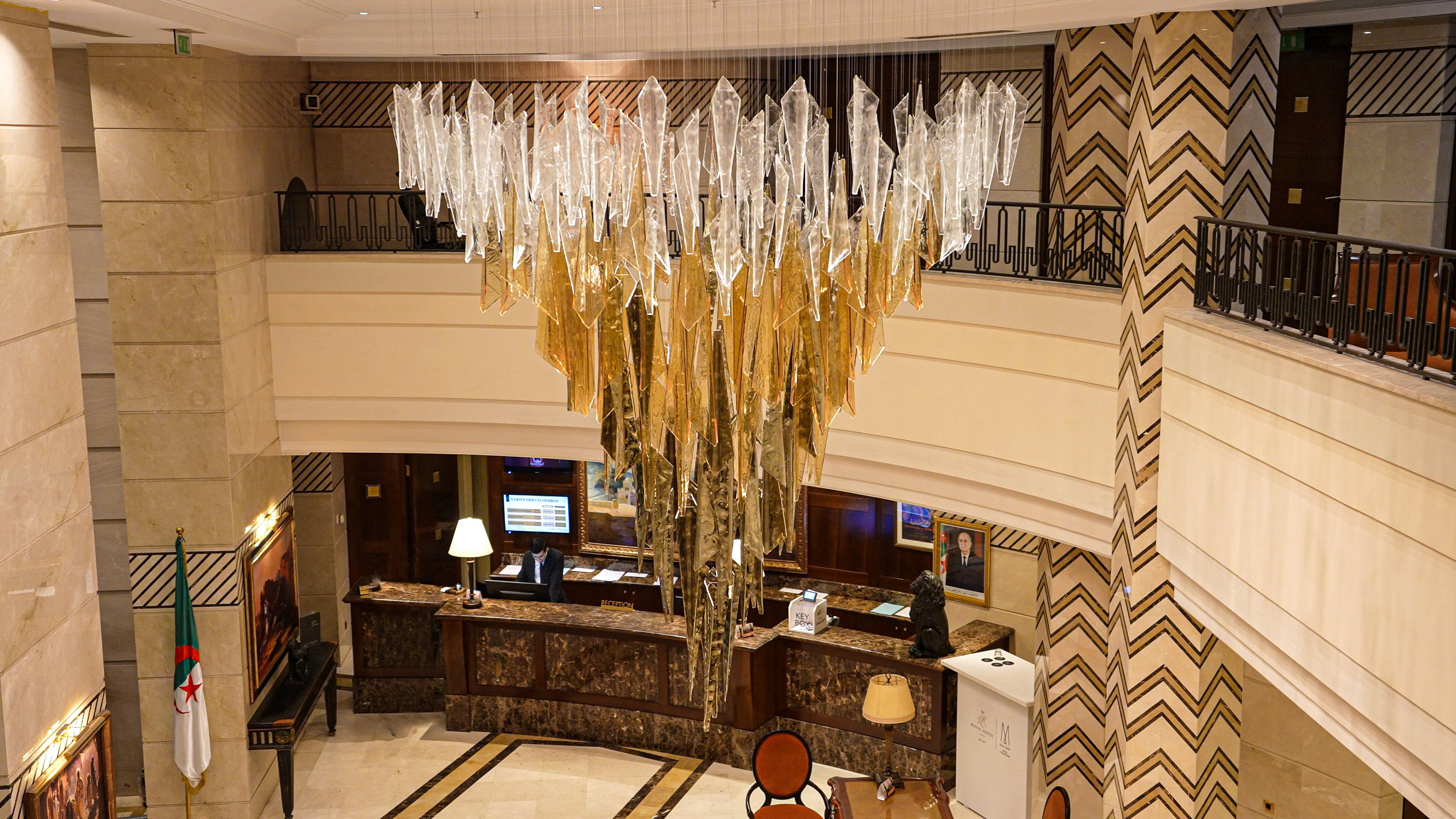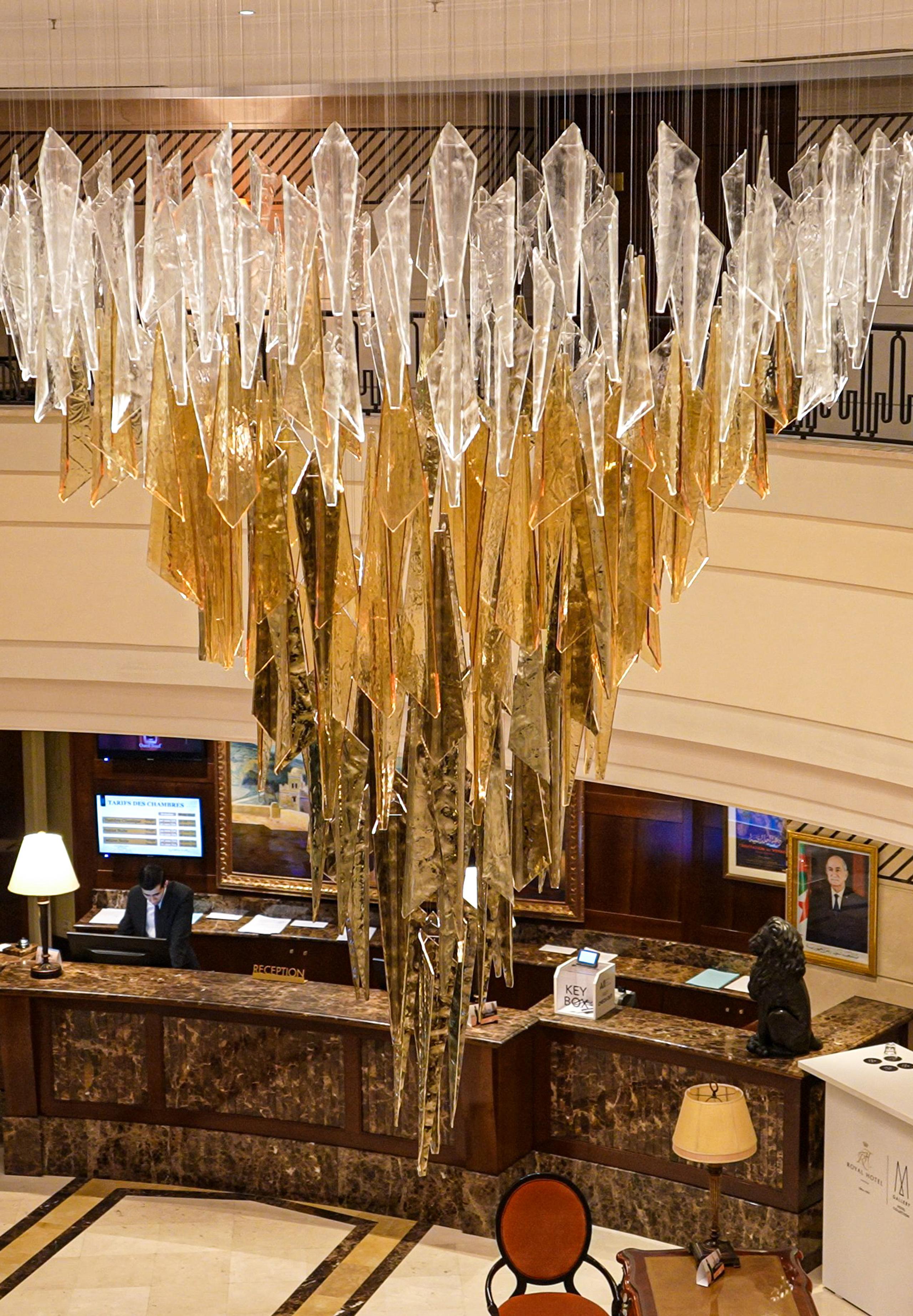 Oran Royal Hotel, a distinguished landmark in the heart of Oran, Algeria, blends historic grandeur with modern luxury. Enhancing its timeless elegance, our bespoke Vice Versa chandelier transforms the reception into a luminous statement of sophistication and artistry.