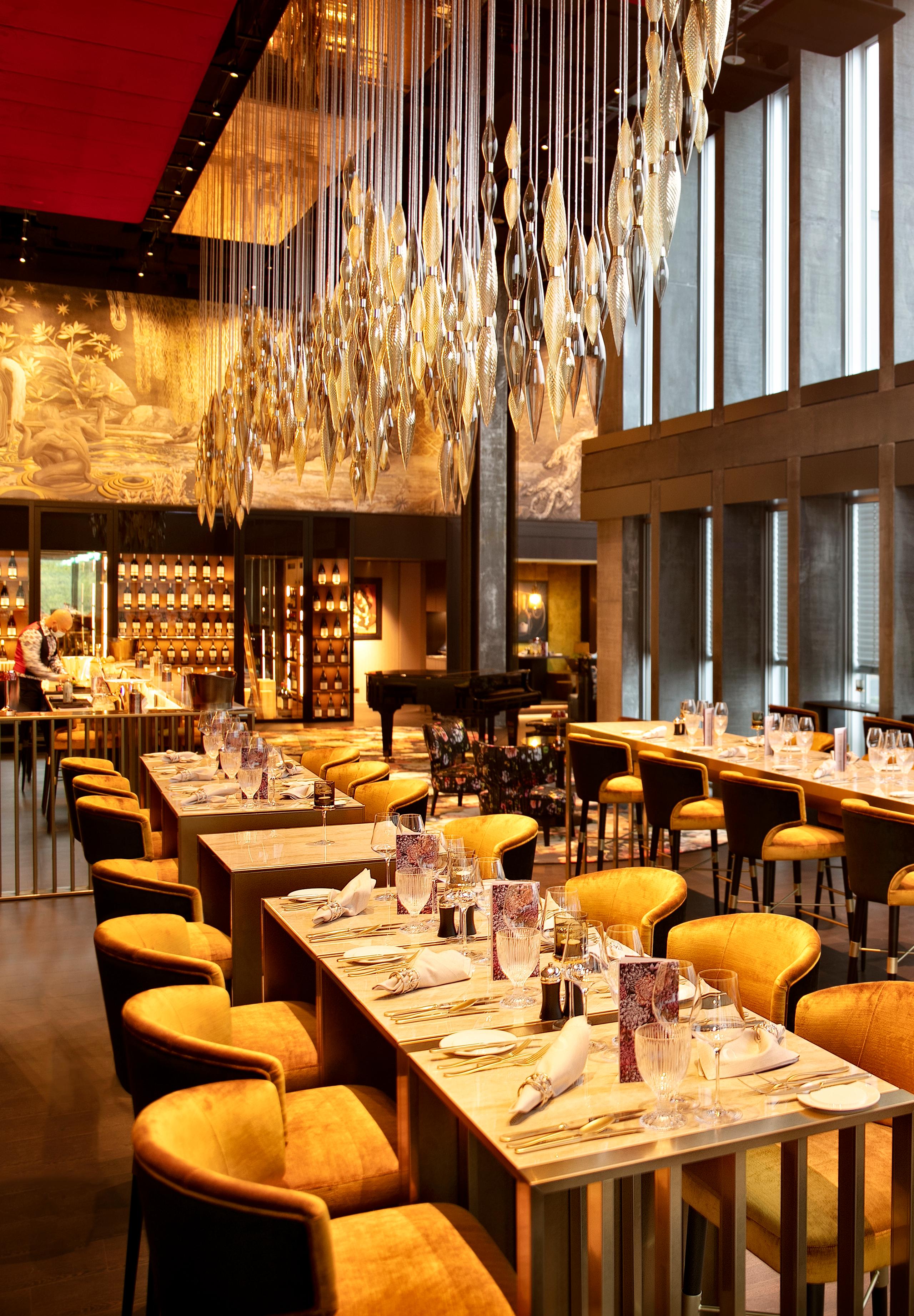 We worked closely with the team at Thöny Interior Design to create the ultimate centrepiece for the Sablier restaurant, located in the Circle complex at Zurich airport. Sans Souci’s OPERA and FLASH collection were specially chosen to add drama to these rich interiors.