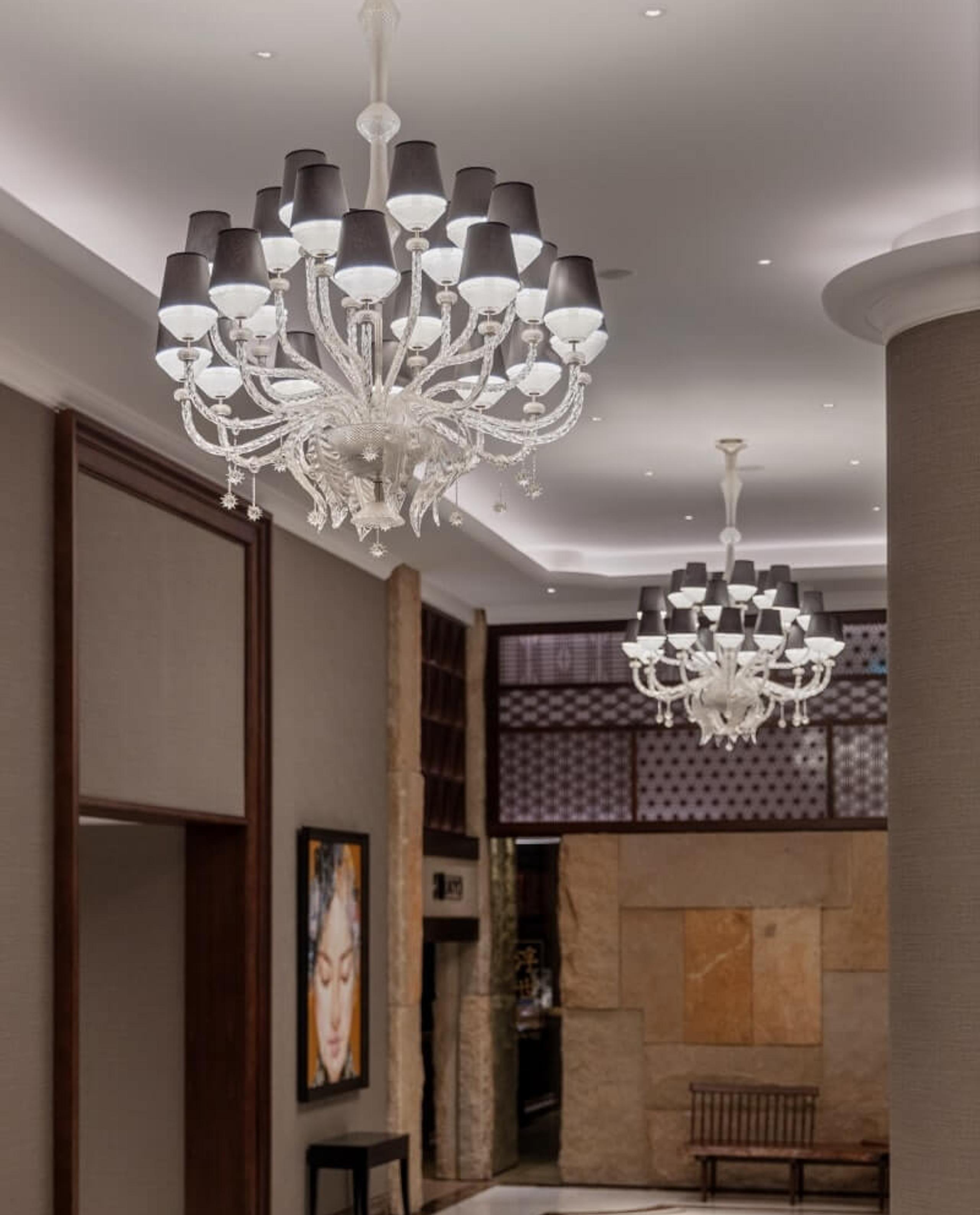 Stunning chandeliers crown the interiors of the Ritz-Carlton in Pune, India. These pieces were crafted using the best in classic and contemporary lighting design, reflecting the classical grandeur and timeless sophistication of the hotel’s interiors.