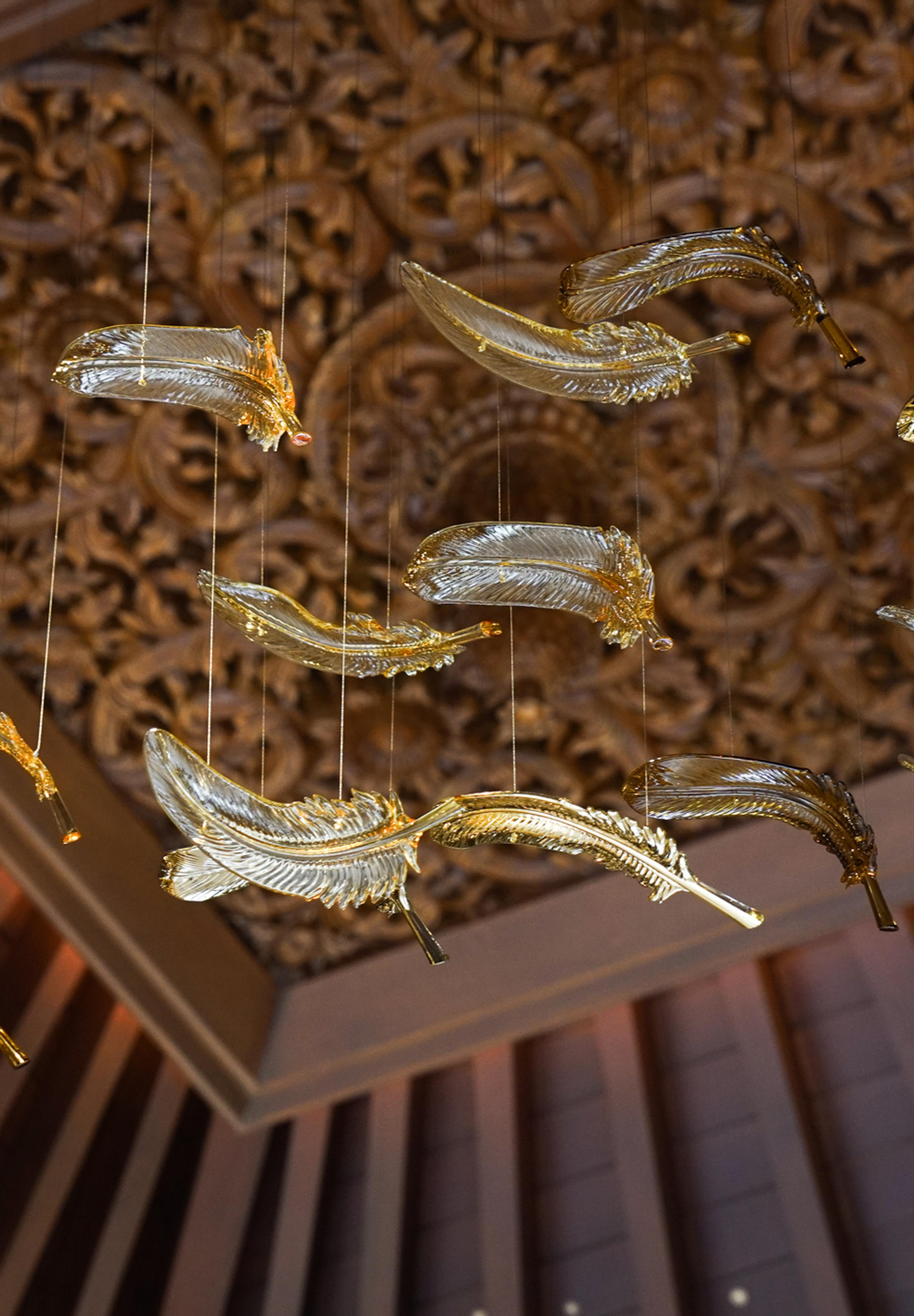 This private villa in Jakarta features two custom chandeliers from Sans Souci, selected to enhance the home’s warm, earthy palette and natural wood finishes. Designed by Václav Kaminský, both installations reflect his focus on organic forms and material harmony, bringing cohesion and visual balance to the residence.