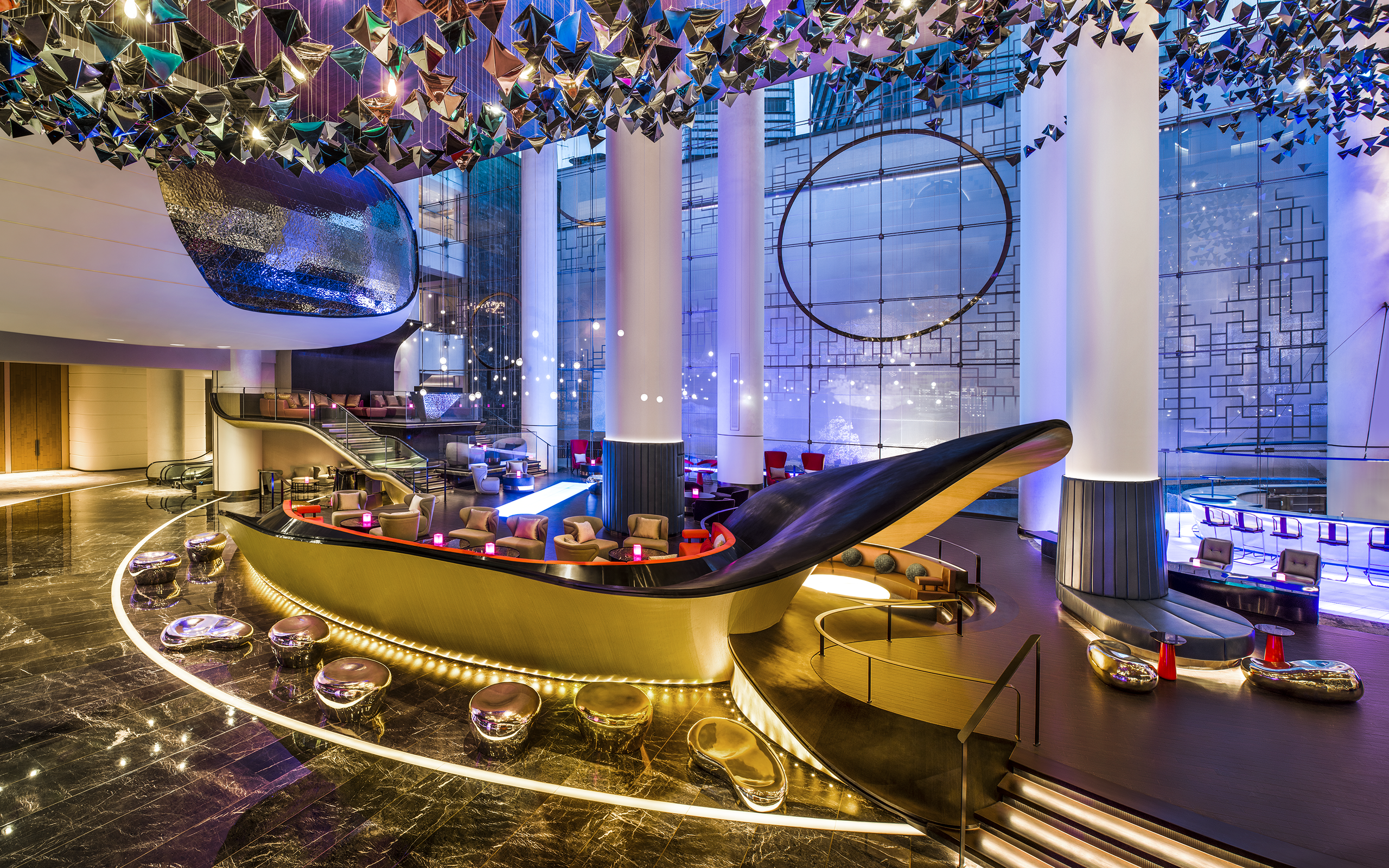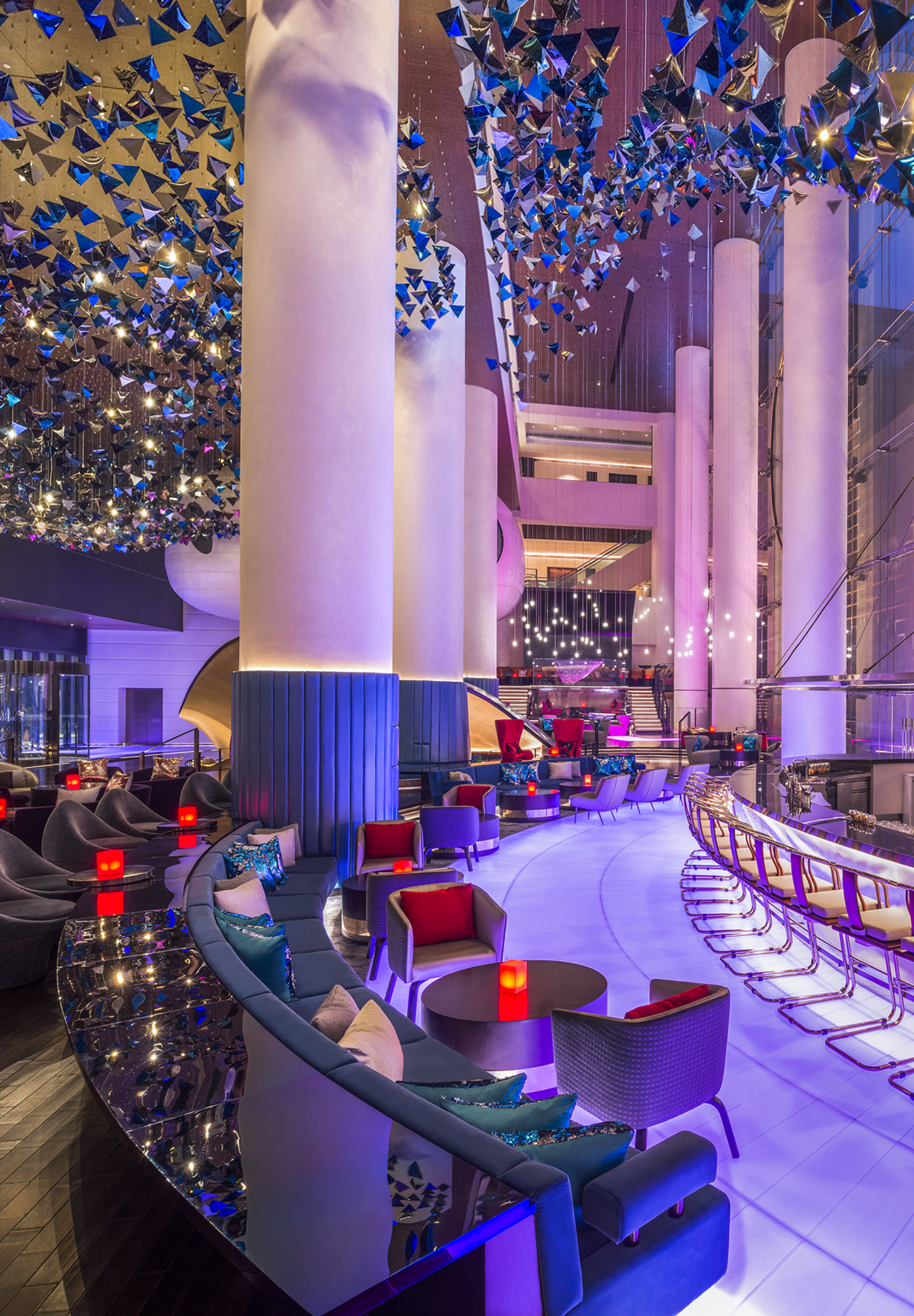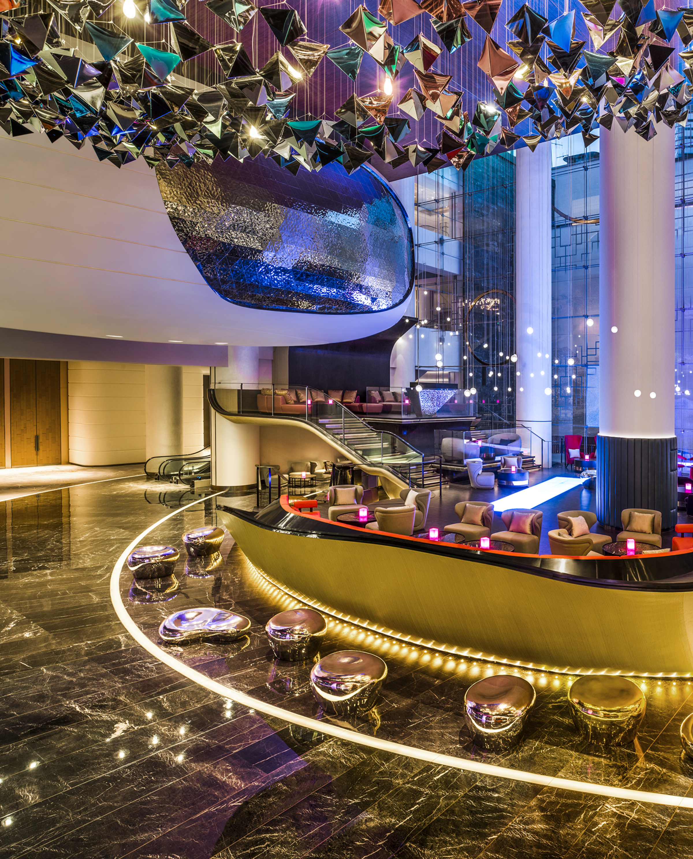Combining decorative and futuristic design elements to crown the lobby of the W Suzhou Hotel in China, Sans Souci’s bespoke installation uses the latest technologies to achieve a flawless finish.