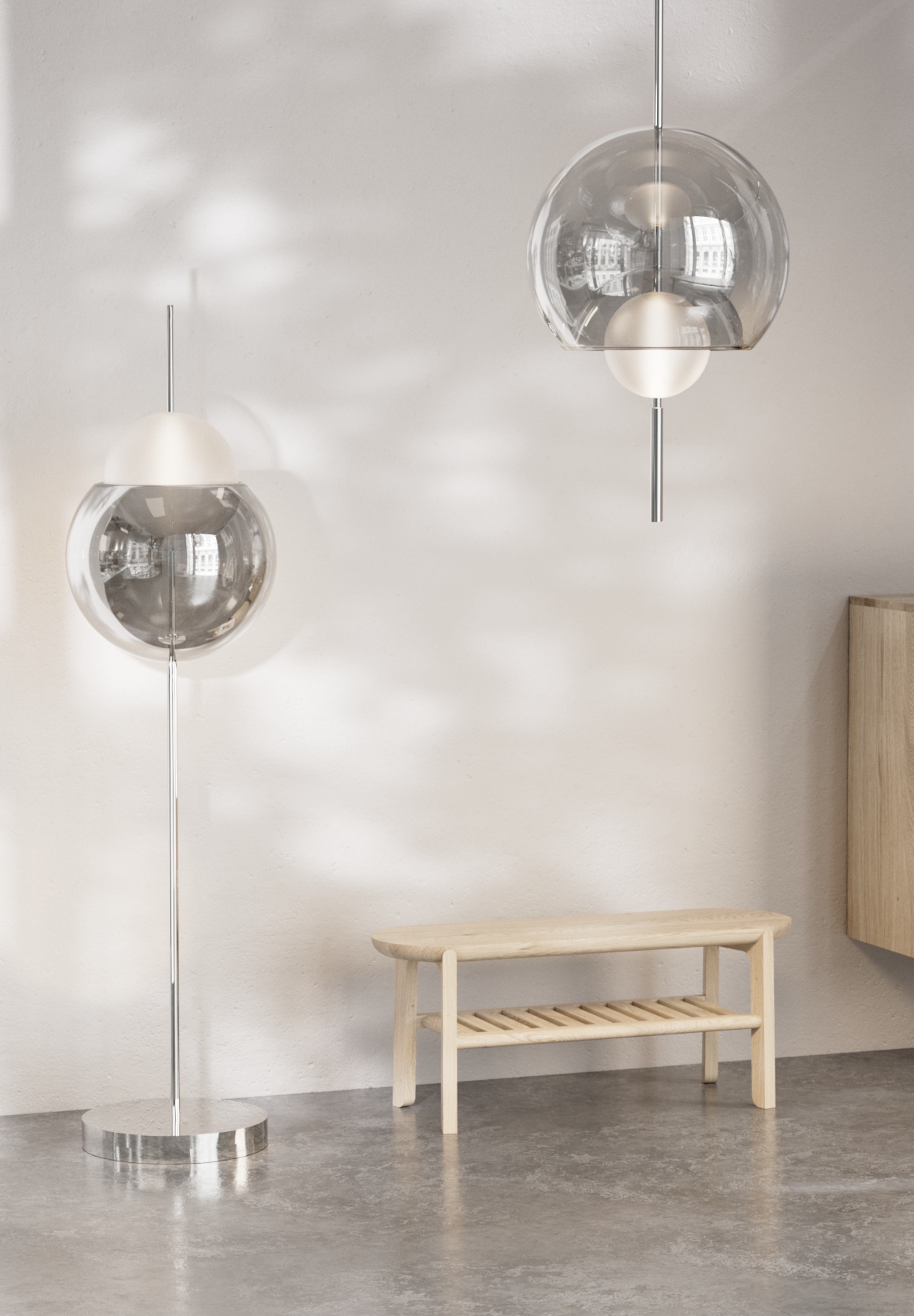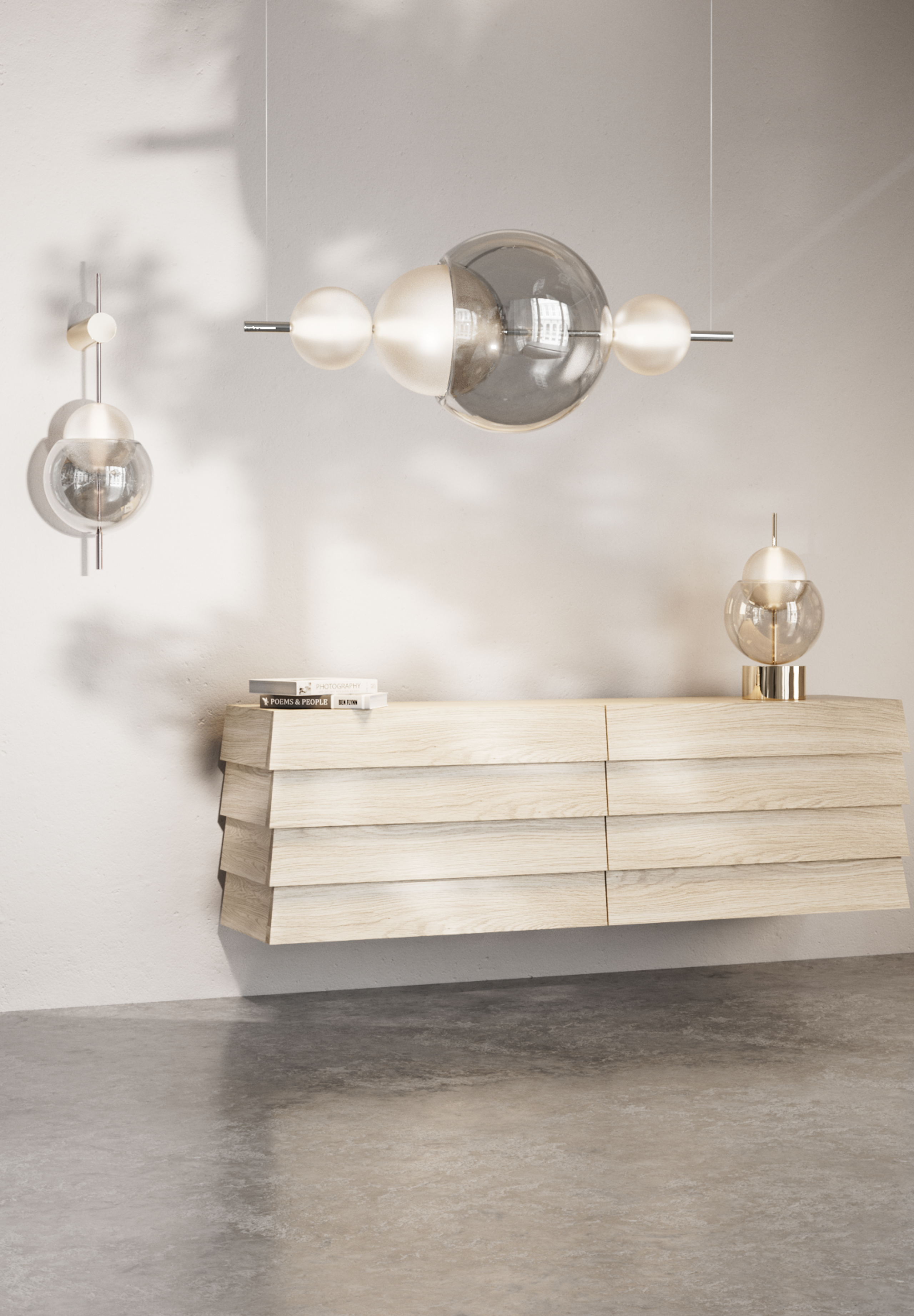 Inspired by the interplay of light and shadow, Galileo transforms lighting into an exploration of perception. At its core, a luminous glass orb radiates light, framed by reflective nanocoated elements that evoke the eternal dance of the sun and moon. Designed by Martin Opl, the expanded line now includes: