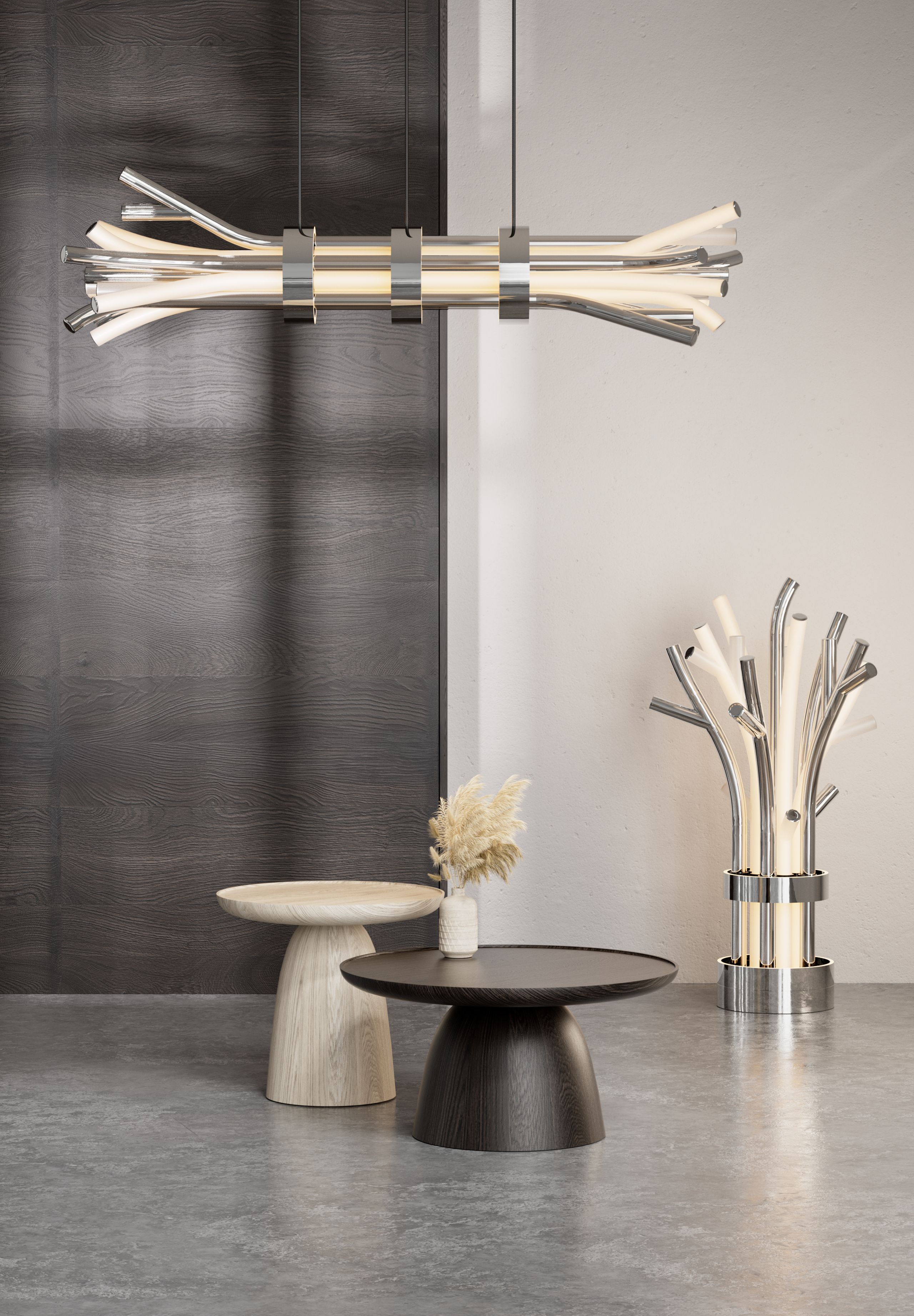 Until now, the Branchy collection featured linear suspension pendants, and Galileo offered pendant lighting exclusively. With this launch, both lines are elevated with new formats that extend their storytelling across more intimate and versatile lighting scenarios.