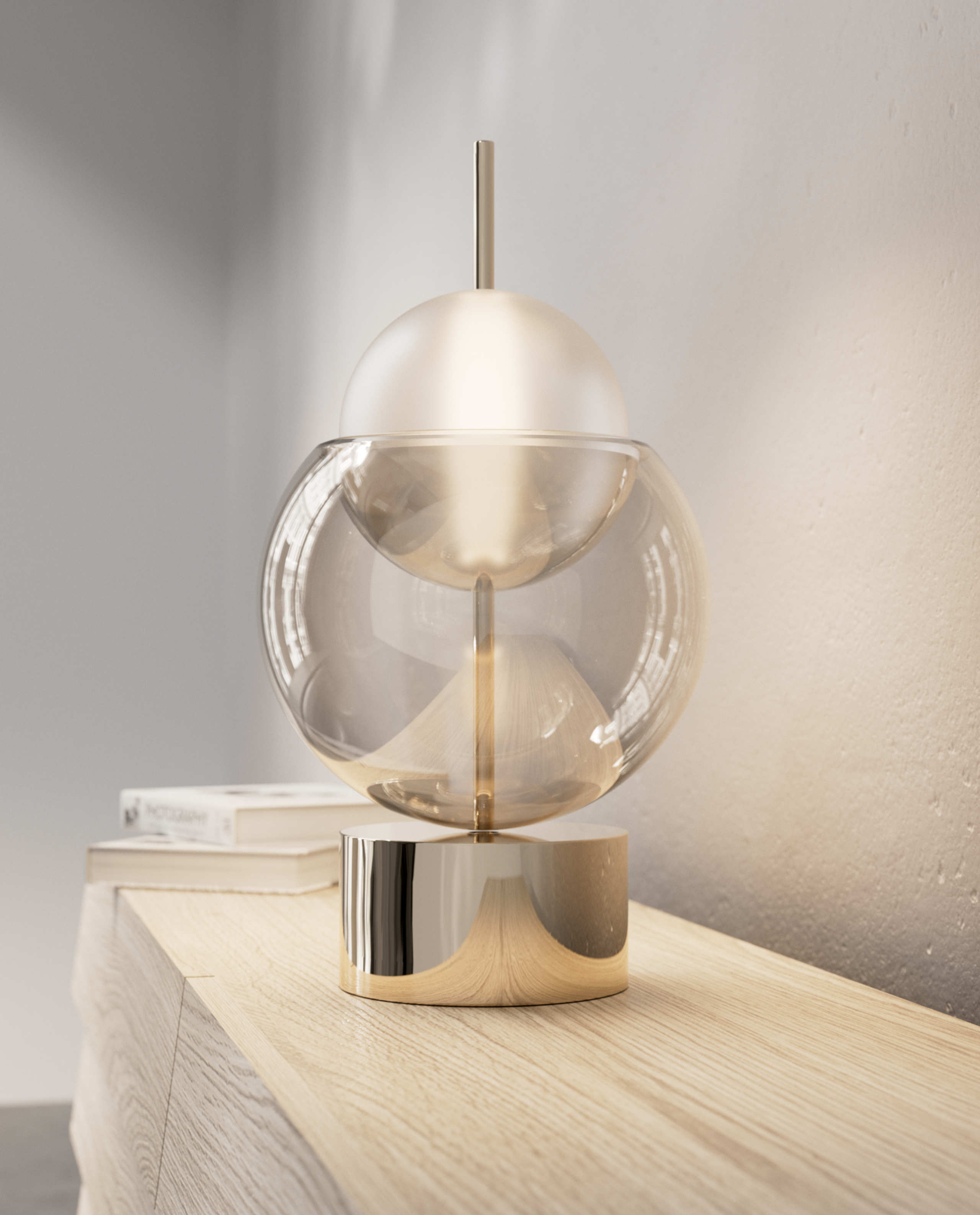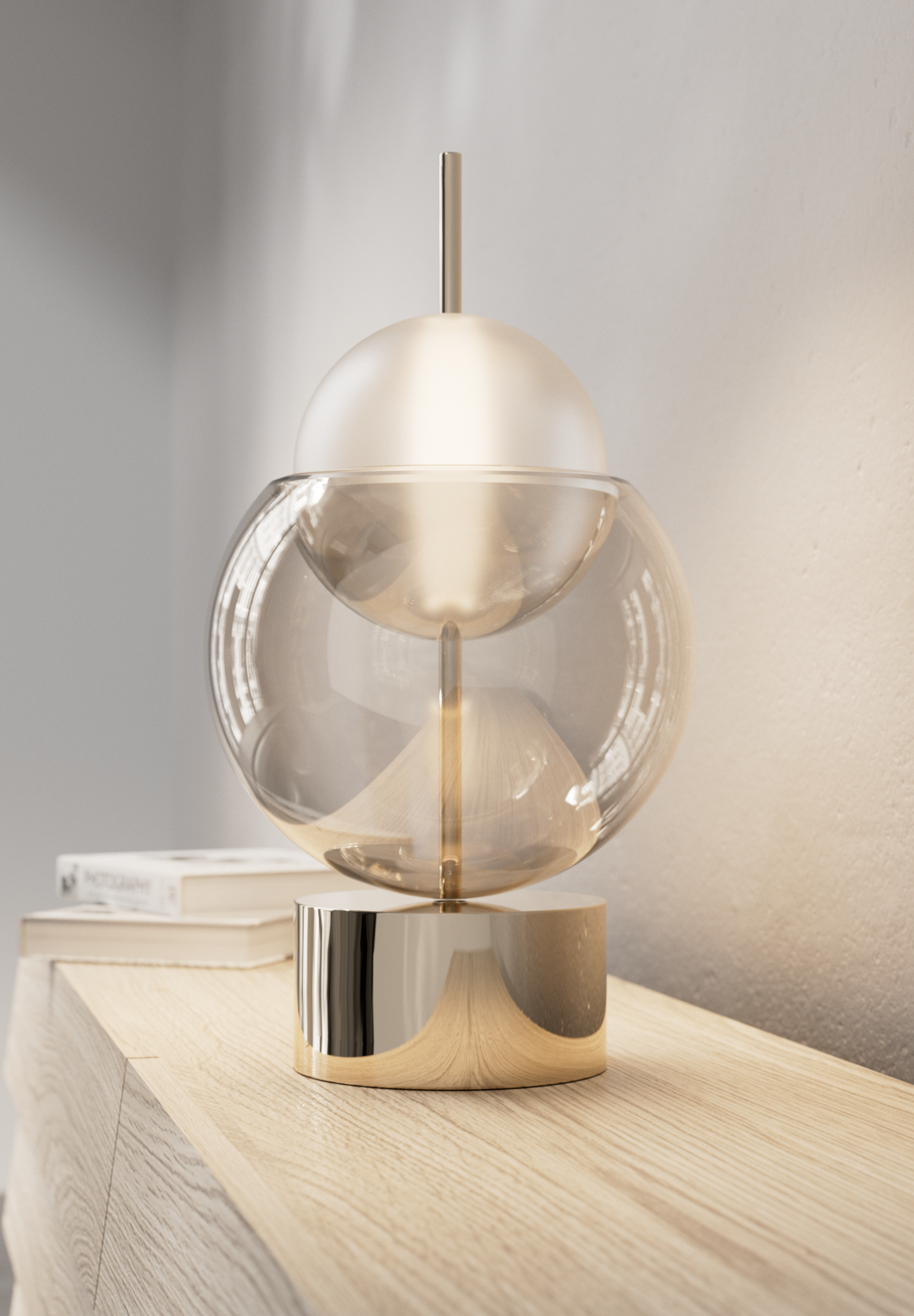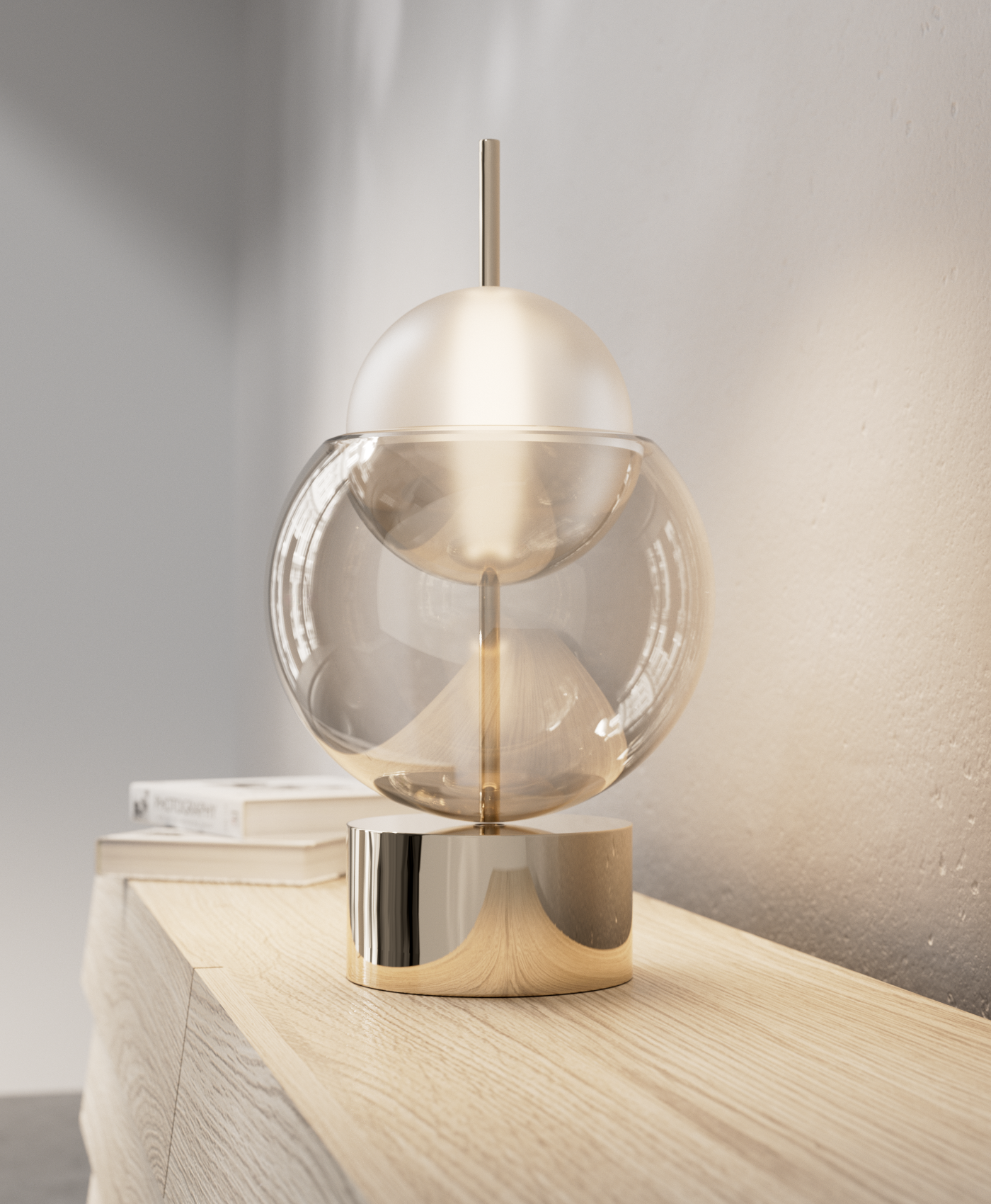 The combination of elegant, clean geometric shapes and simple details is truly magical. The Charm collection is made up of glass spheres that look simple at first glance, but hide a secret. This sculptural object, reminiscent of a reflective jewel, hides a second, glowing sphere.