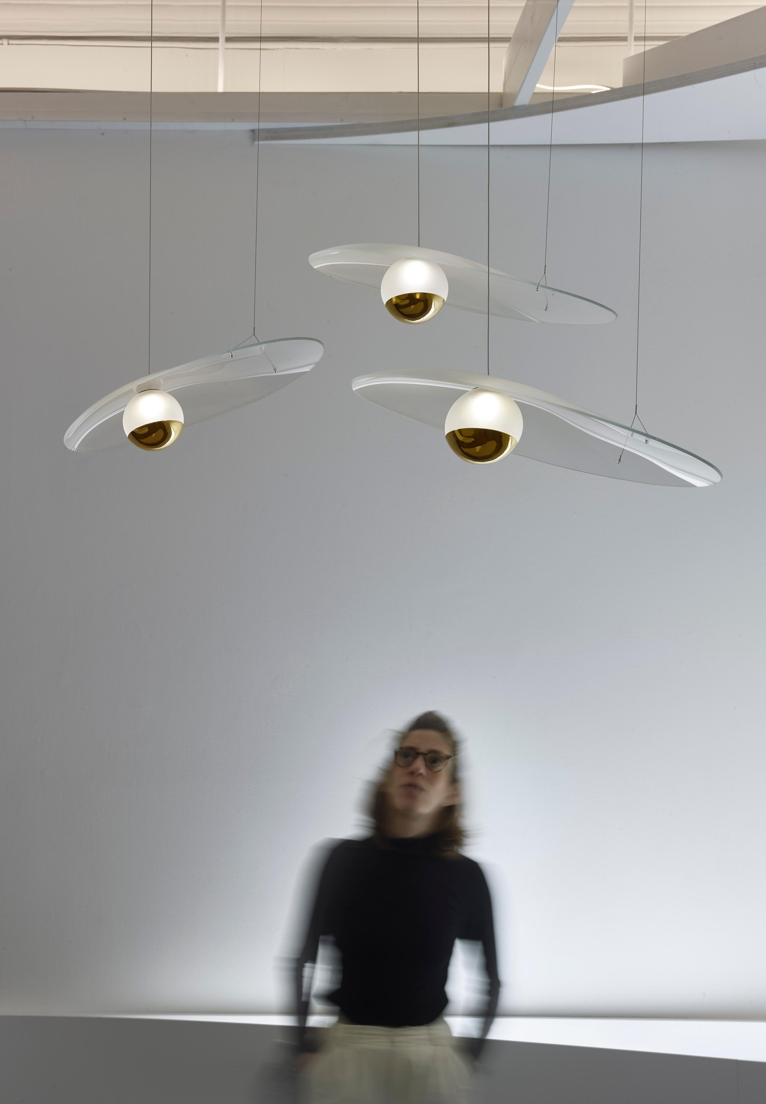 Light radiates through the darkness to create space and depth. The infinite beauty and depth of the universe are reflected in the Galileo product. An expertly crafted glass orb radiates pure light and is positioned in different configurations with a flawless pendant finished in translucent argent or aurum nanocoating.